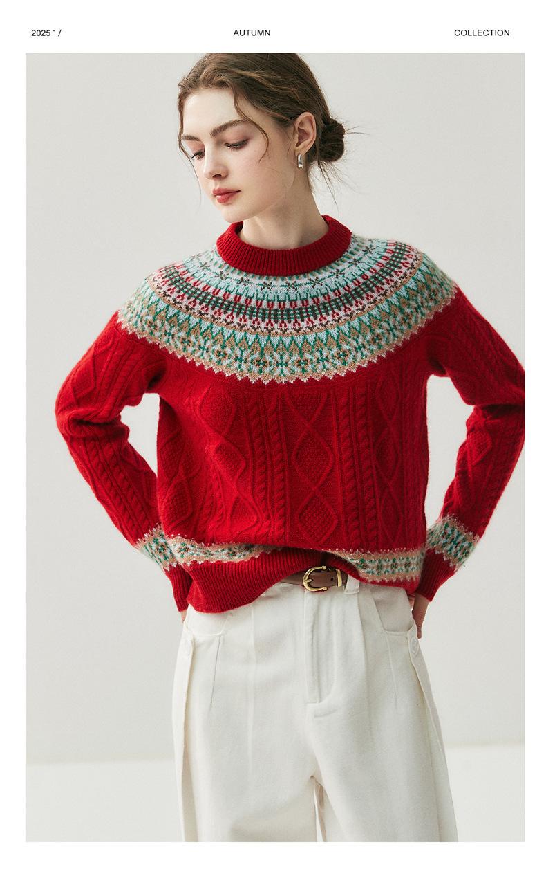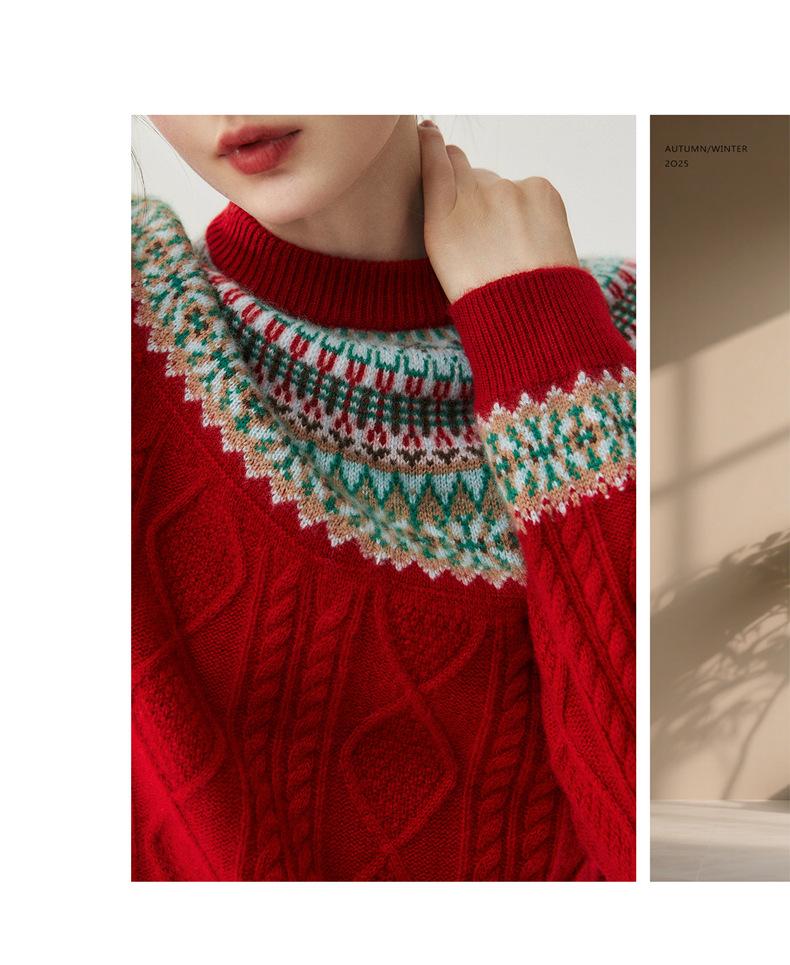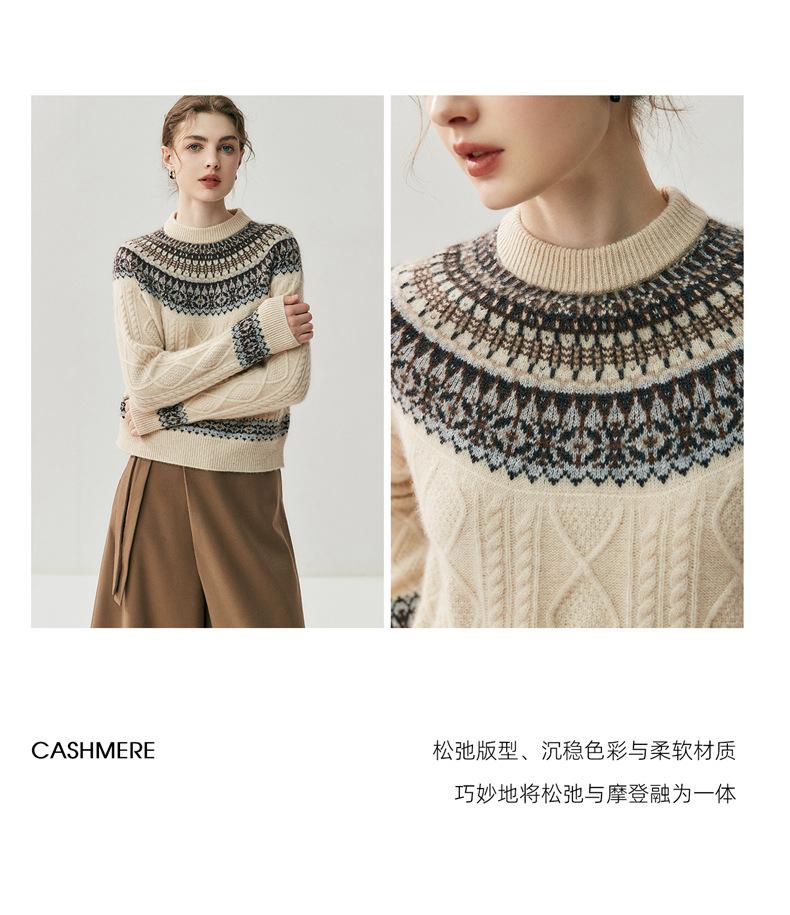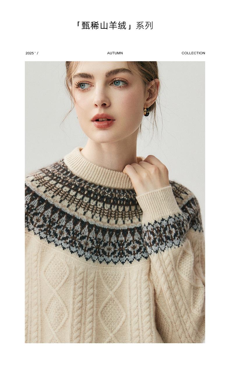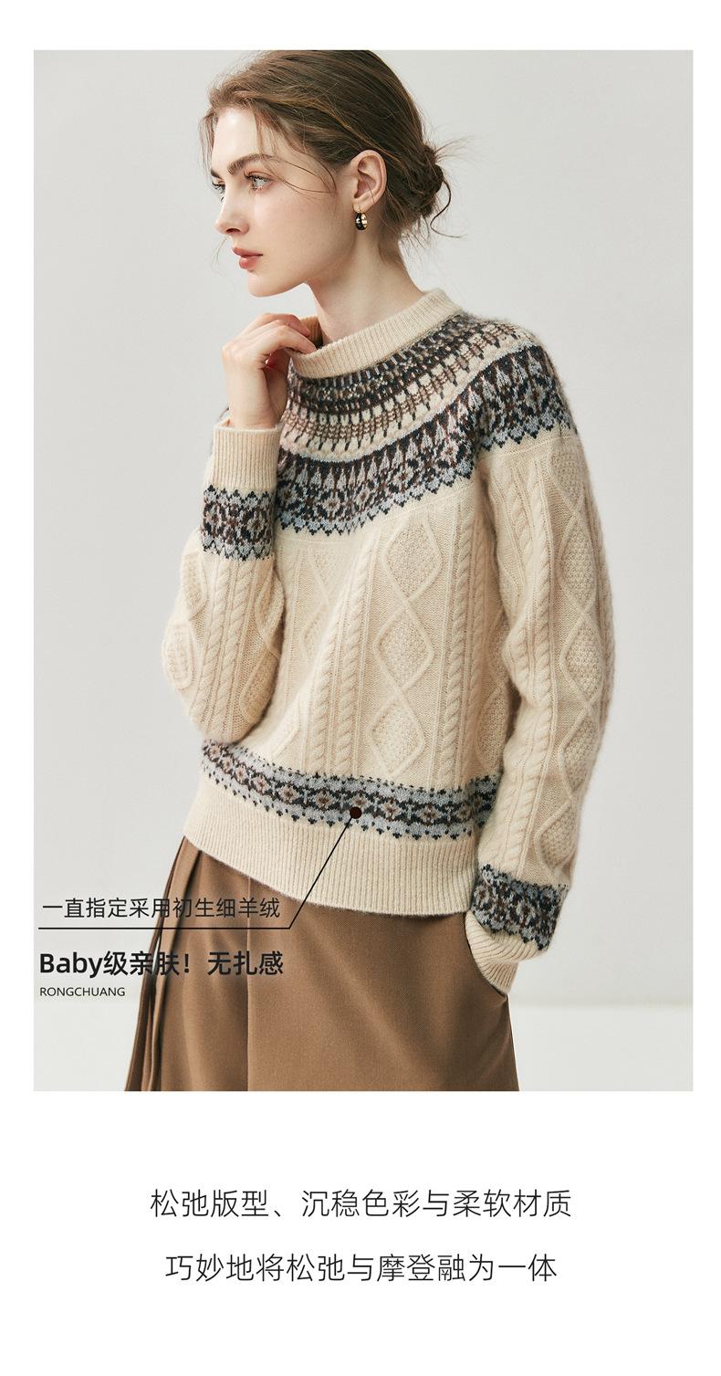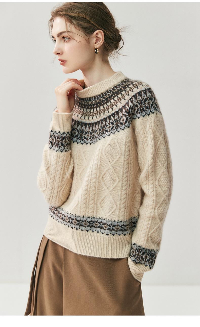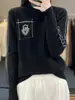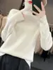 25 Invierno Nuevo Suéter de Cachemira Mujer Medio Cuello Alto Tejido Jacquard Camisa Base Holgado Adelgazante Versátil Suéter de Lana