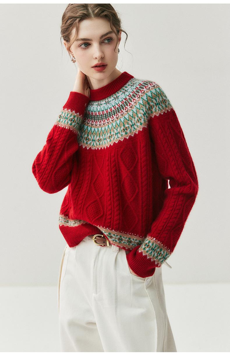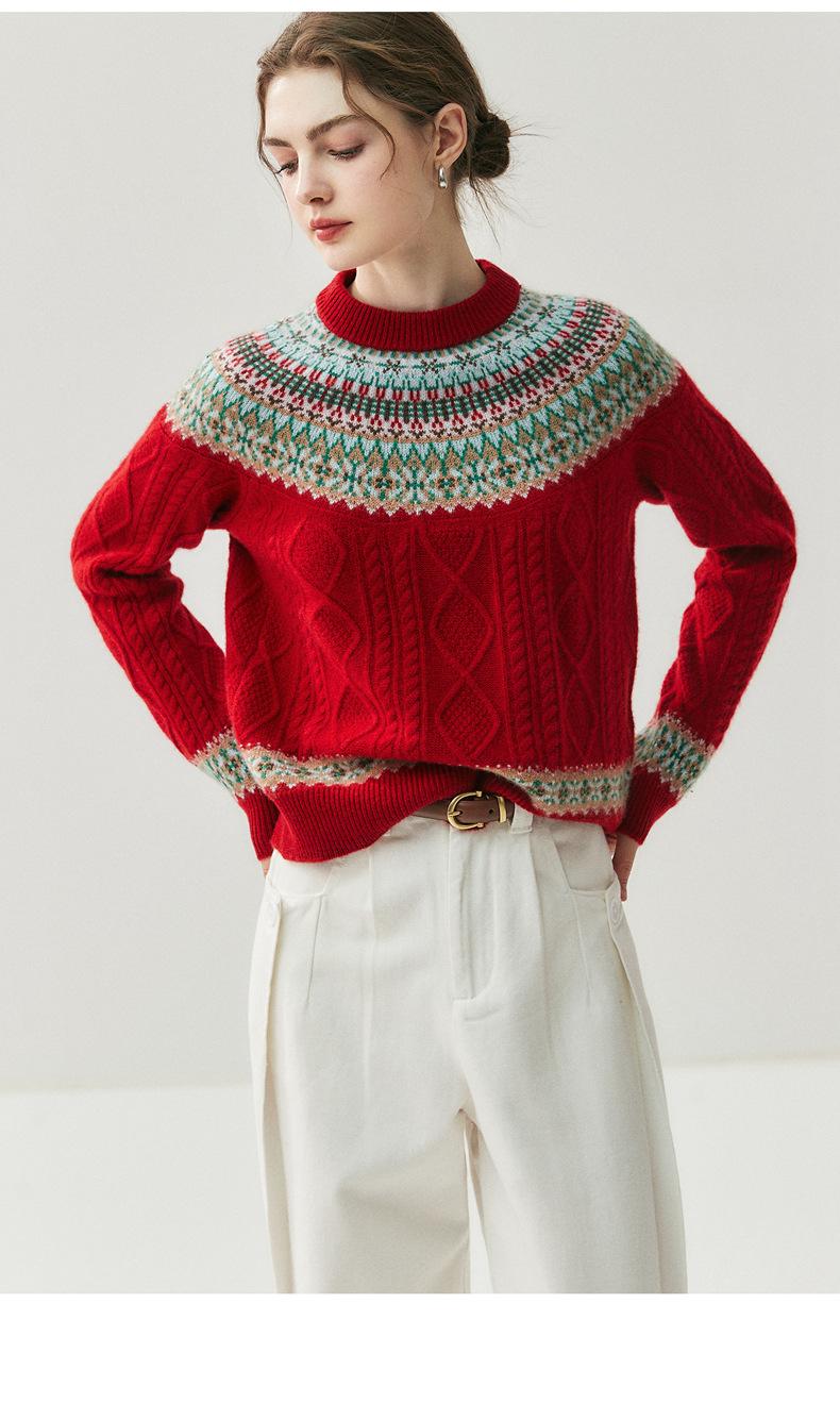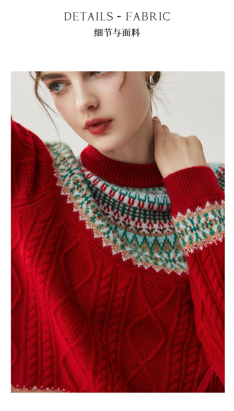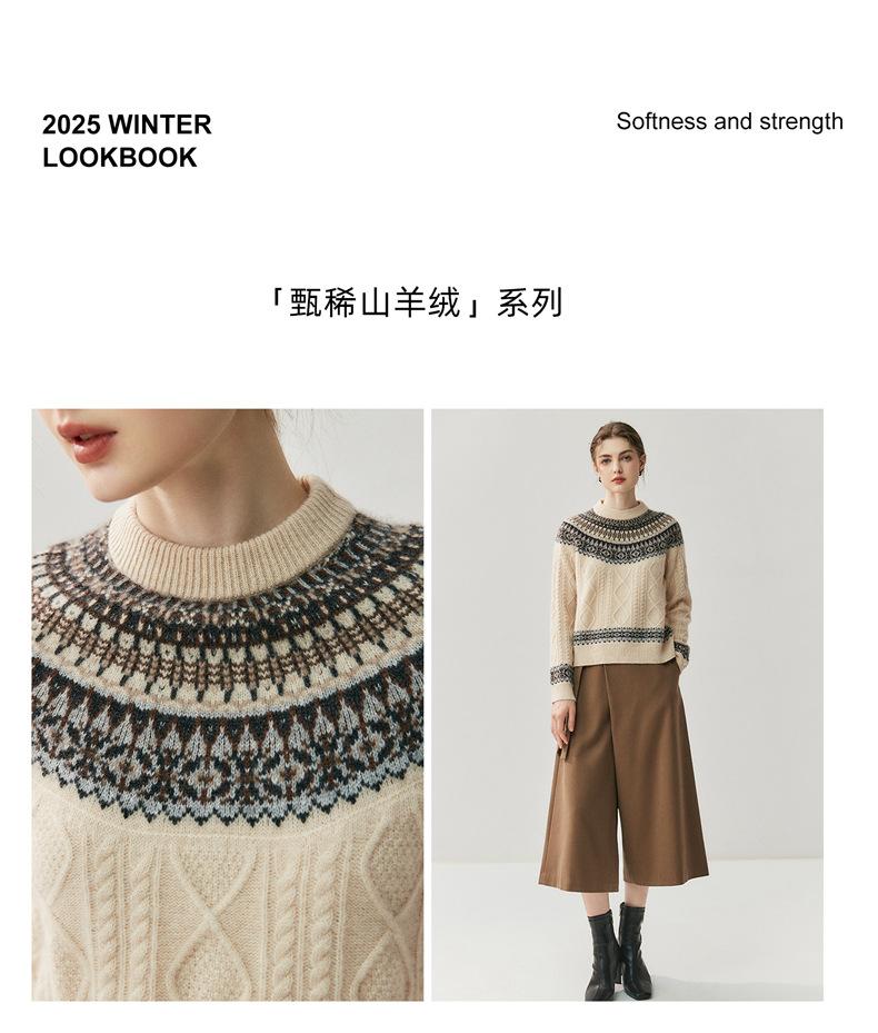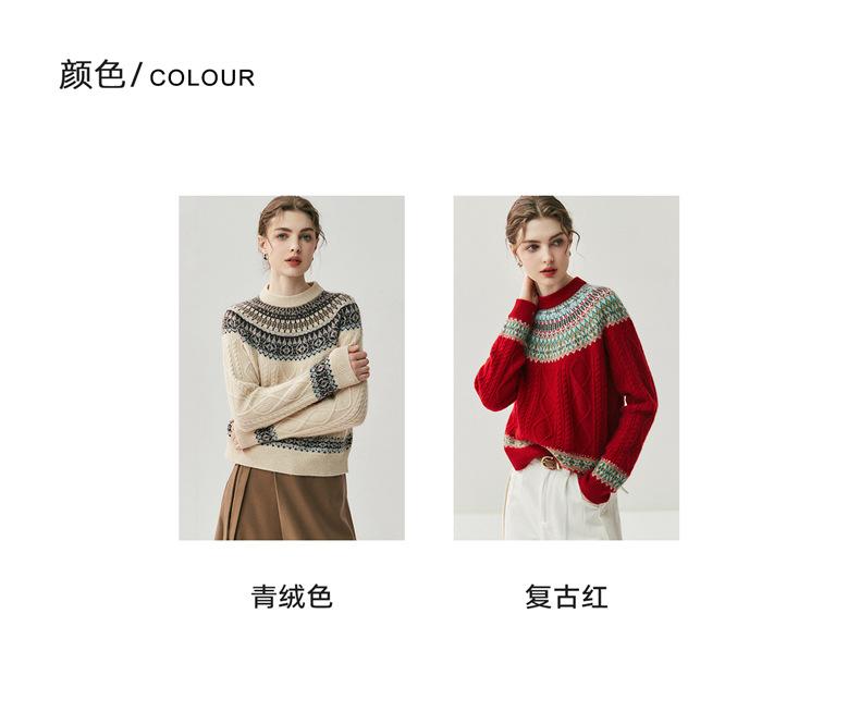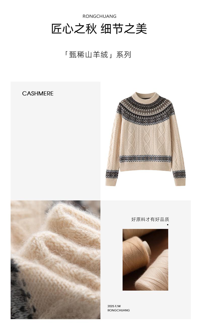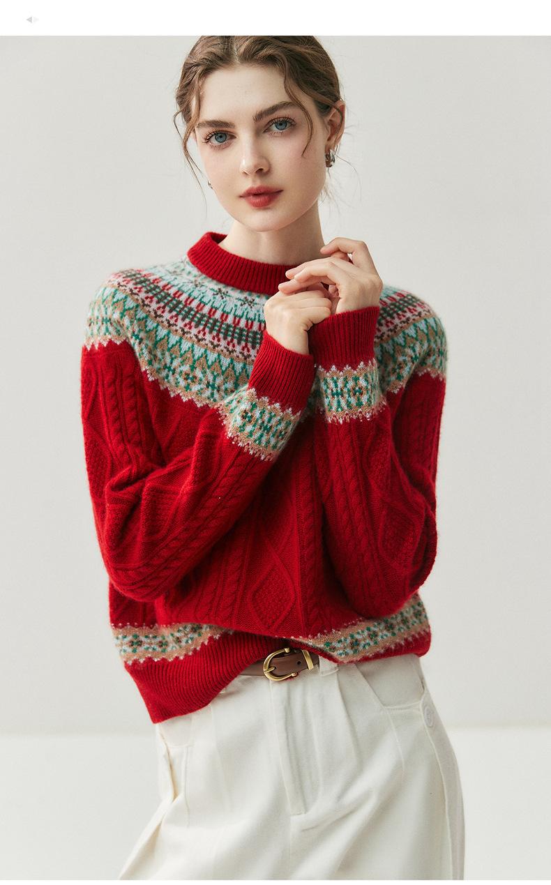 25 Invierno Nuevo Suéter de Cachemira Mujer Medio Cuello Alto Tejido Jacquard Camisa Base Holgado Adelgazante Versátil Suéter de Lana