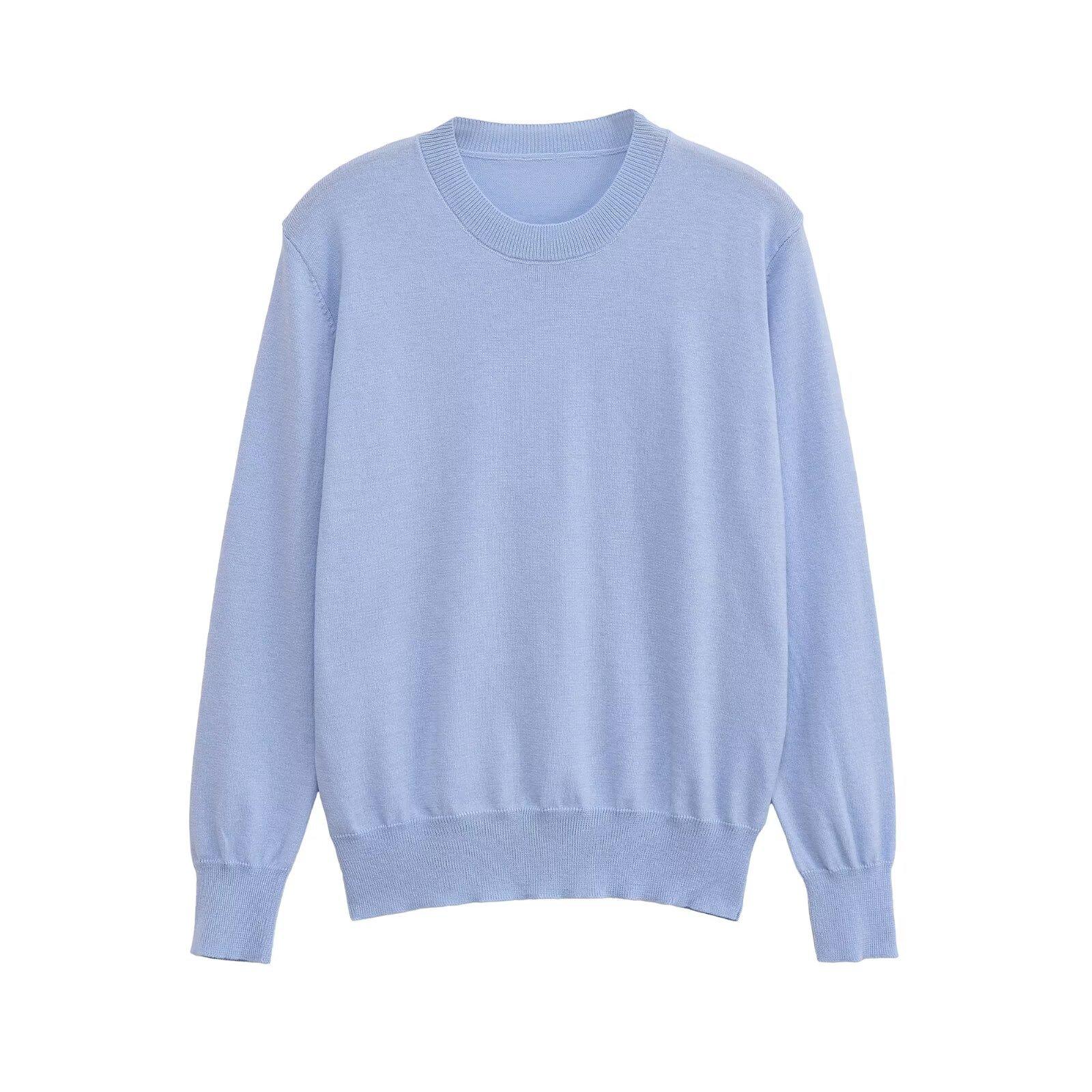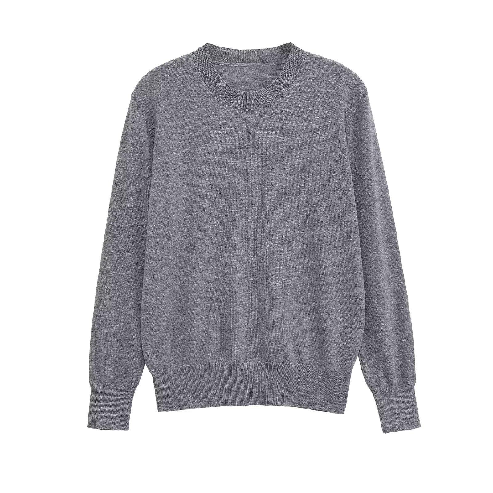 Ropa de mujer para comercio exterior transfronterizo 2025 otoño europeo y americano cuello redondo manga larga color sólido jersey tejido para mujer G866693