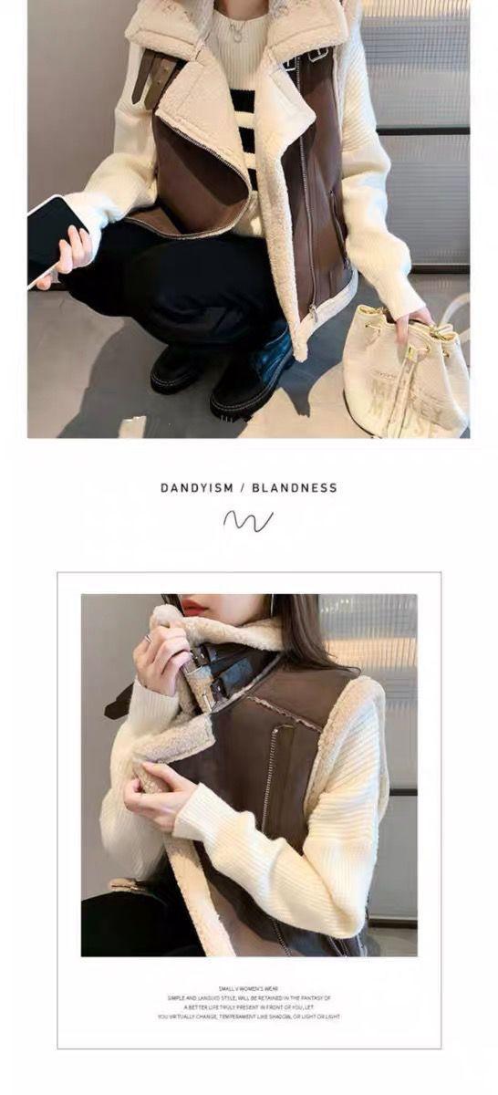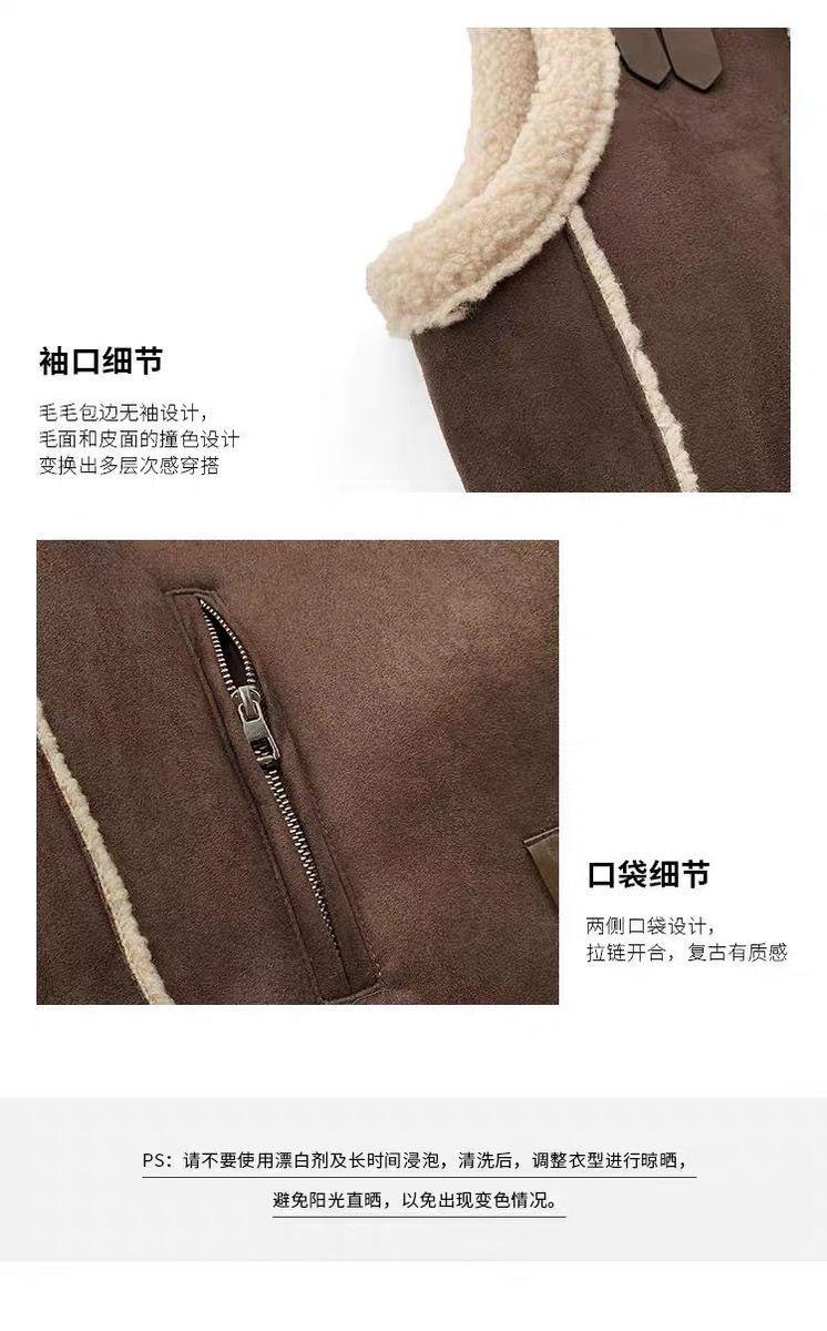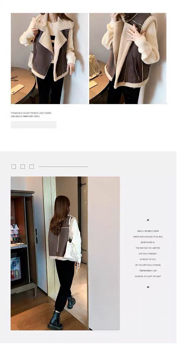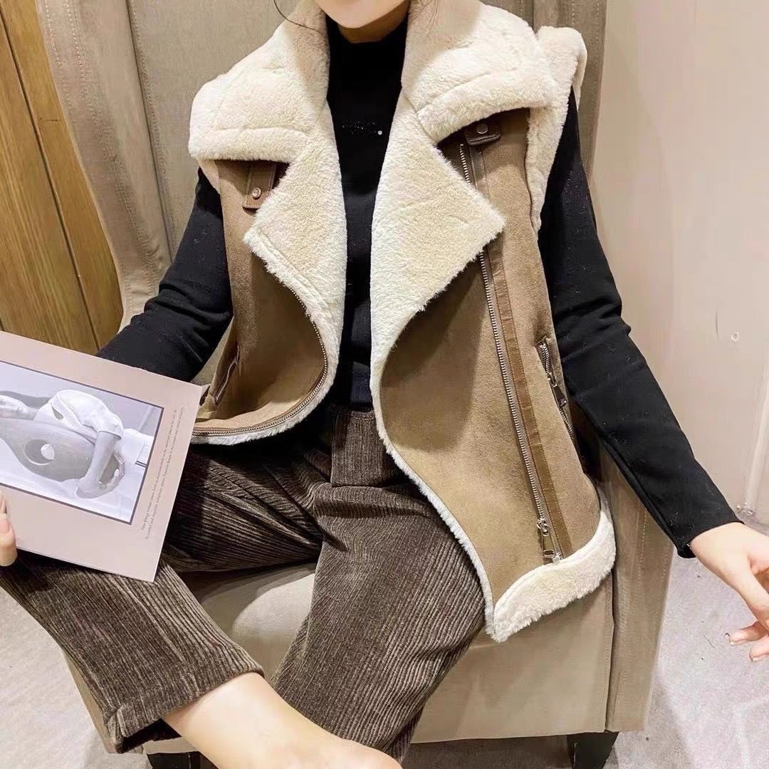 Chaleco de Capa Exterior para Mujer Versátil Ropa Exterior Nueva Moda con Forro Polar Engrosado Chaleco de Lana de Cordero Piel Una Pieza Moda