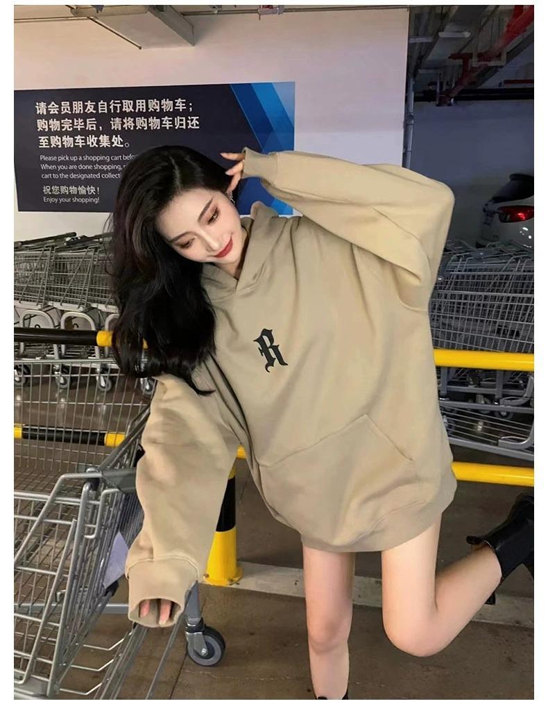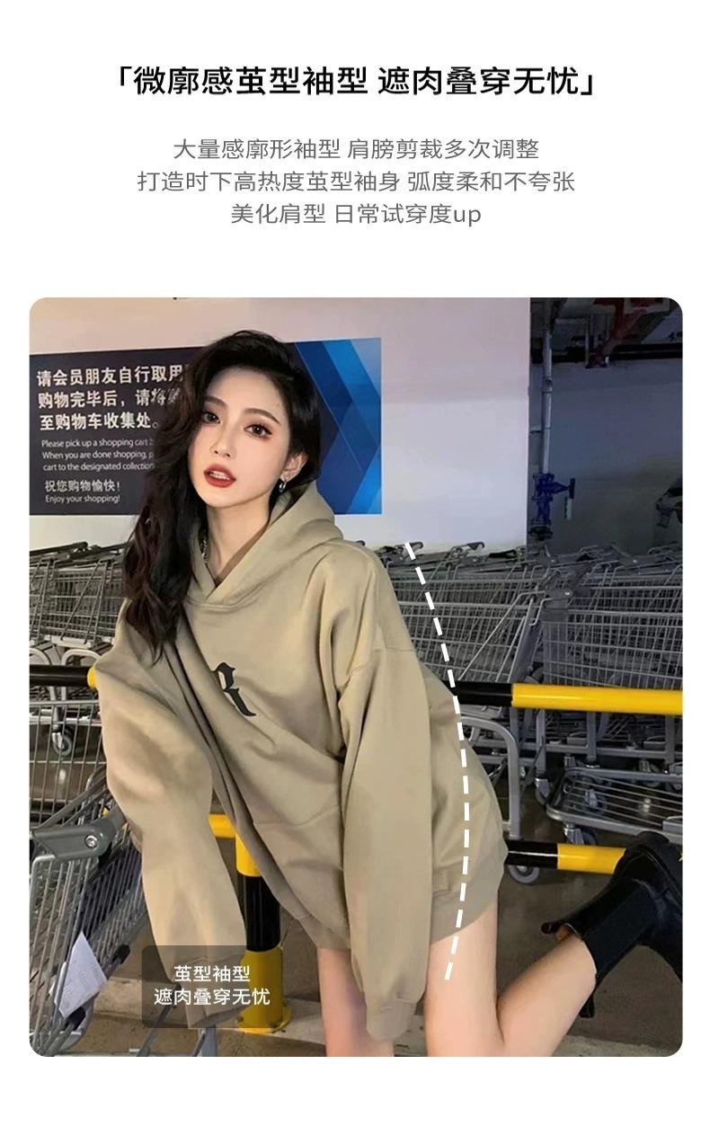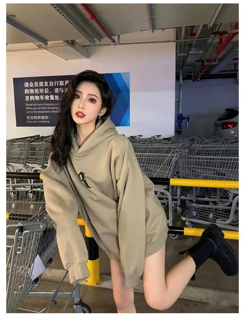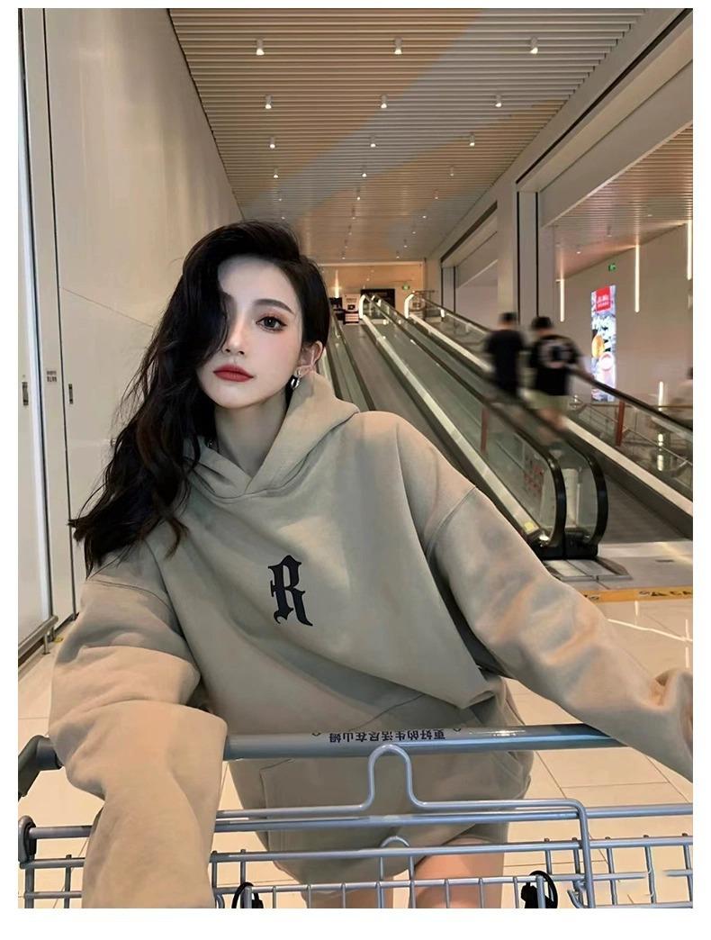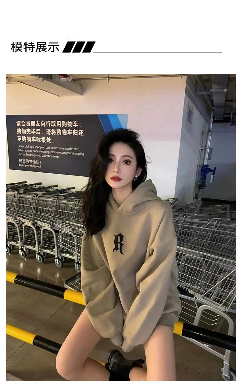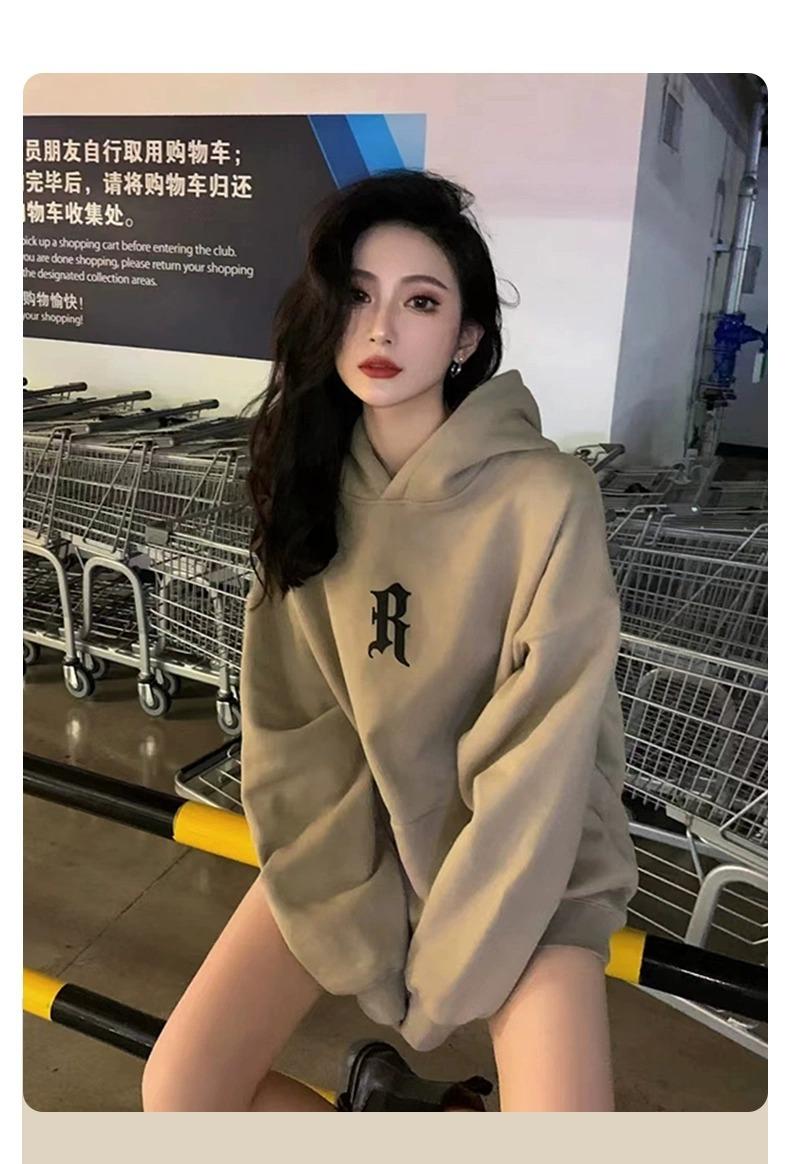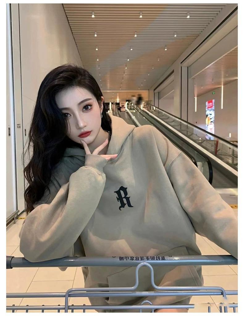 Sudadera con Capucha Pesada Americana Otoño 2025 Nuevo Outfit de Mujer Estilo Coreano Perezoso Estampado Chaqueta con Capucha Vintage Delgada