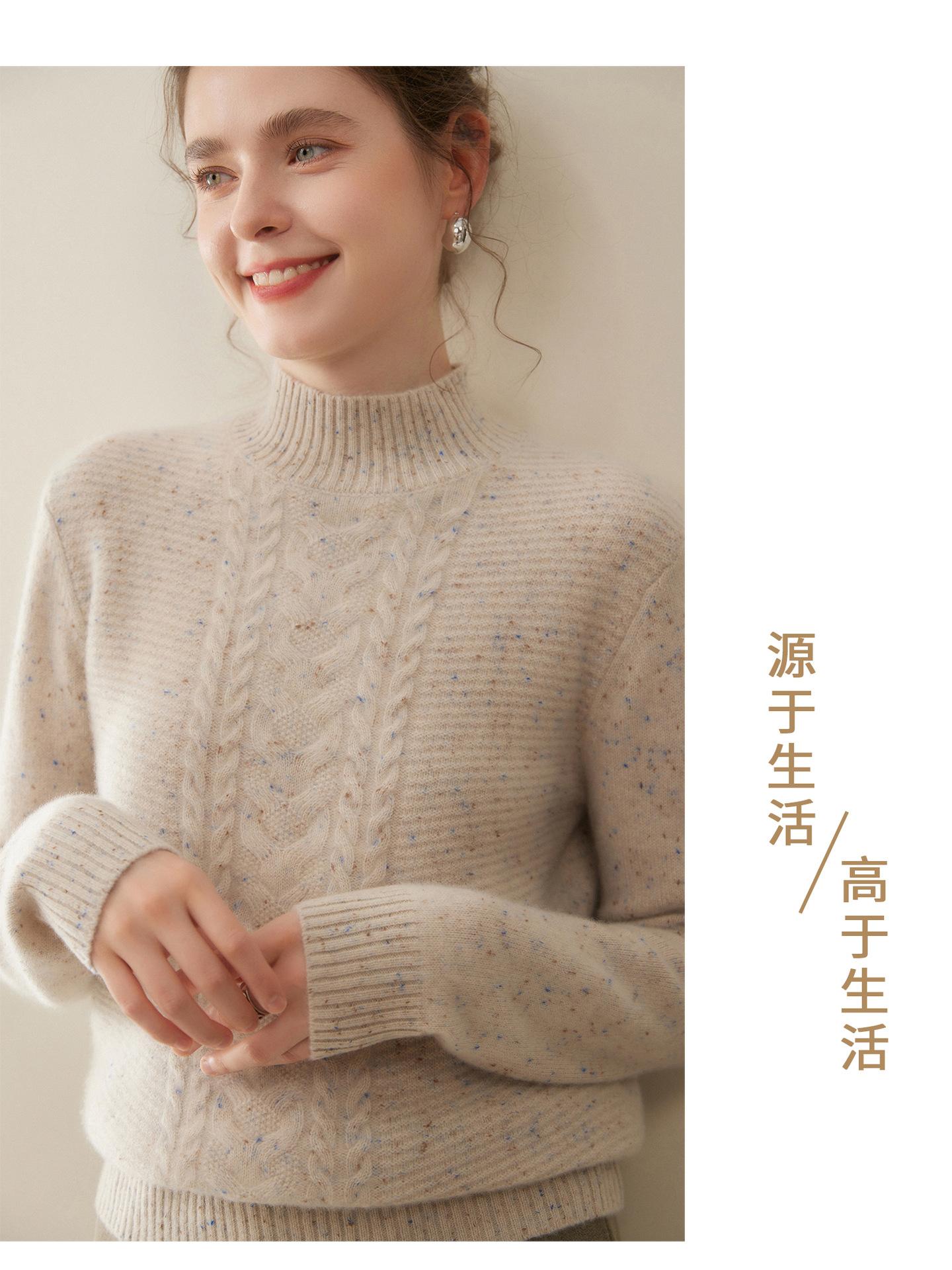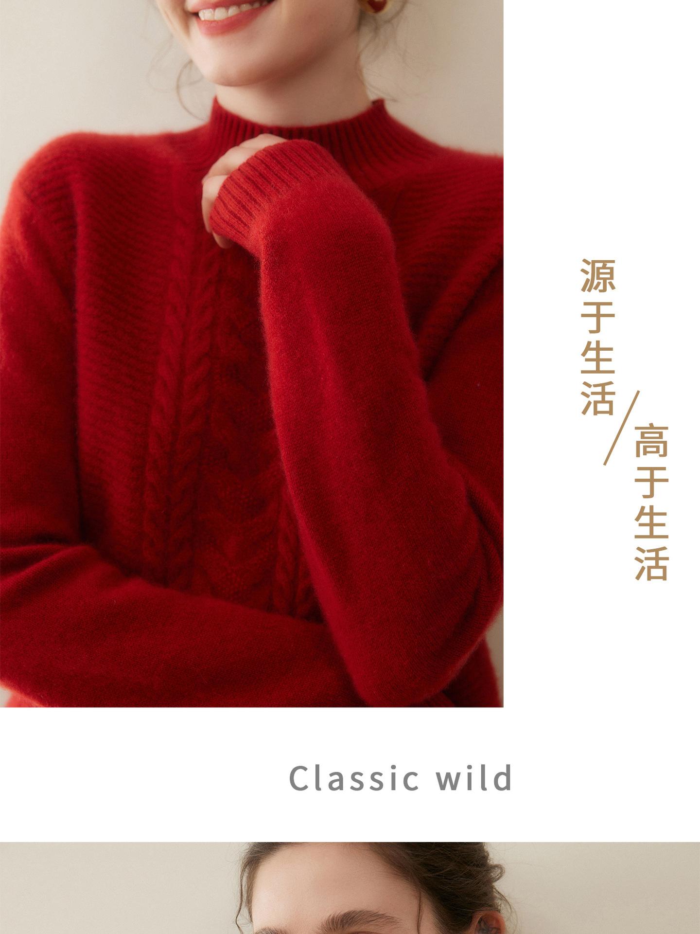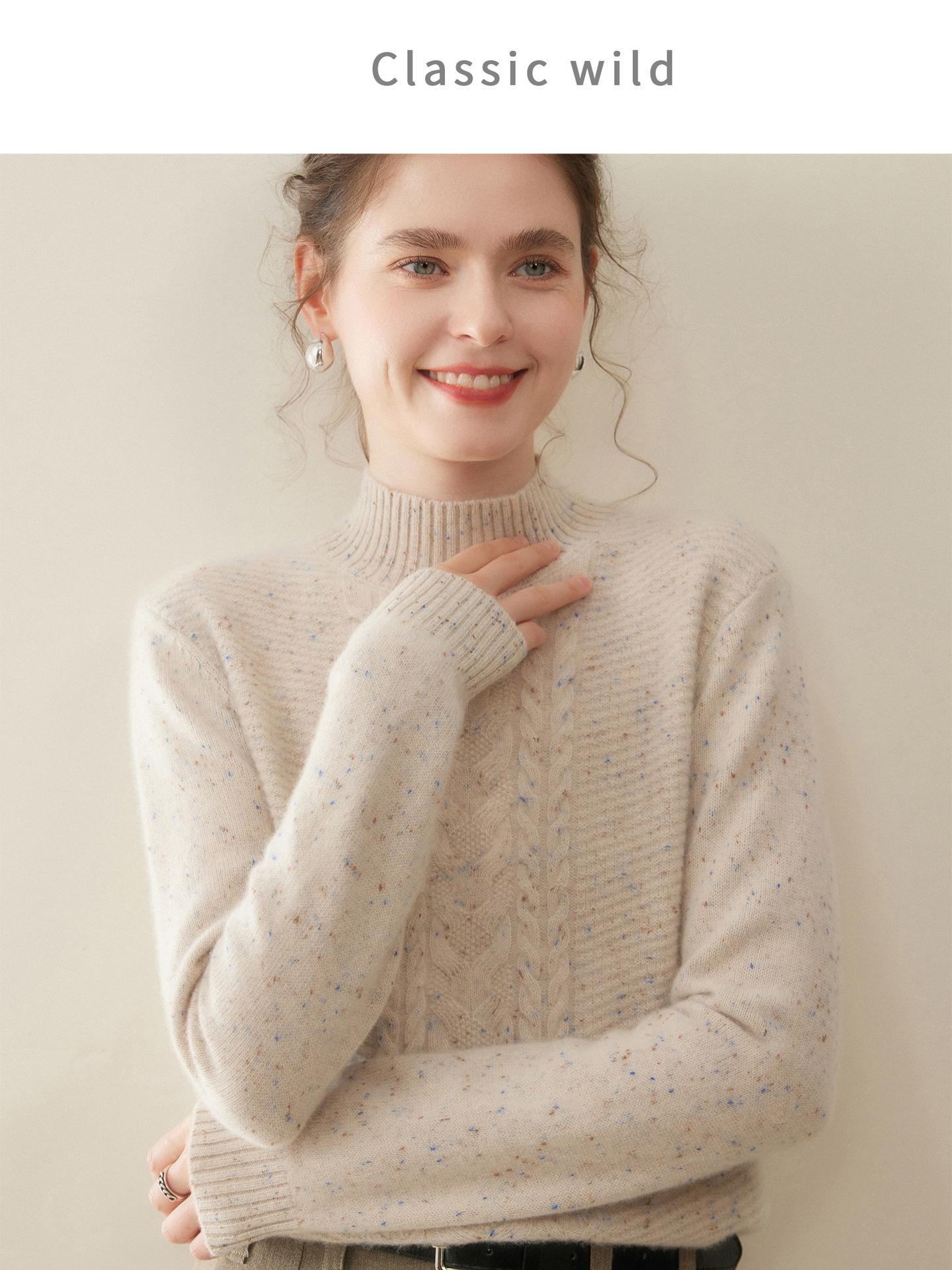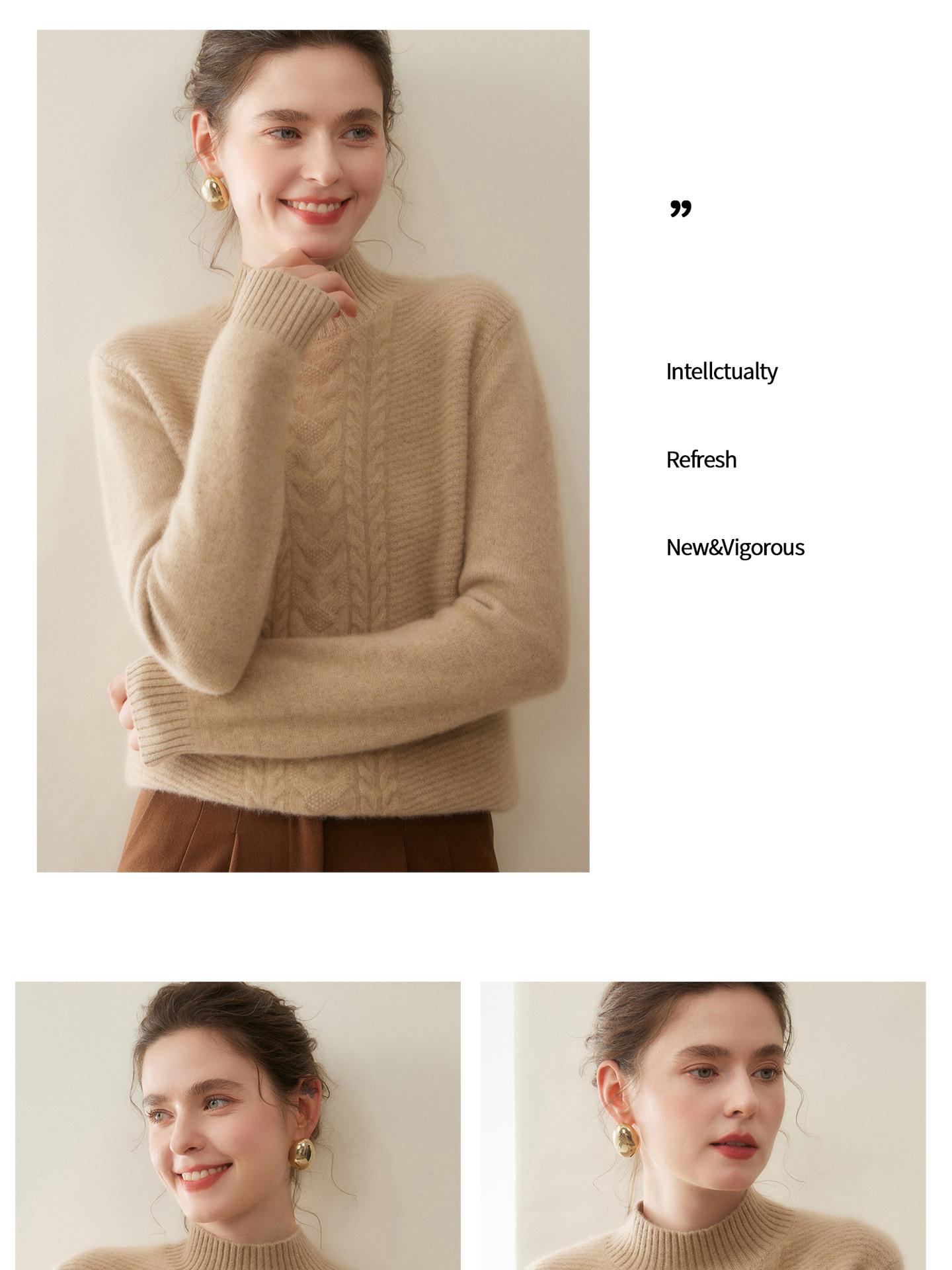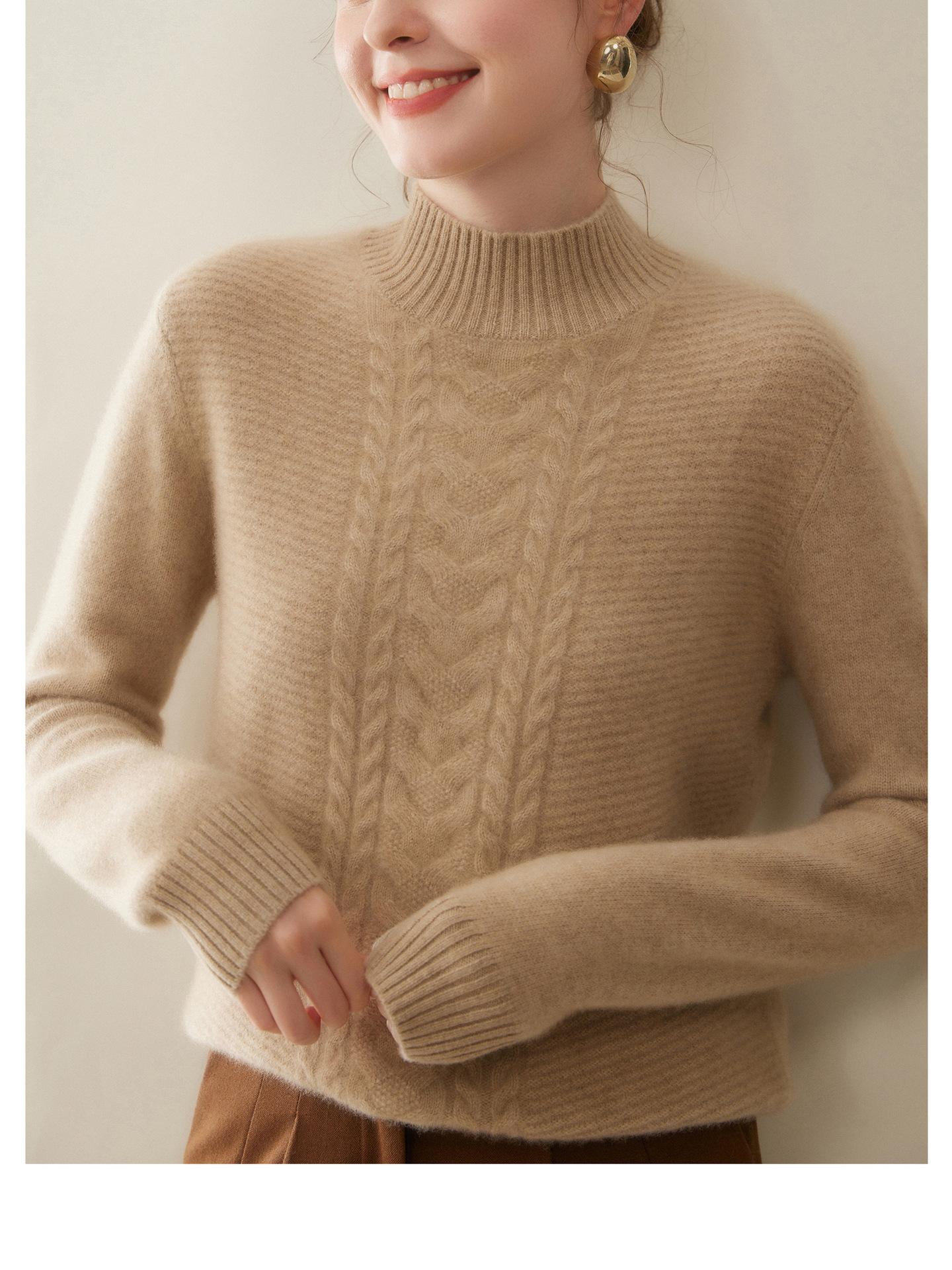 Grosor Otoño e Invierno Nuevo Estilo Cachemira Mujer Cuello Semi Alto Tejido de Cable Retro Jersey Tejido Base Suéter Cálido Moda