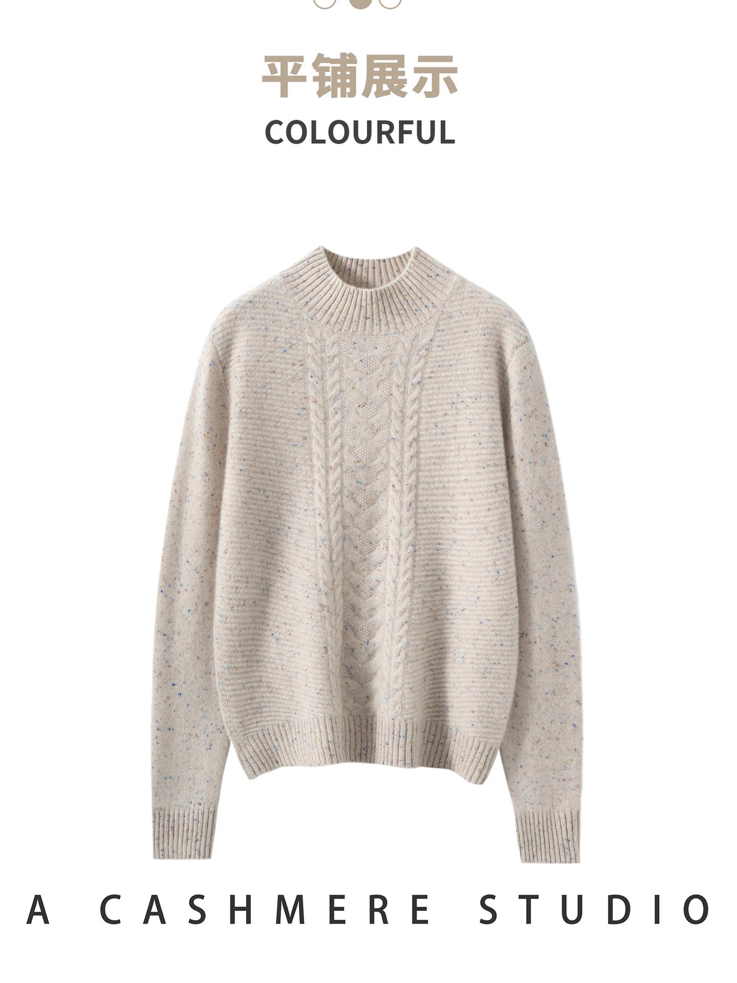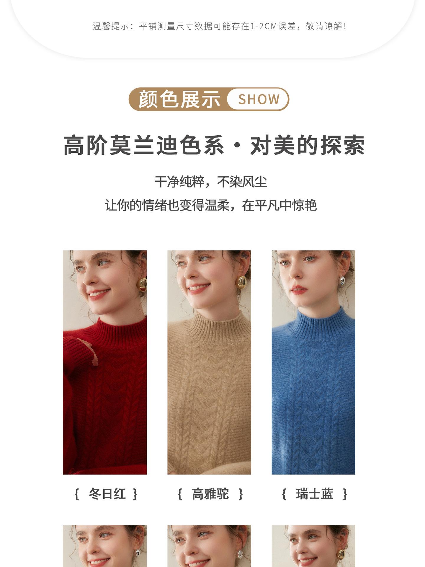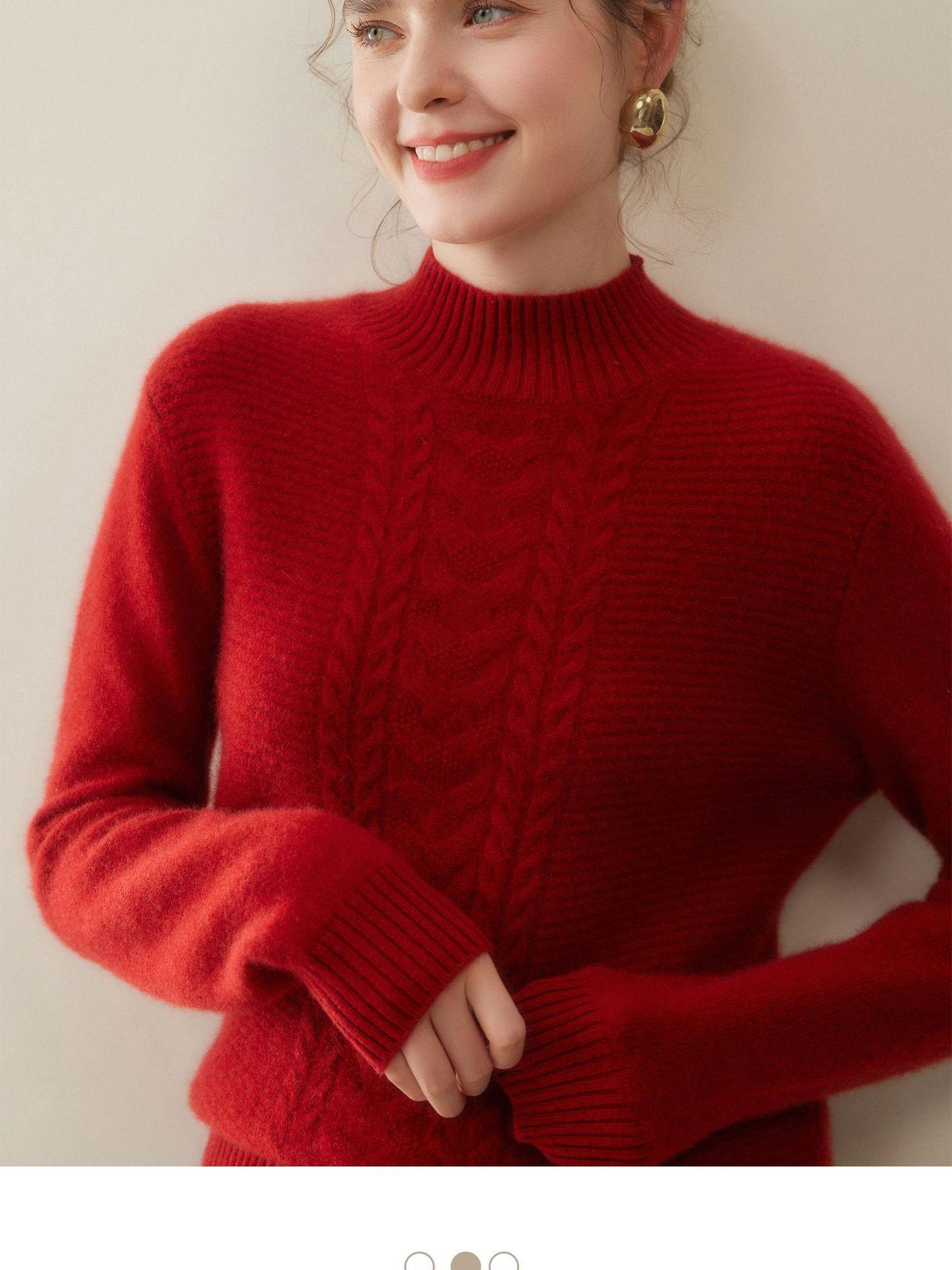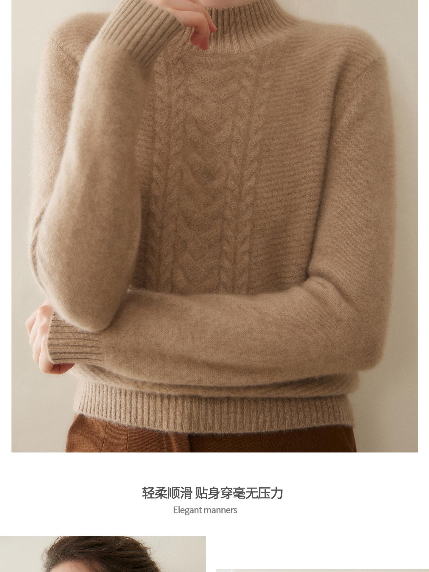 Grosor Otoño e Invierno Nuevo Estilo Cachemira Mujer Cuello Semi Alto Tejido de Cable Retro Jersey Tejido Base Suéter Cálido Moda