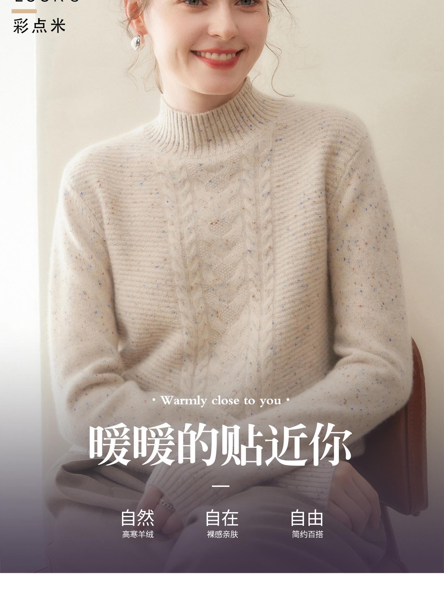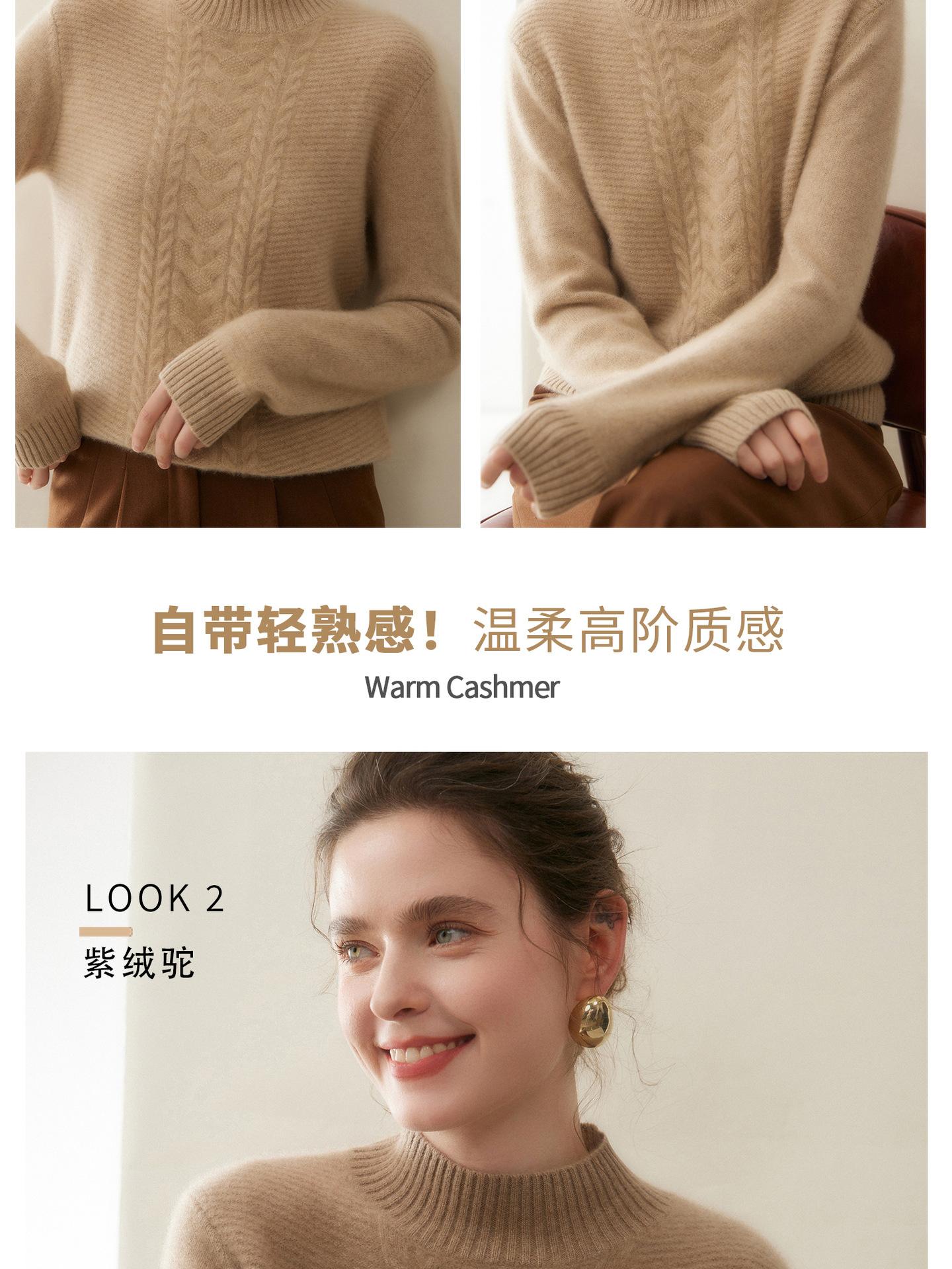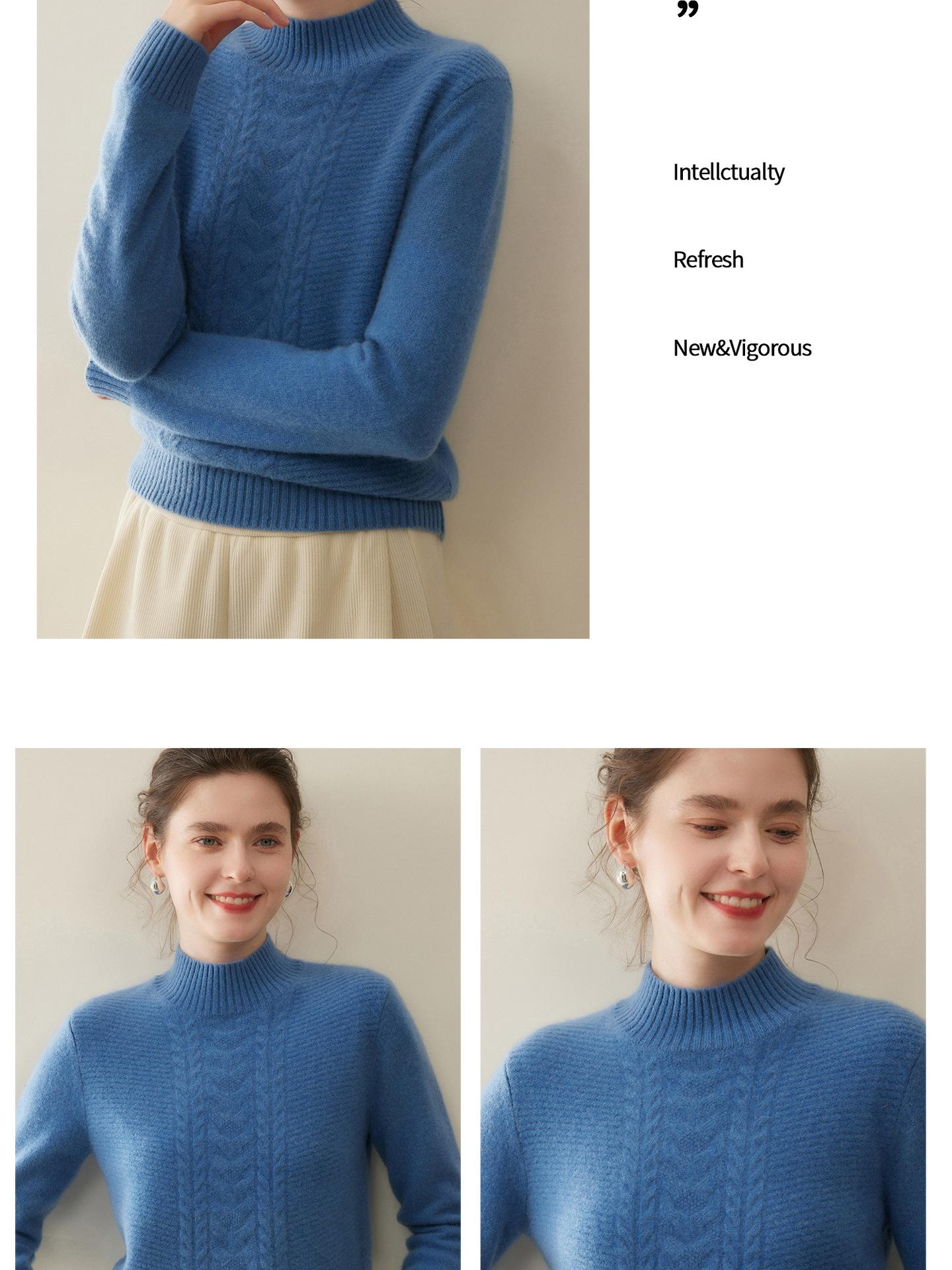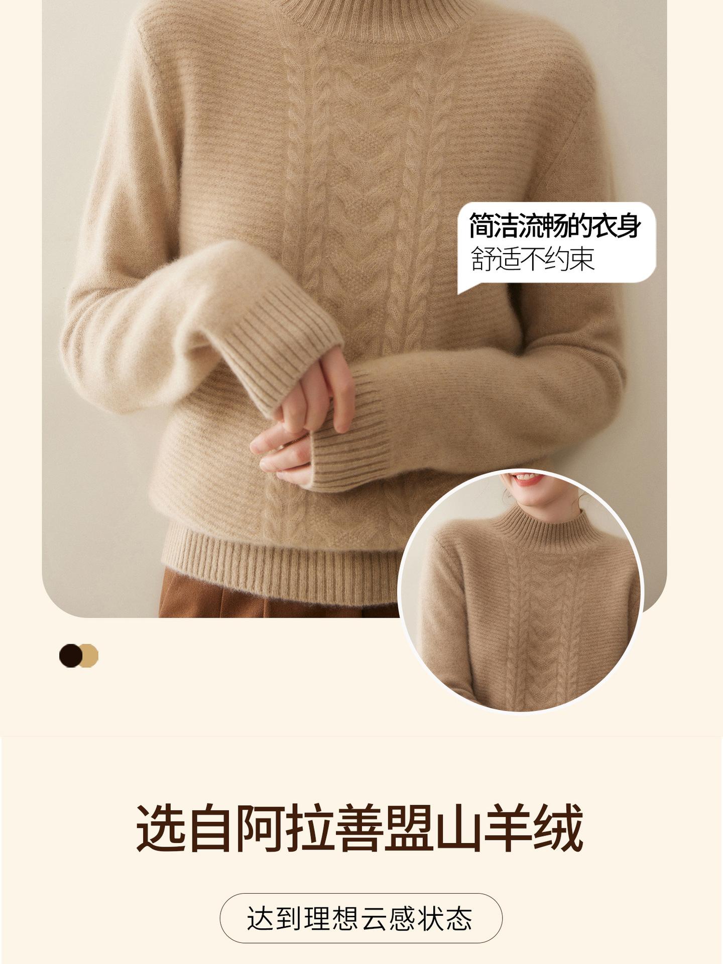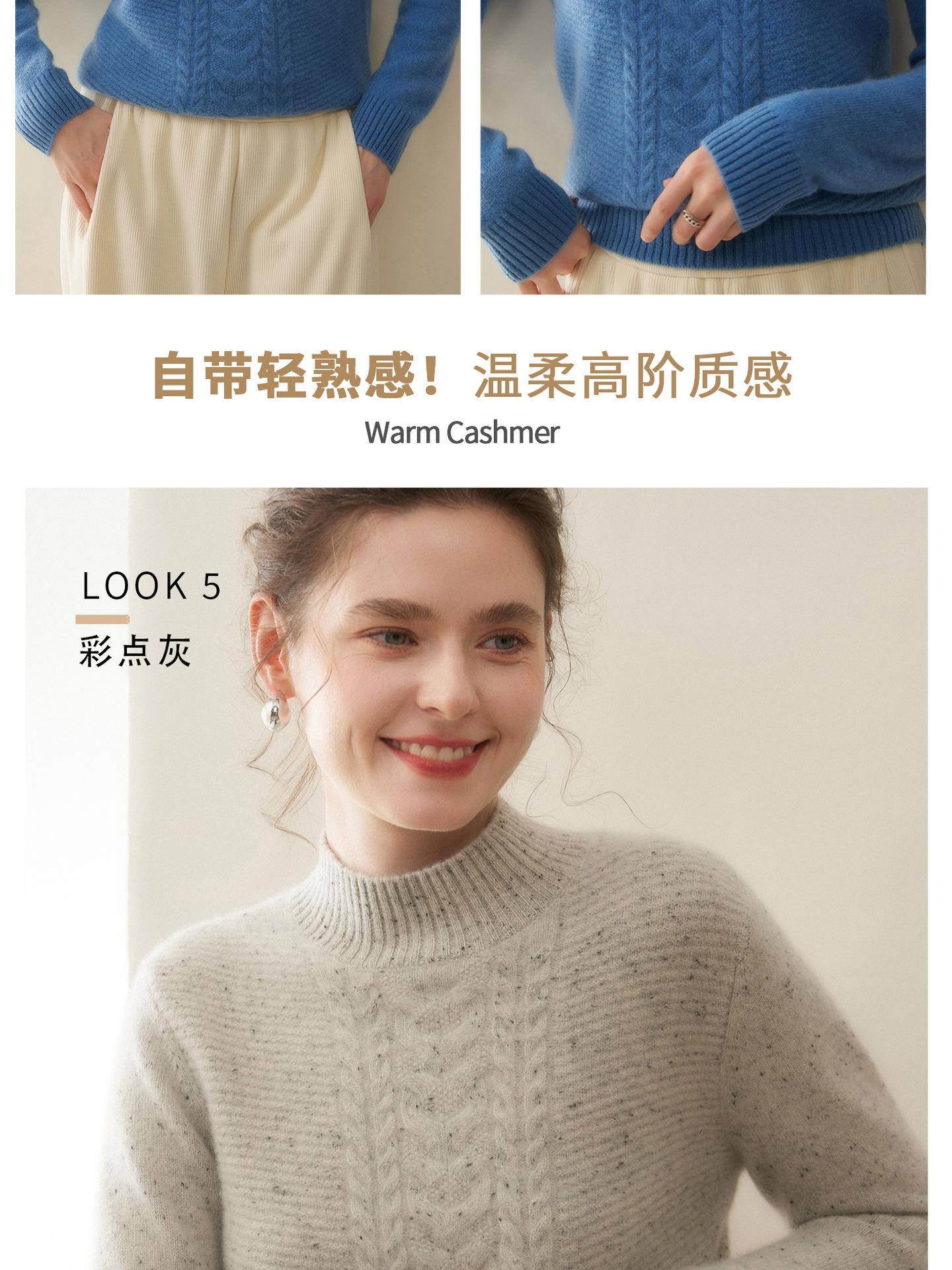 Grosor Otoño e Invierno Nuevo Estilo Cachemira Mujer Cuello Semi Alto Tejido de Cable Retro Jersey Tejido Base Suéter Cálido Moda