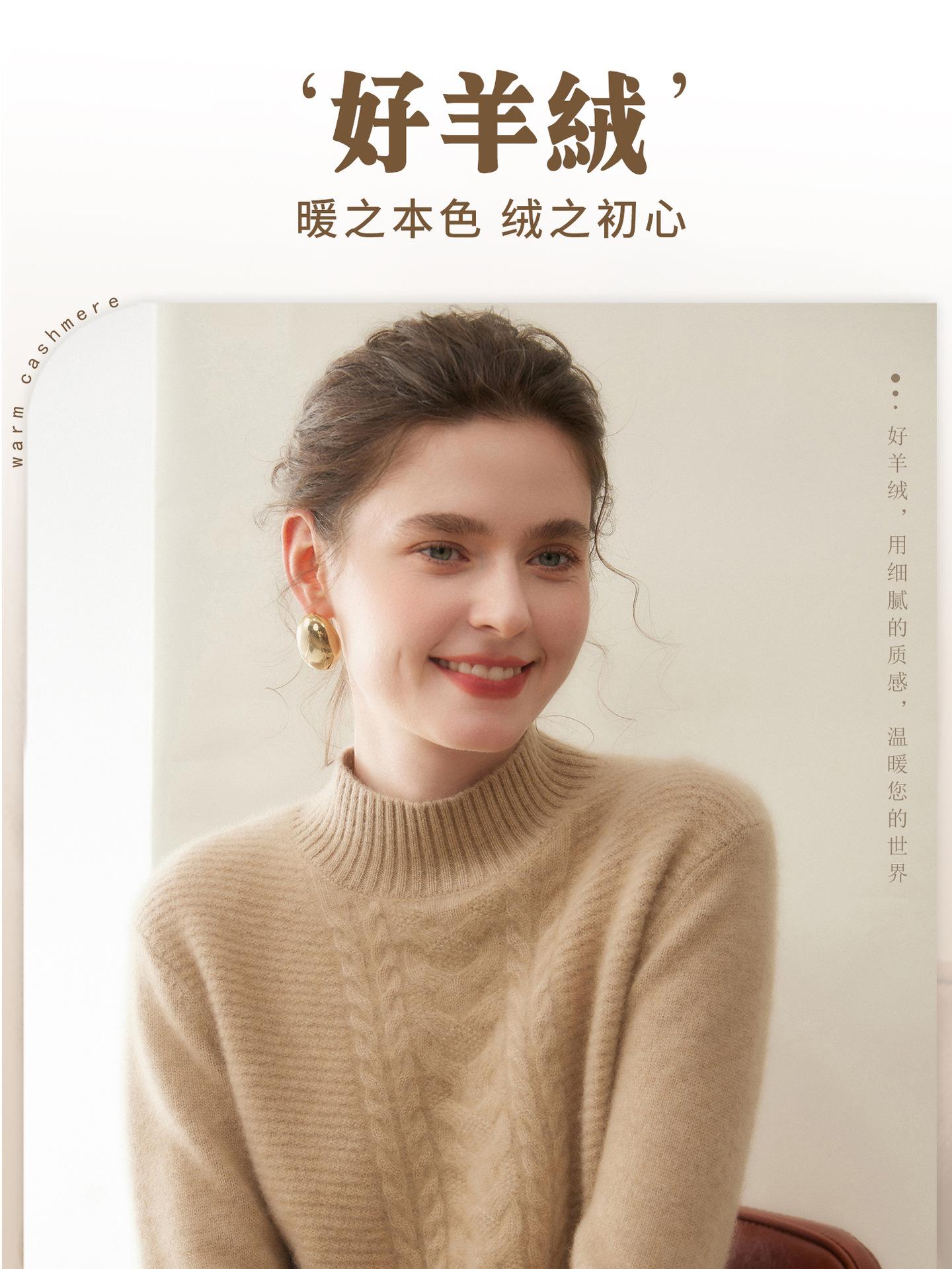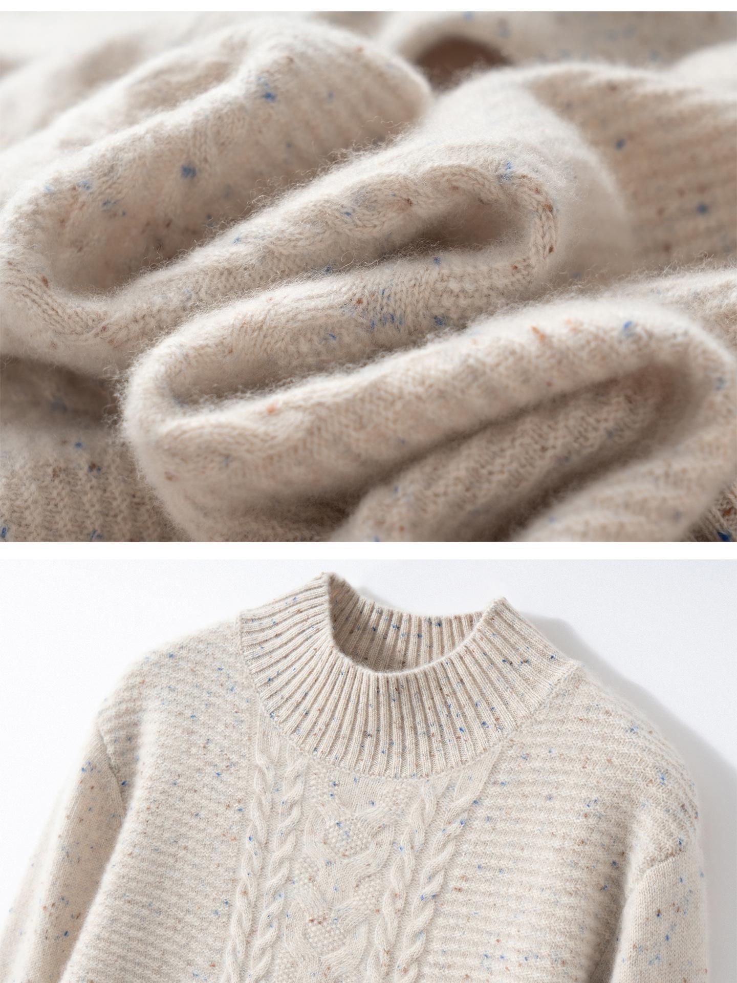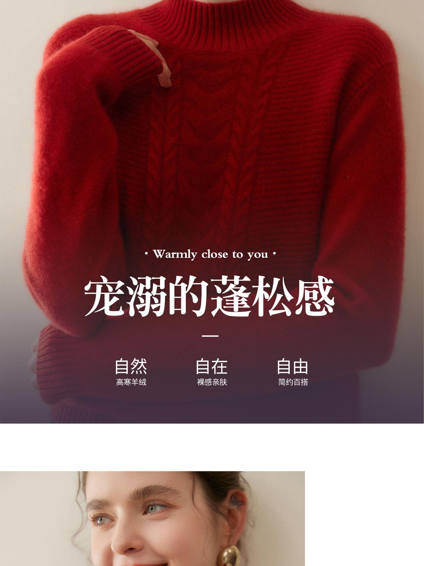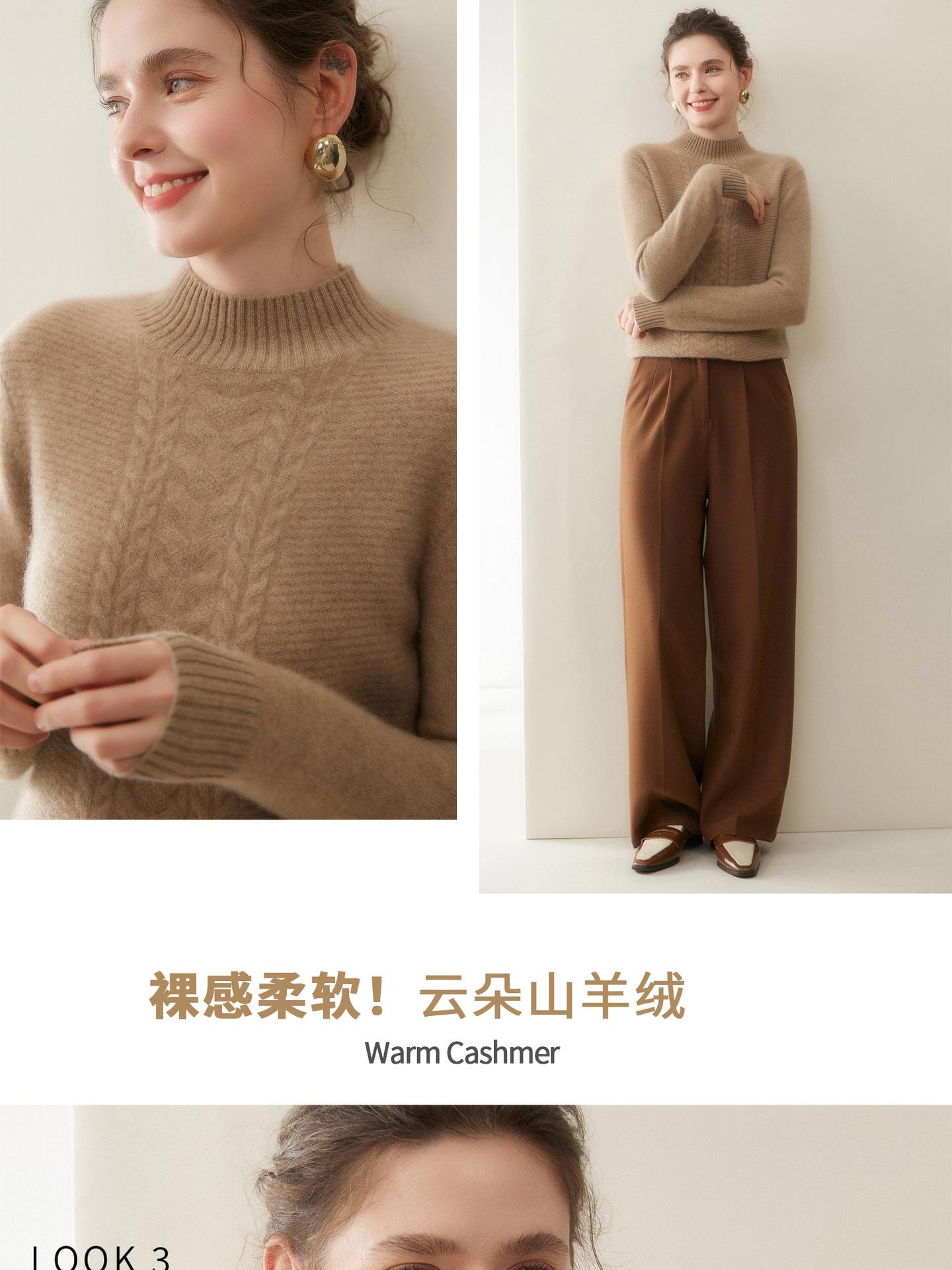 Grosor Otoño e Invierno Nuevo Estilo Cachemira Mujer Cuello Semi Alto Tejido de Cable Retro Jersey Tejido Base Suéter Cálido Moda