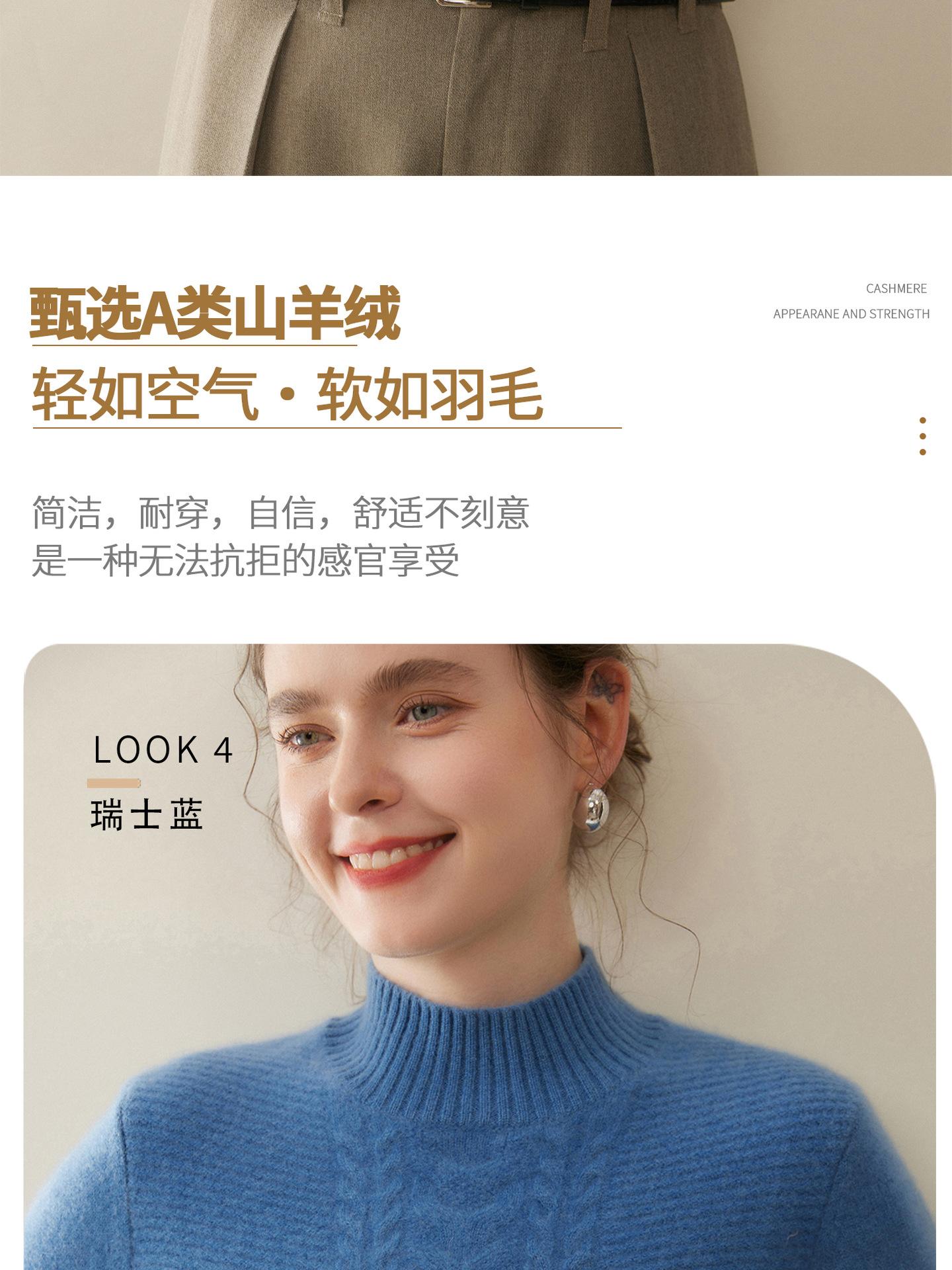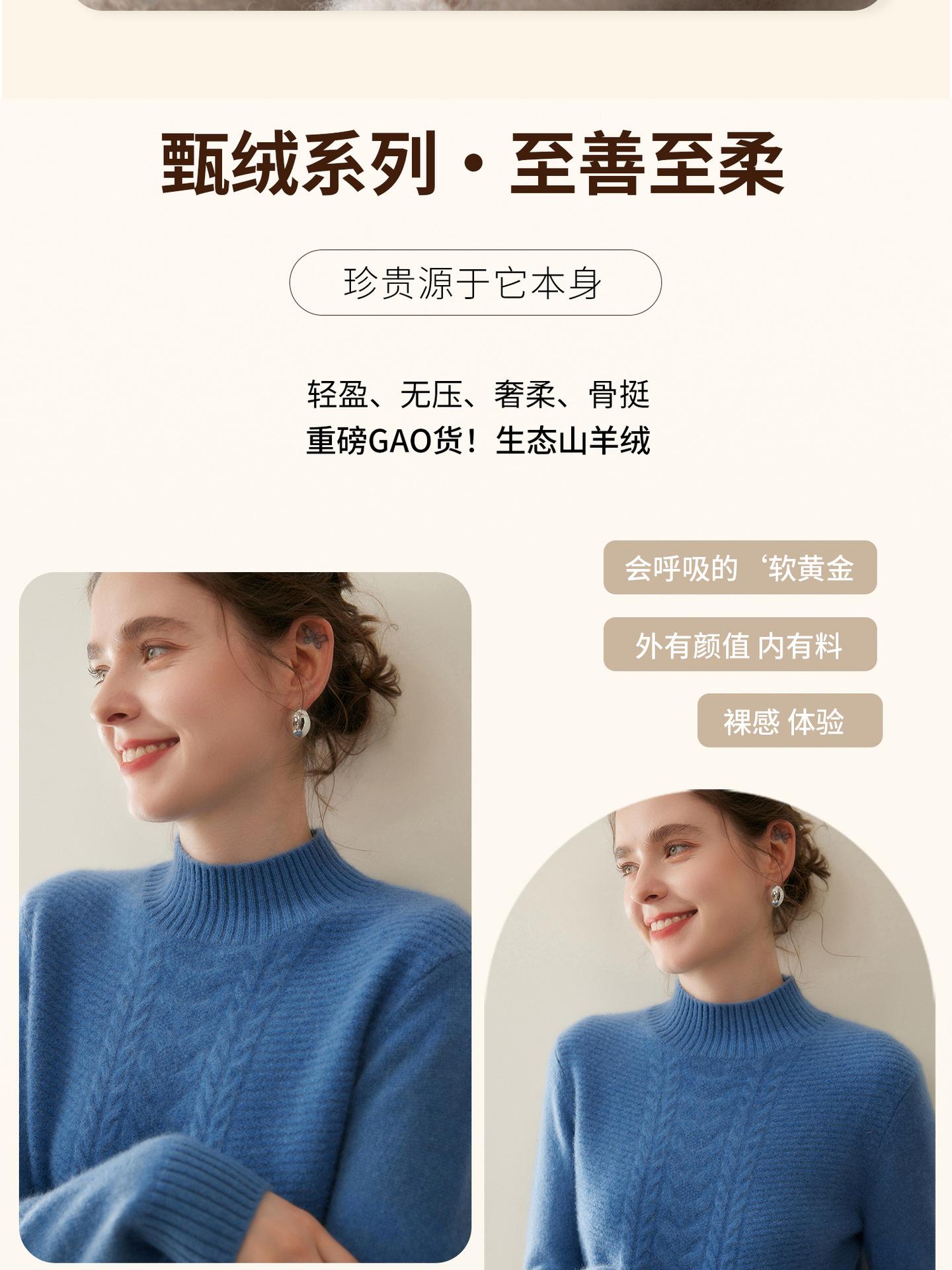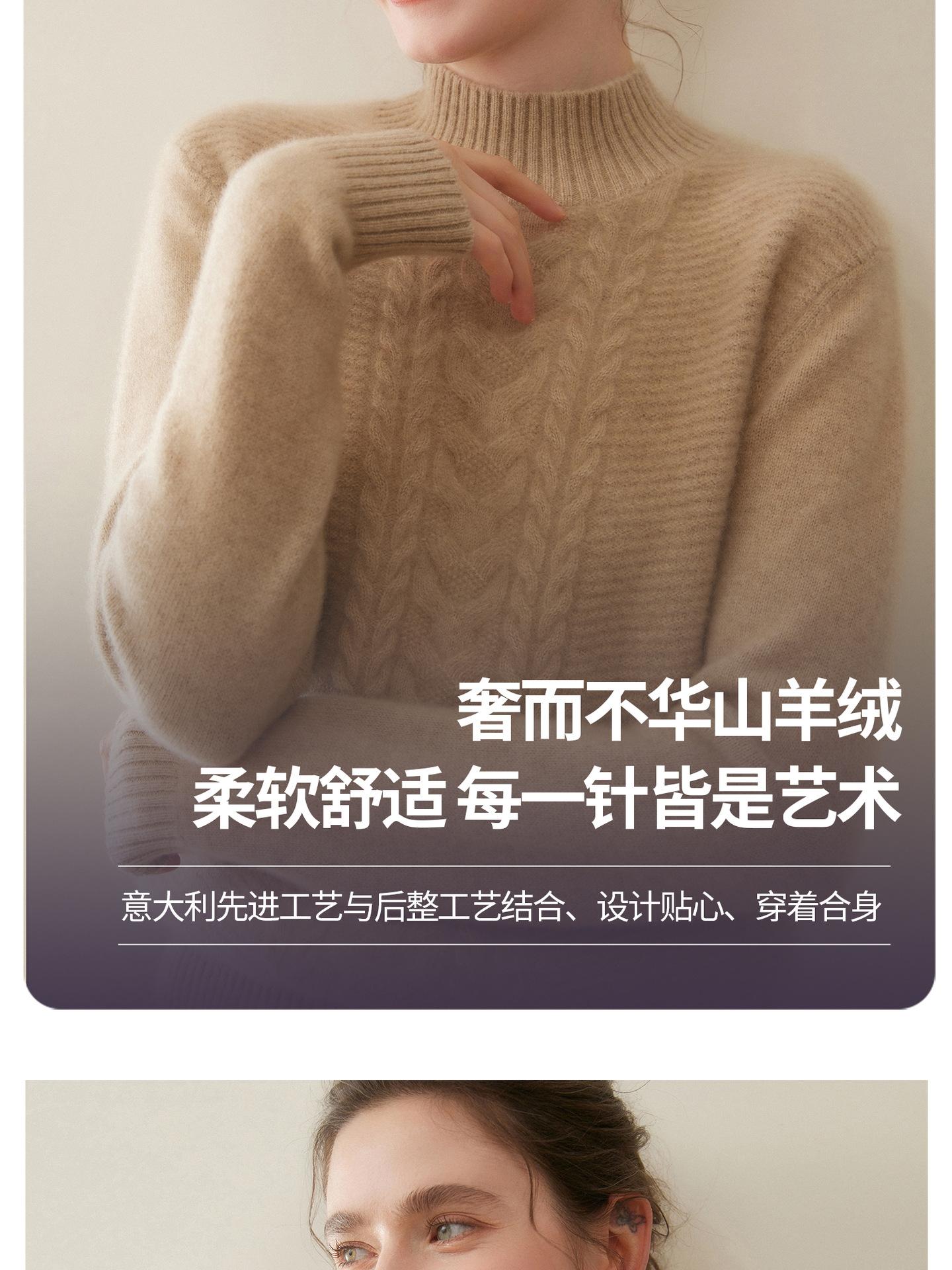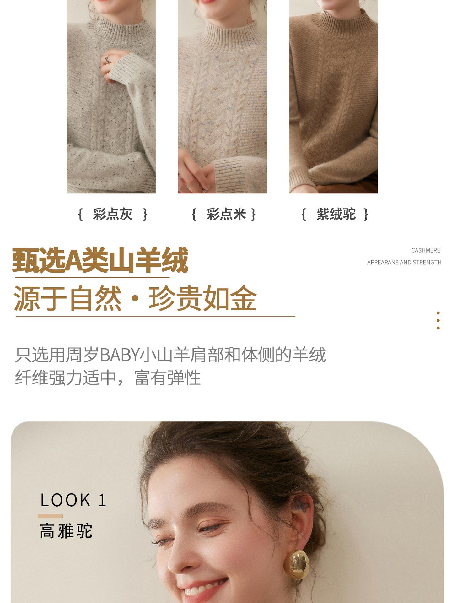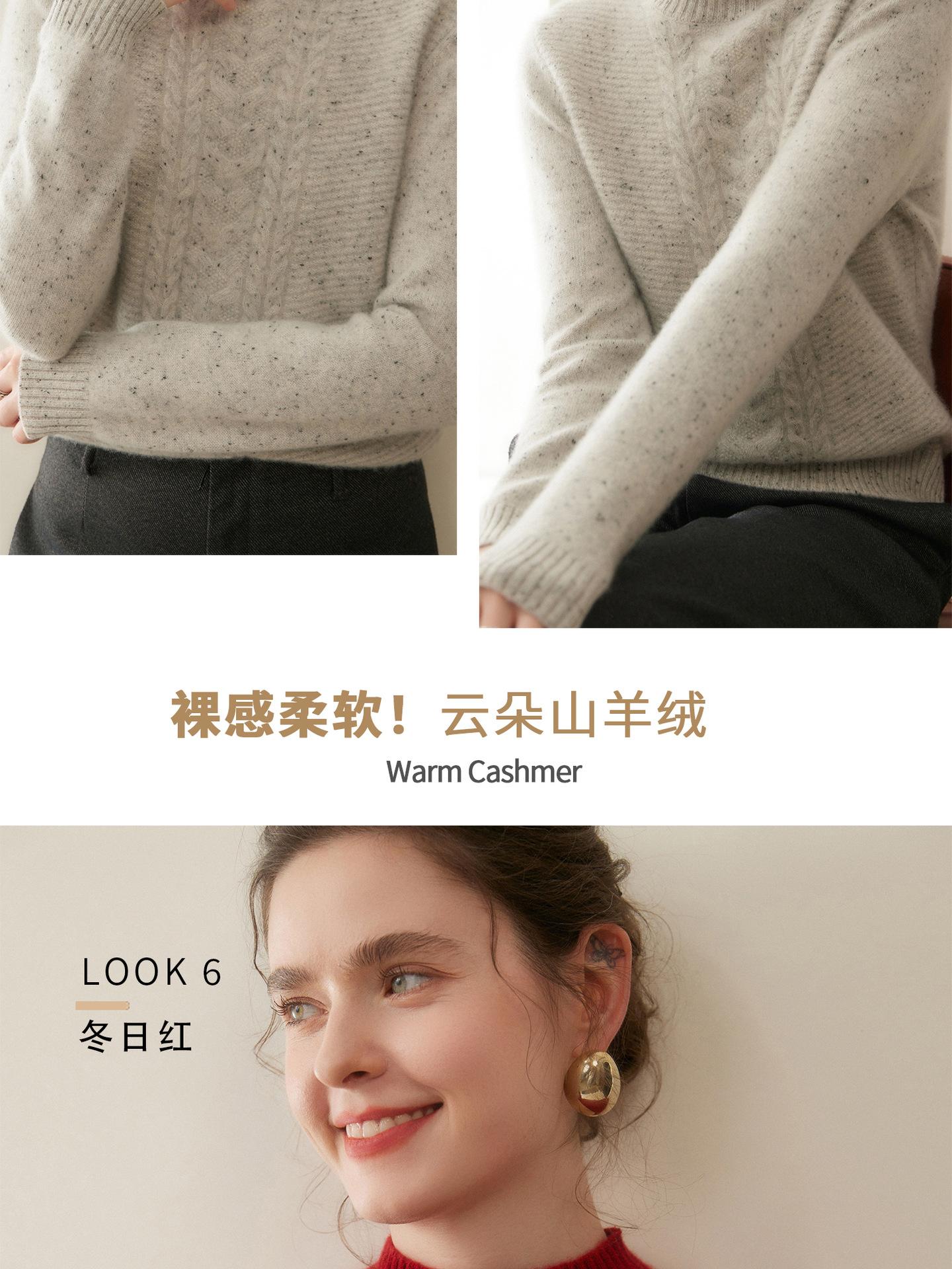 Grosor Otoño e Invierno Nuevo Estilo Cachemira Mujer Cuello Semi Alto Tejido de Cable Retro Jersey Tejido Base Suéter Cálido Moda
