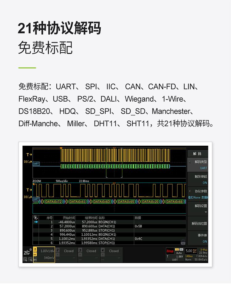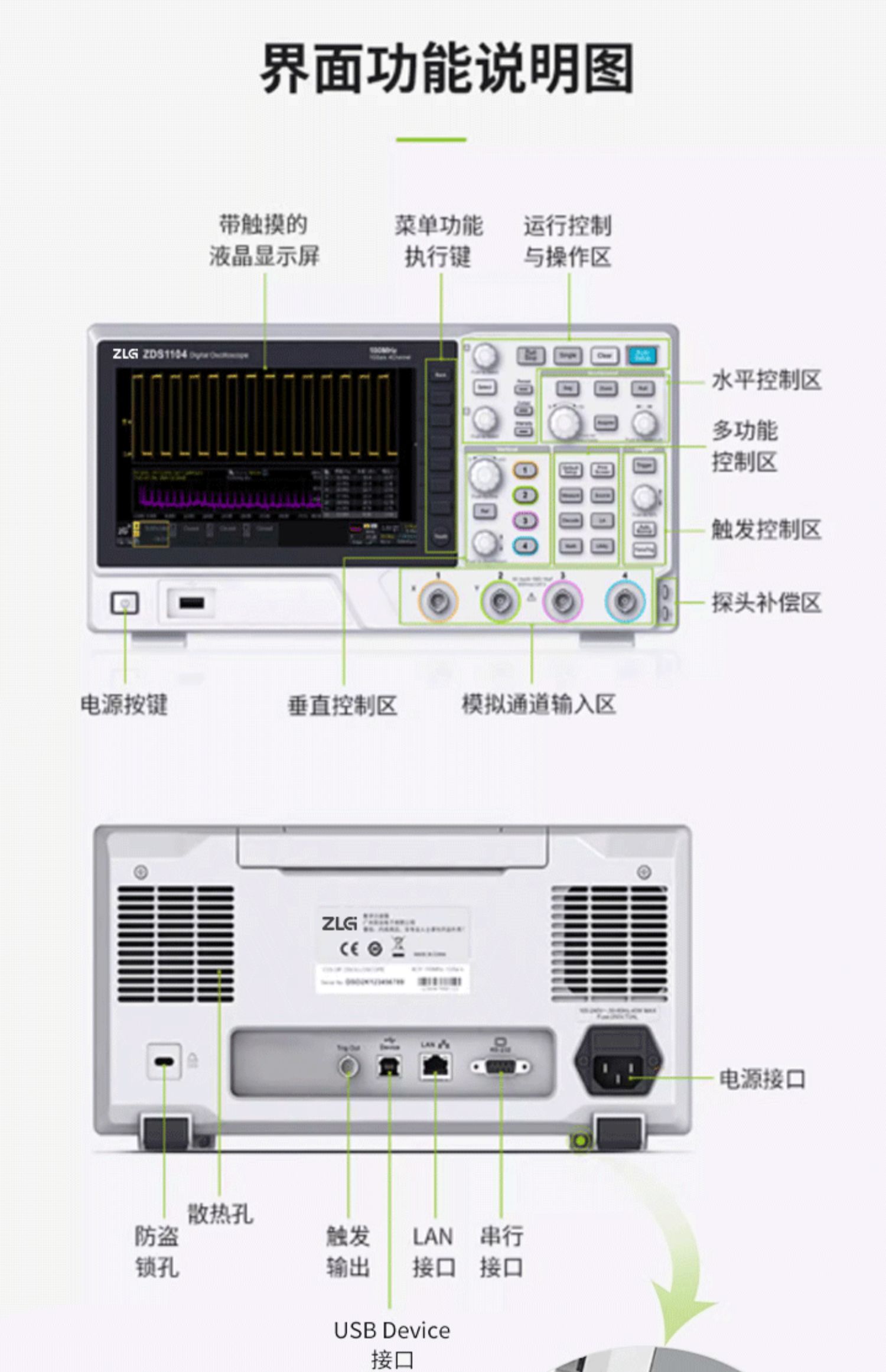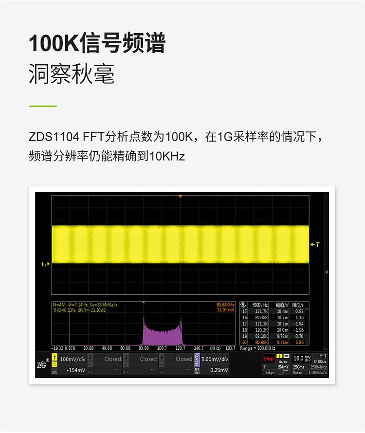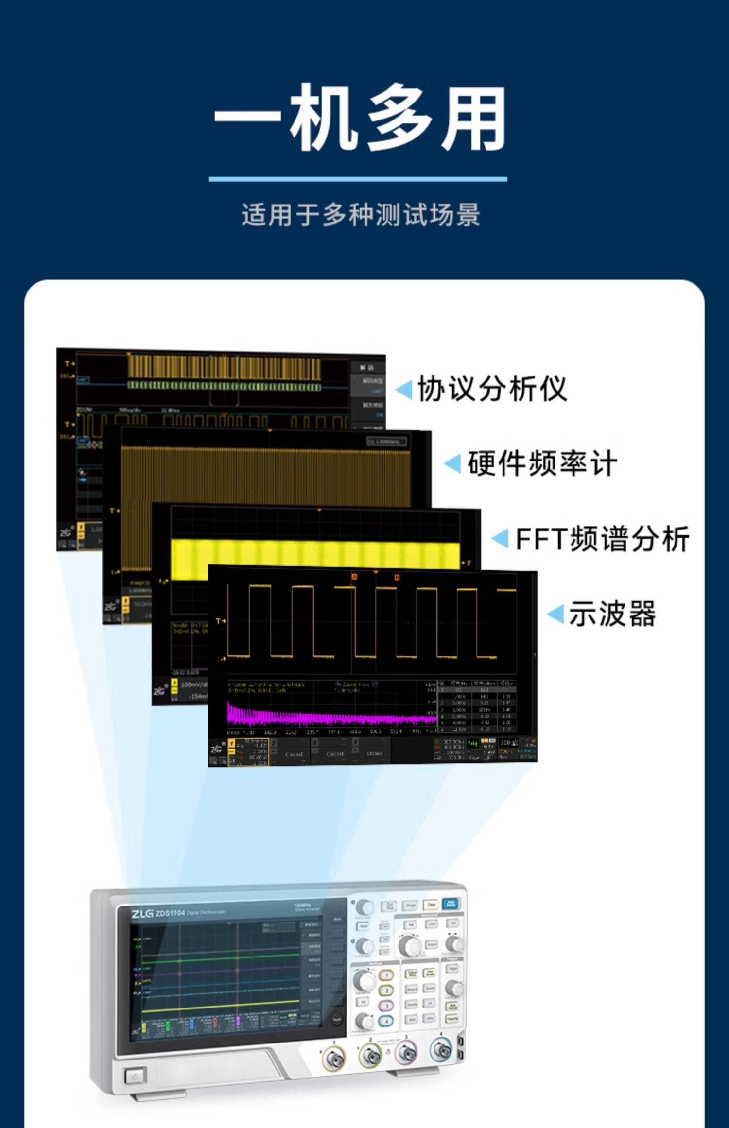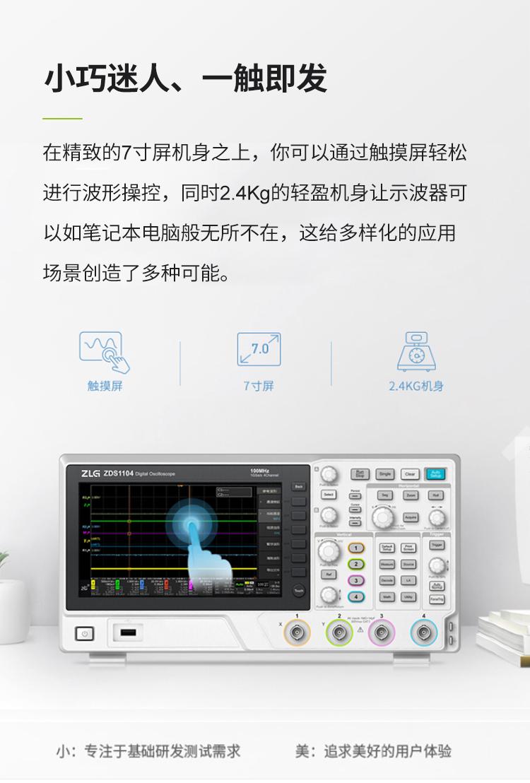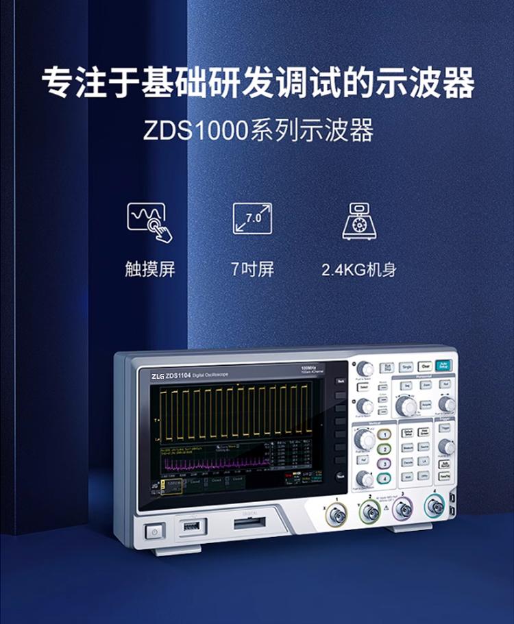 Osciloscopio digital de cuatro canales ZLG Zhiyuan 100MHz ZDS1104 portátil tasa de muestreo 1G pantalla HD de 7 pulgadas