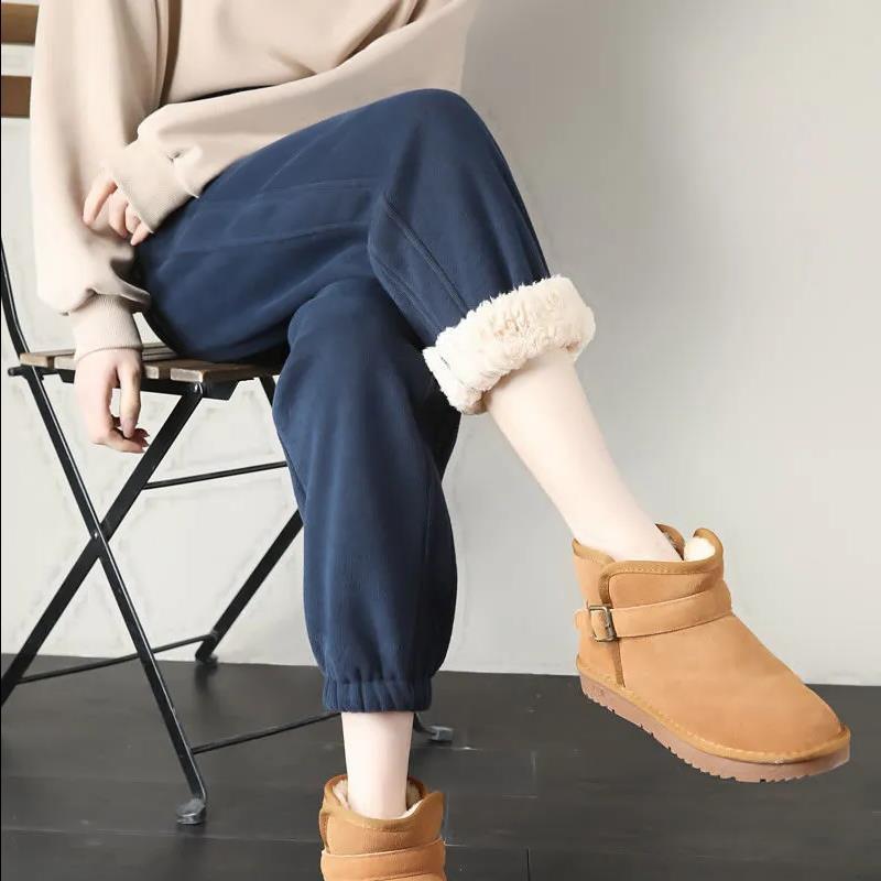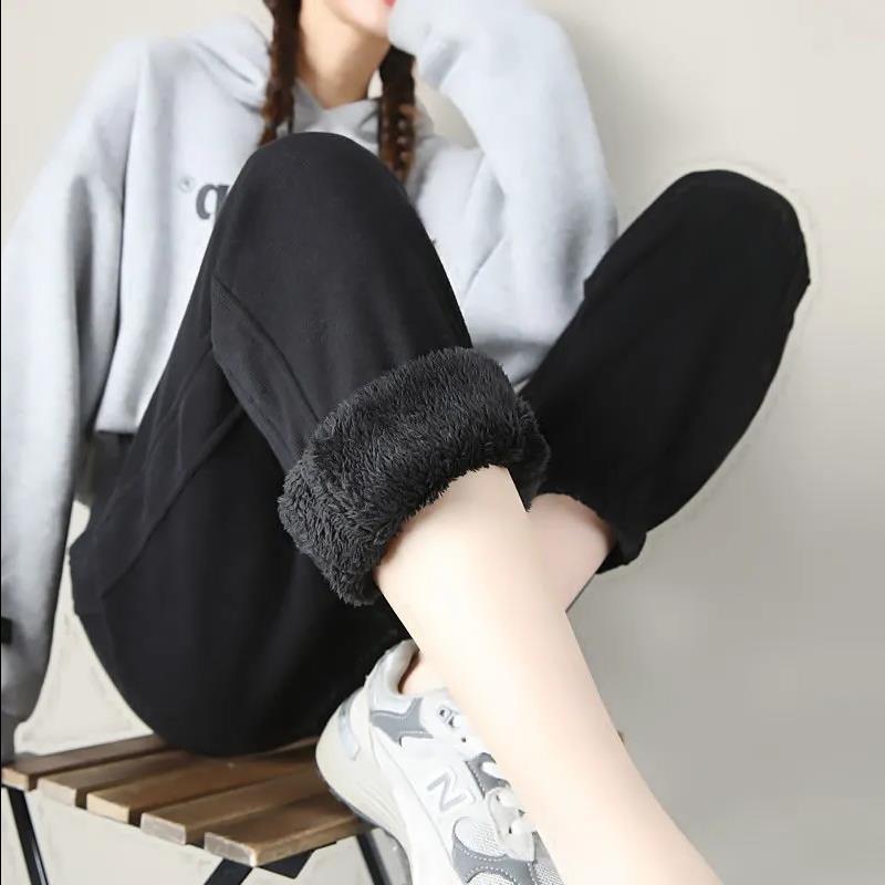 Pantalones deportivos gruesos para mujer con forro polar Otoño e Invierno 2024 Nuevo Tendencia Pantalones de chándal casuales holgados adelgazantes