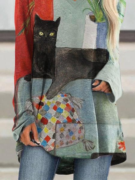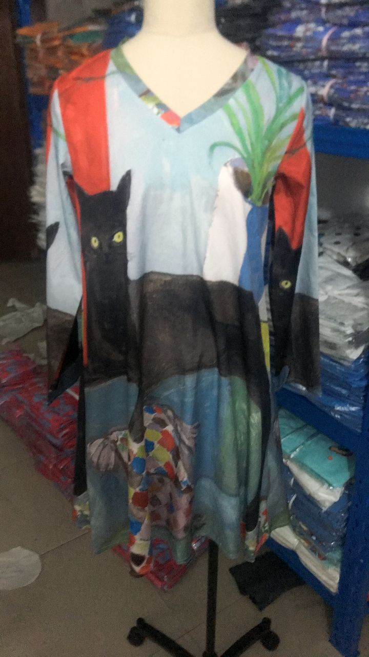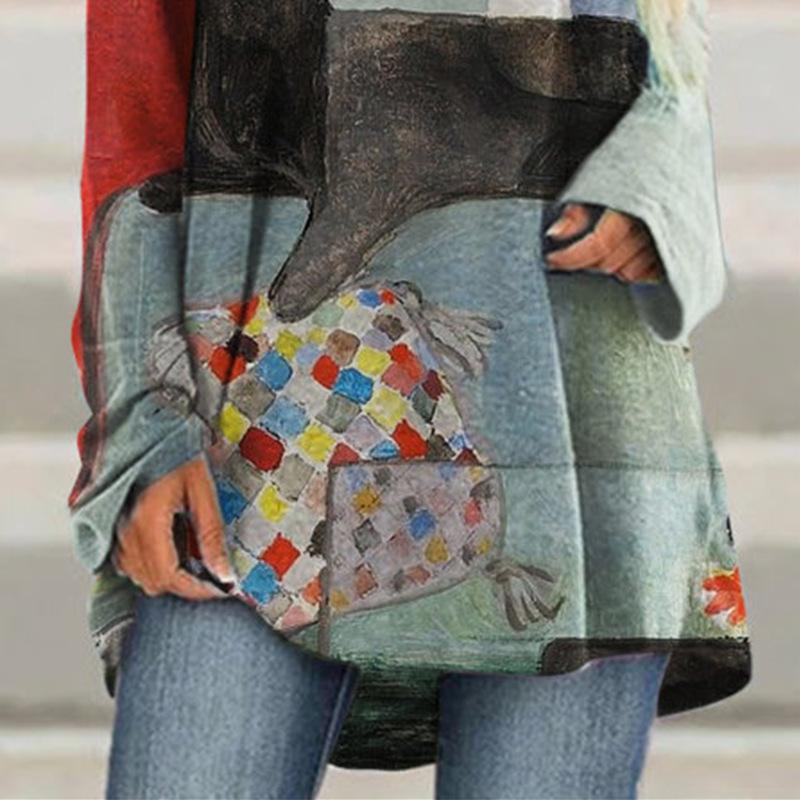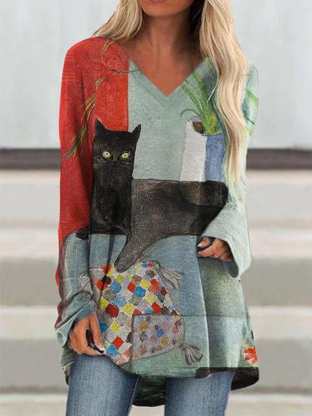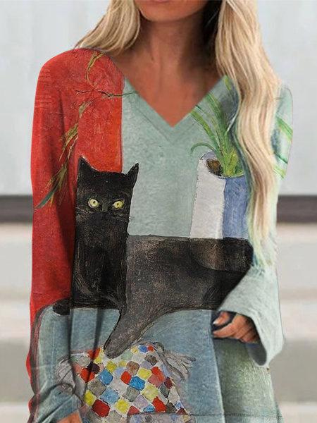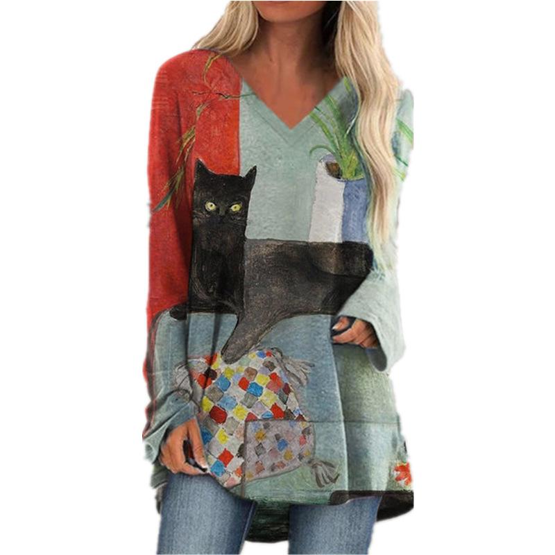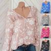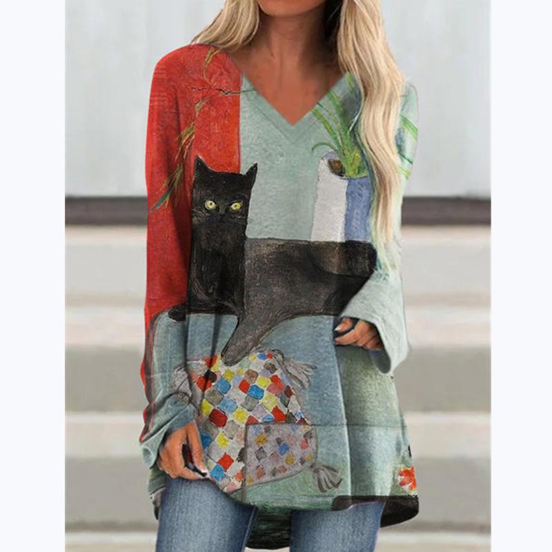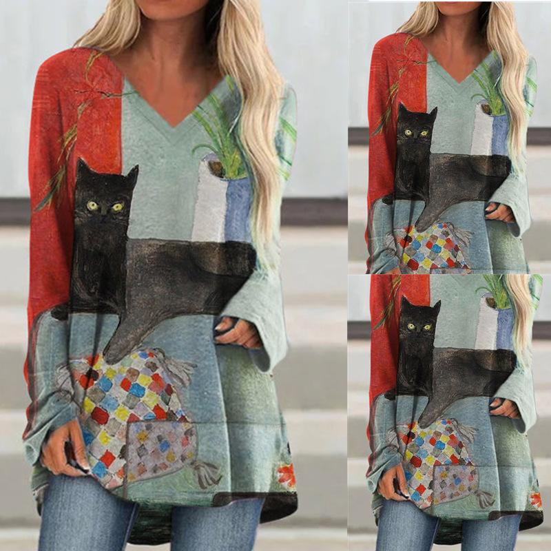 En stock 2023 primavera nueva ropa de mujer Amazon más vendido popular europeo y americano estampado manga larga holgado talla grande camiseta con cuello en V
