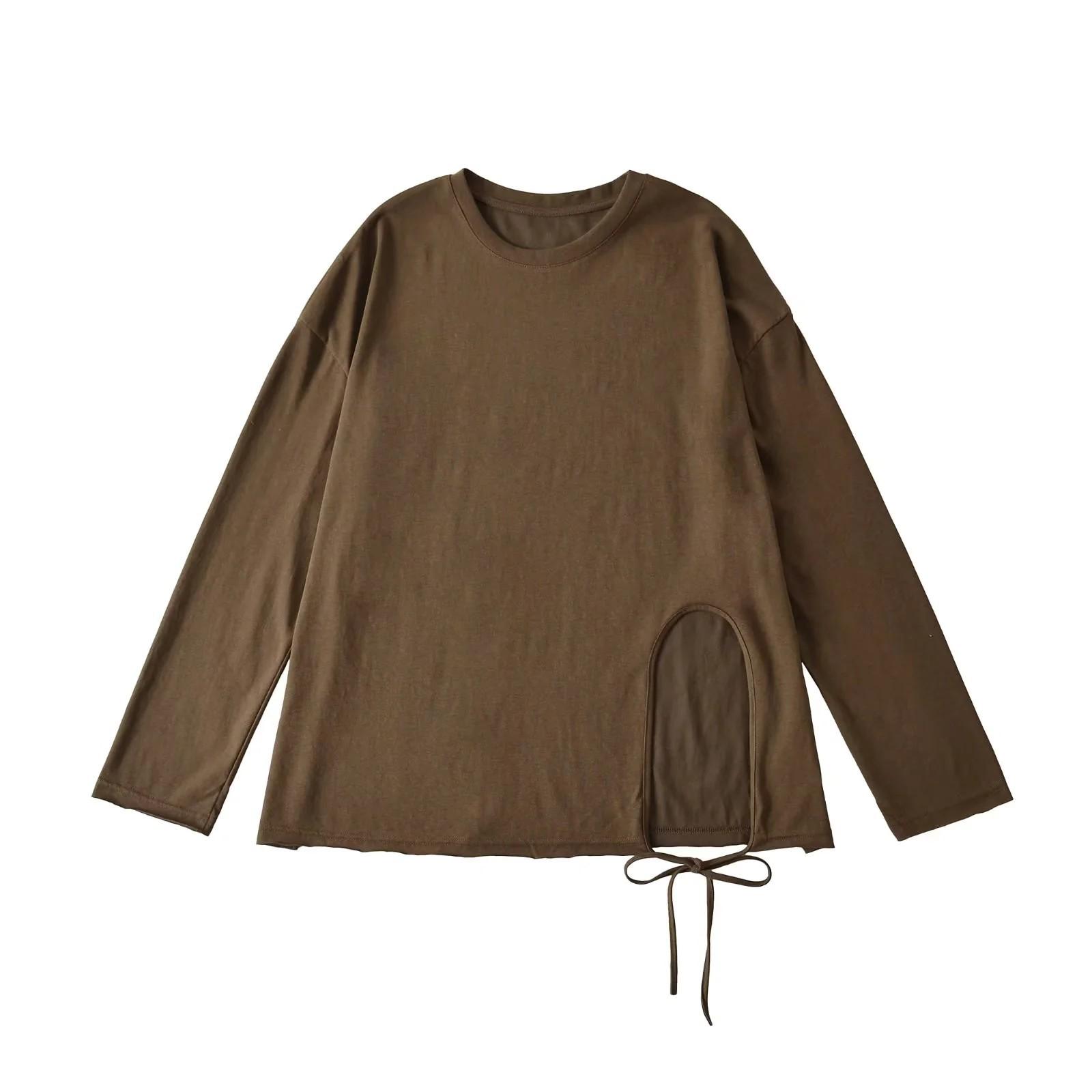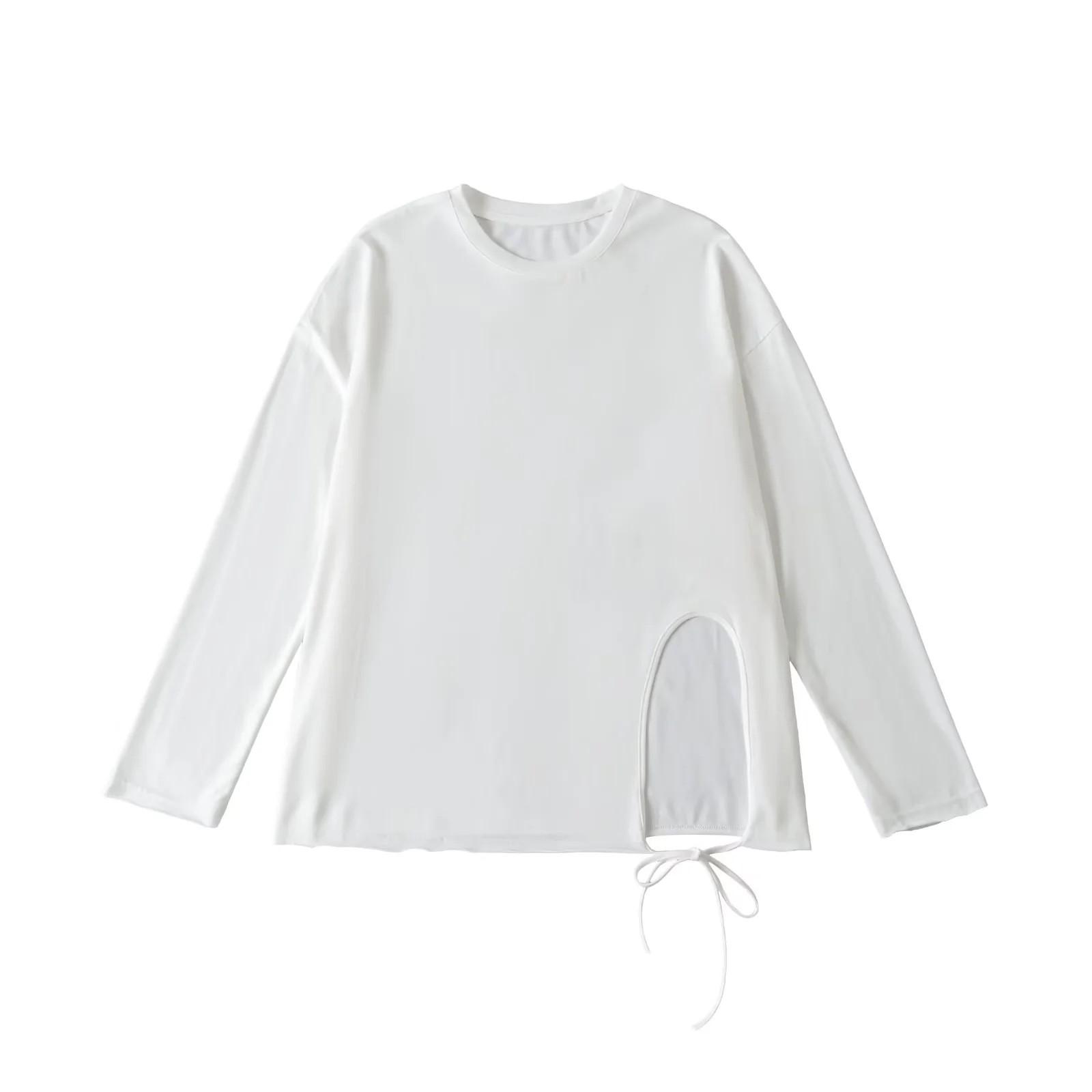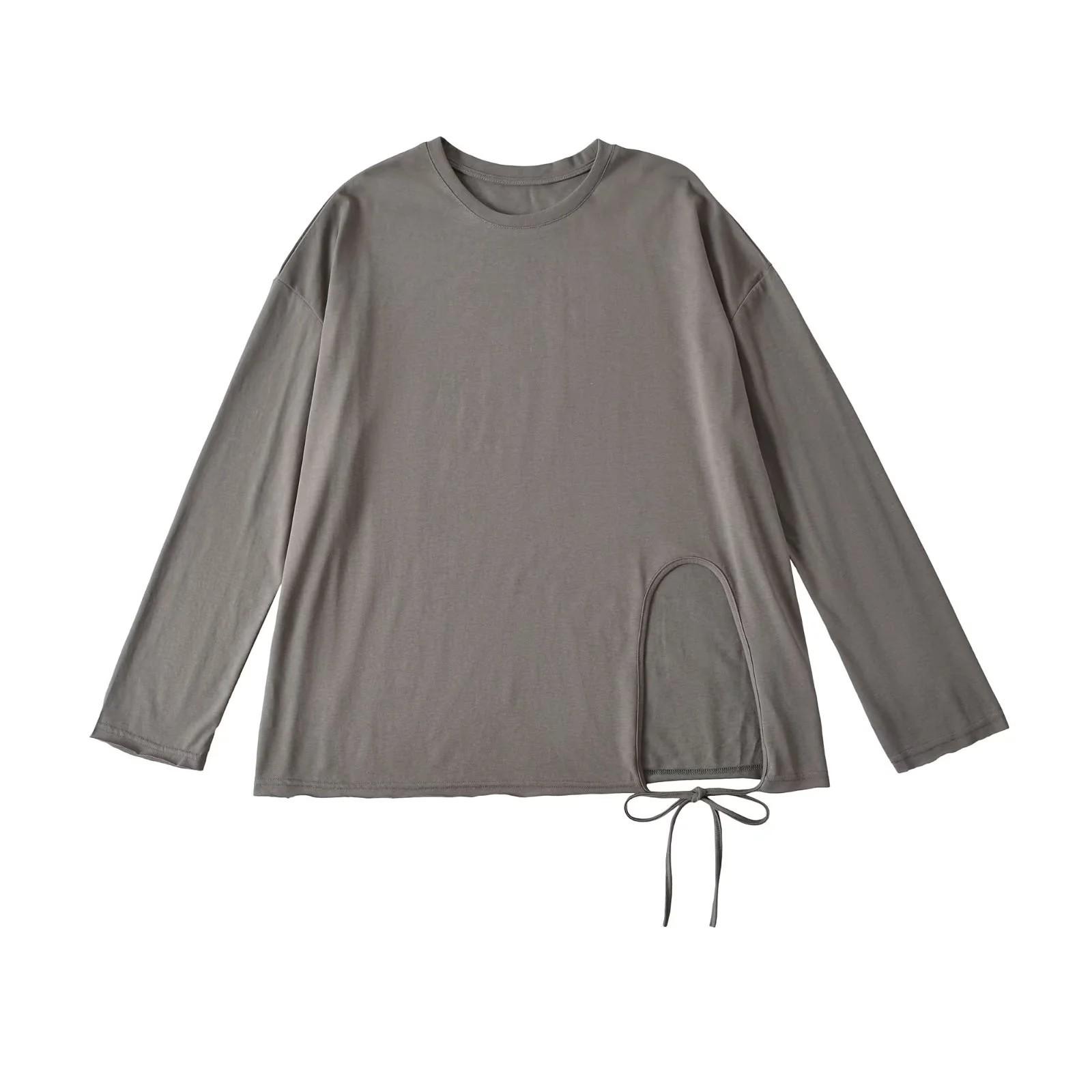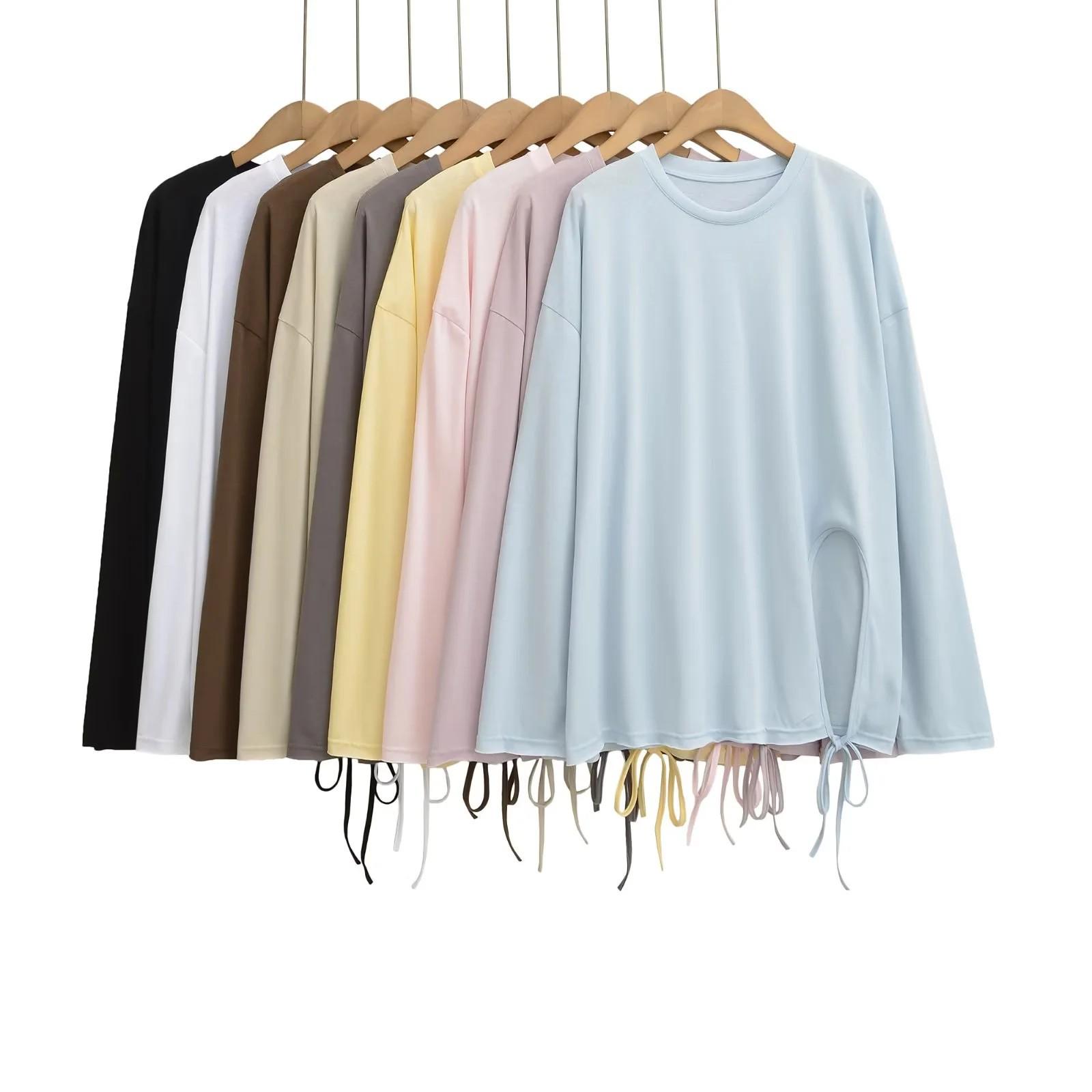 2025 Dobladillo Irregular Abertura Estilo Holgazán Cárdigan Protector Solar Top Mujer Otoño Suelto Deportivo Cuello Redondo Camiseta Manga Larga