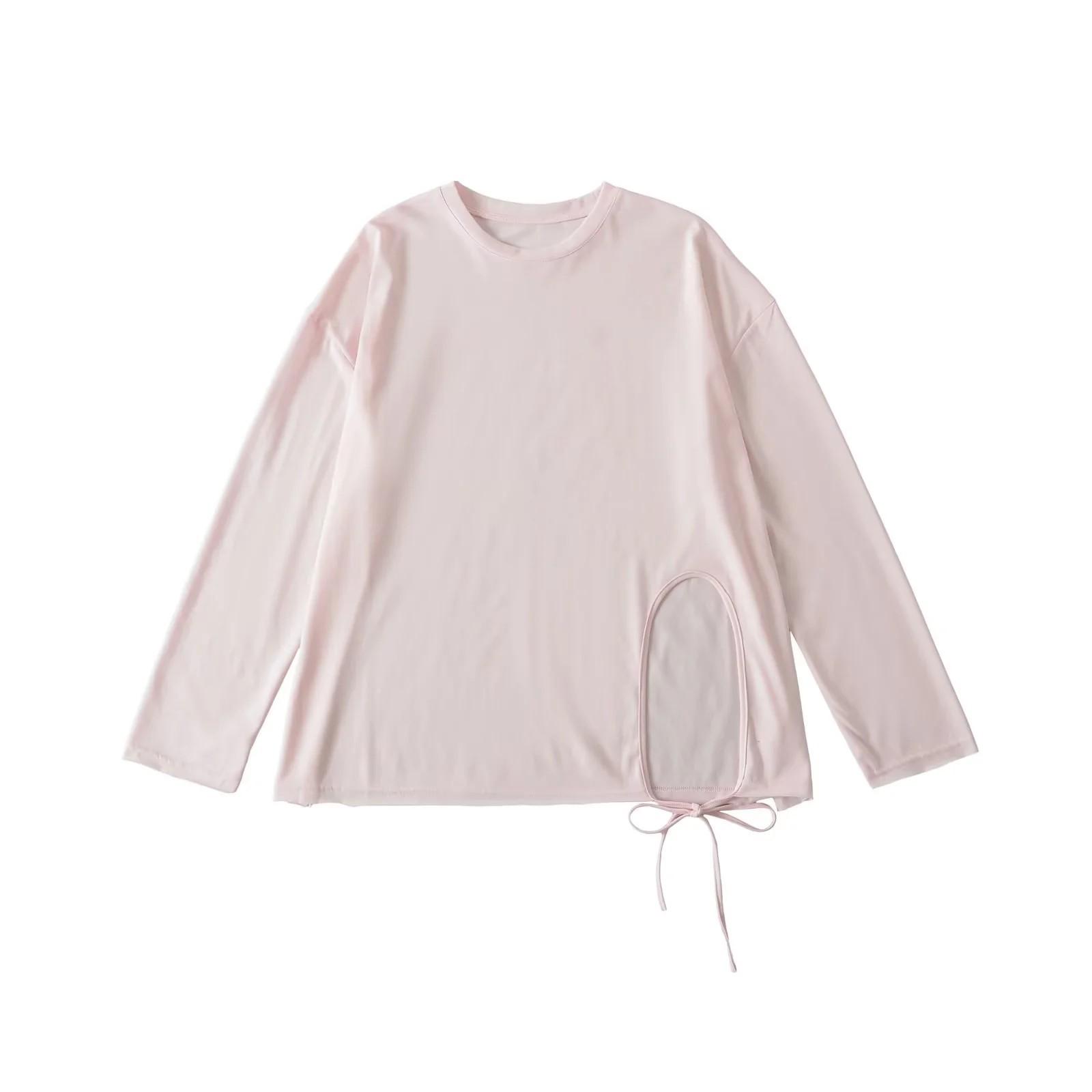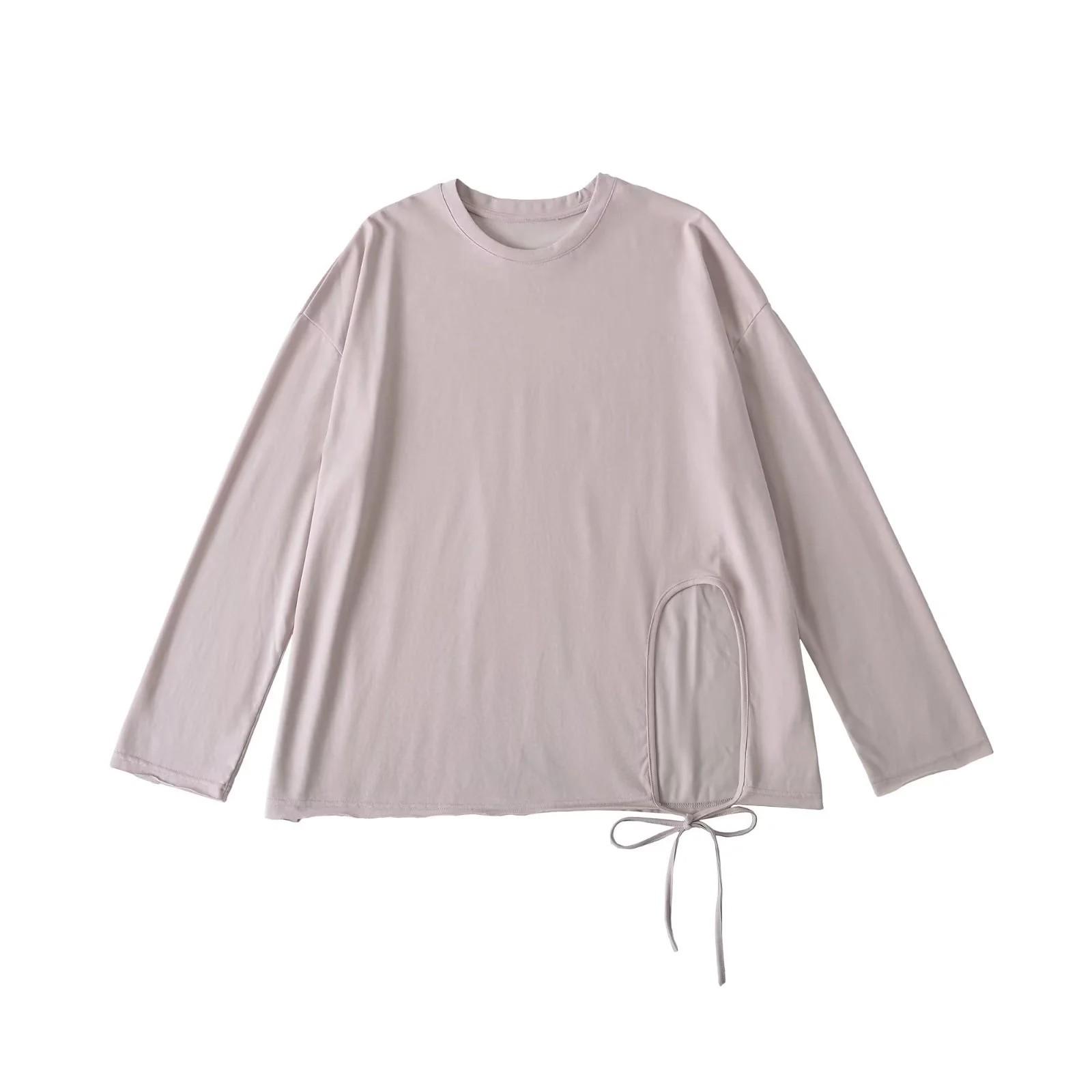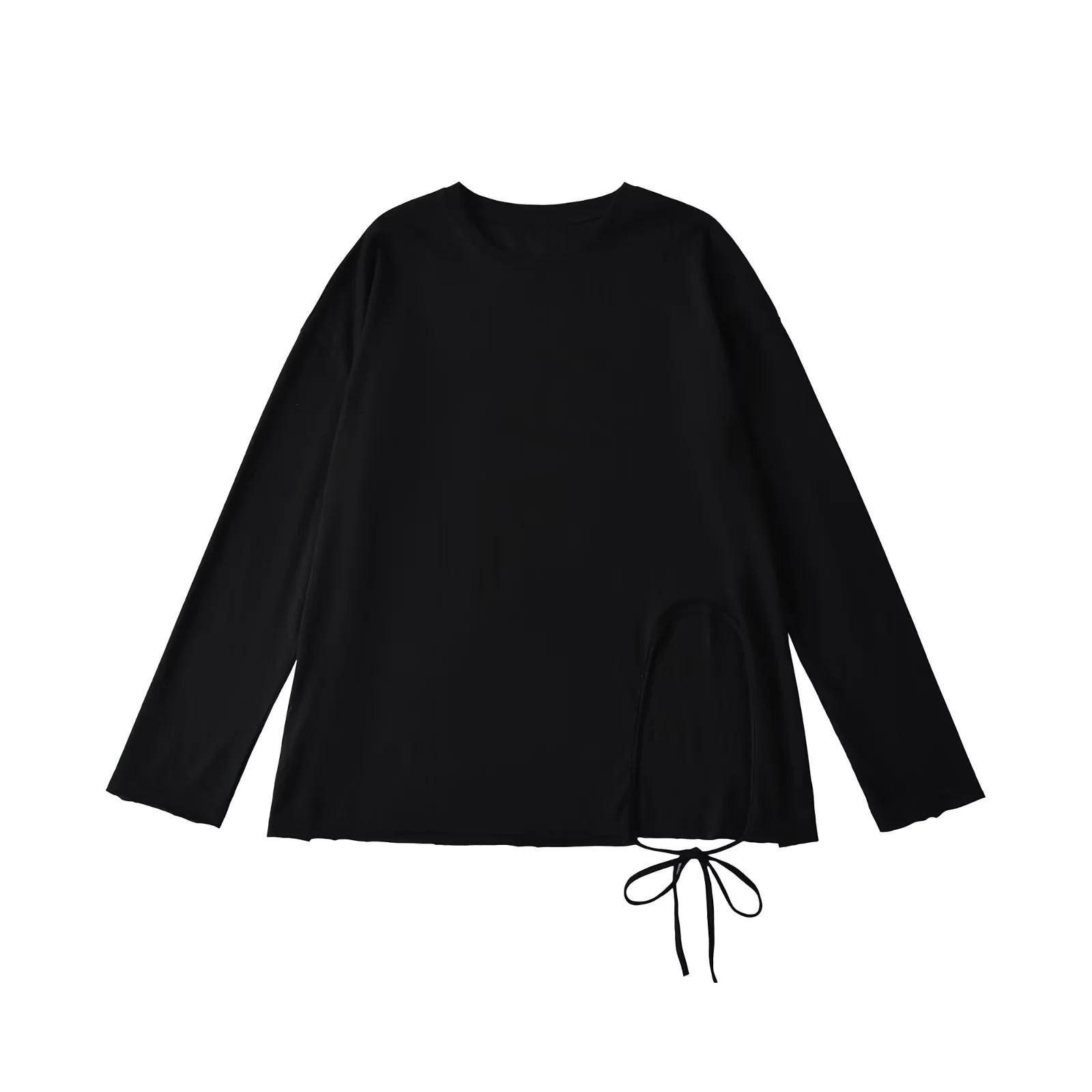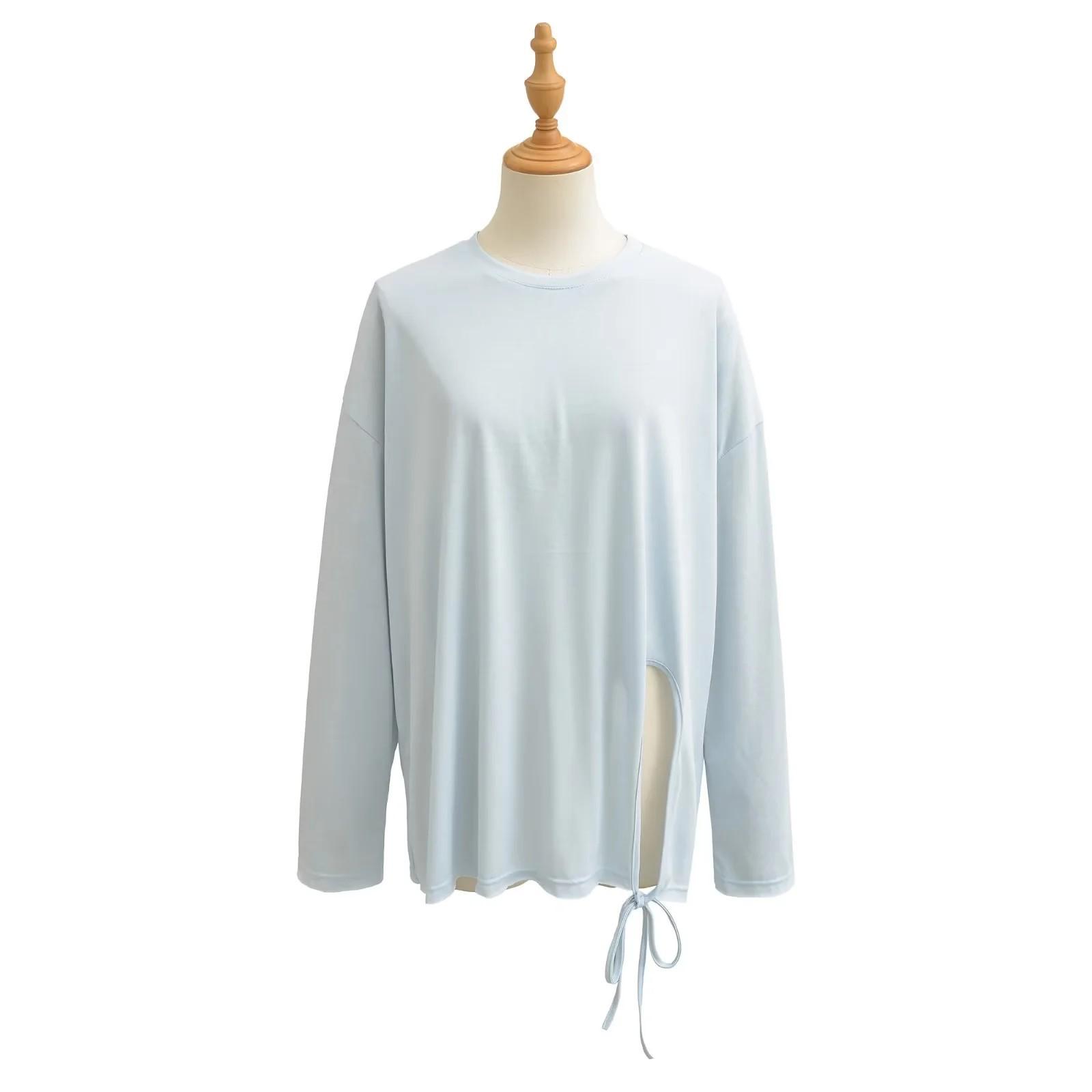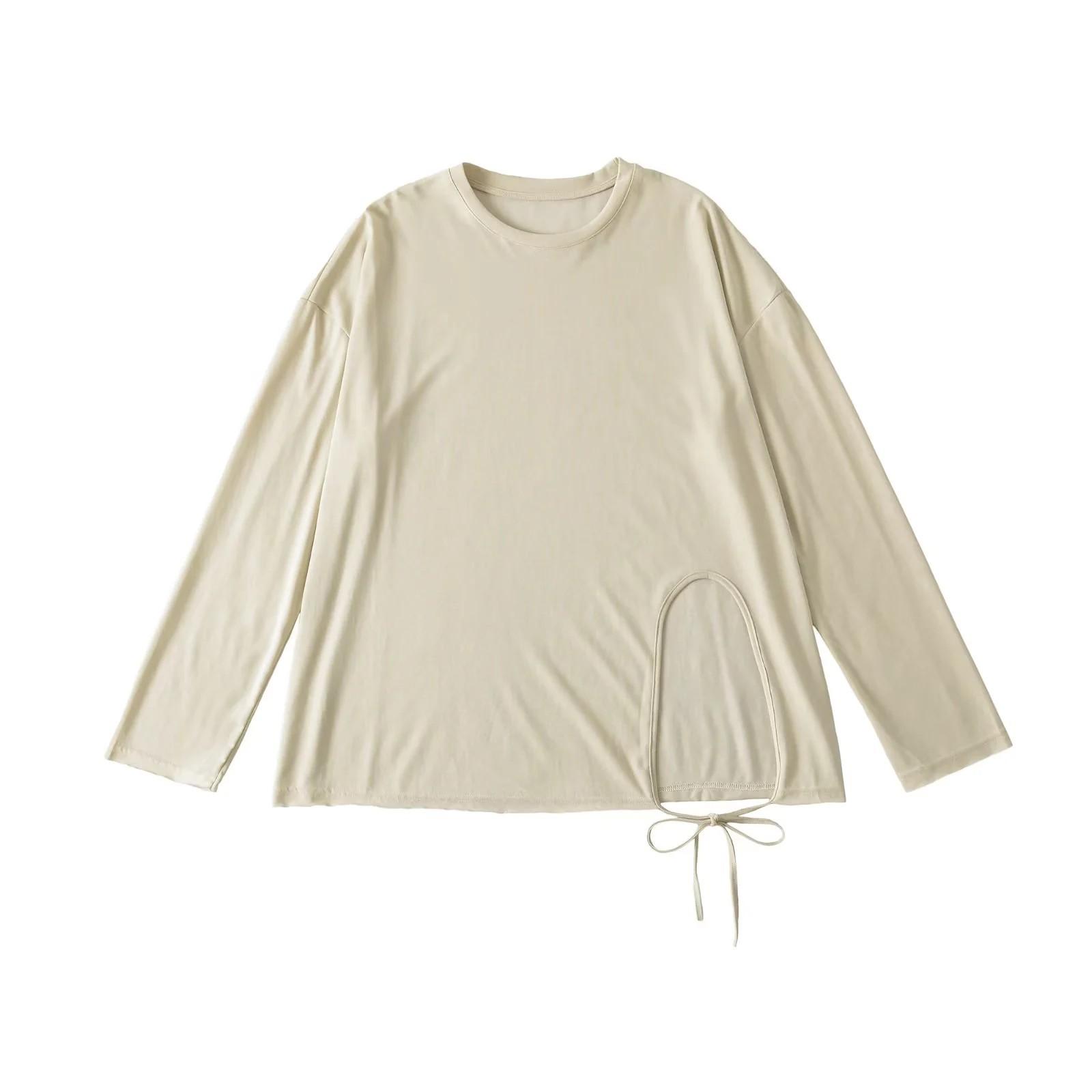 2025 Dobladillo Irregular Abertura Estilo Holgazán Cárdigan Protector Solar Top Mujer Otoño Suelto Deportivo Cuello Redondo Camiseta Manga Larga