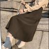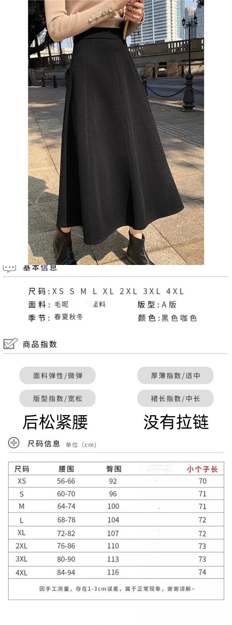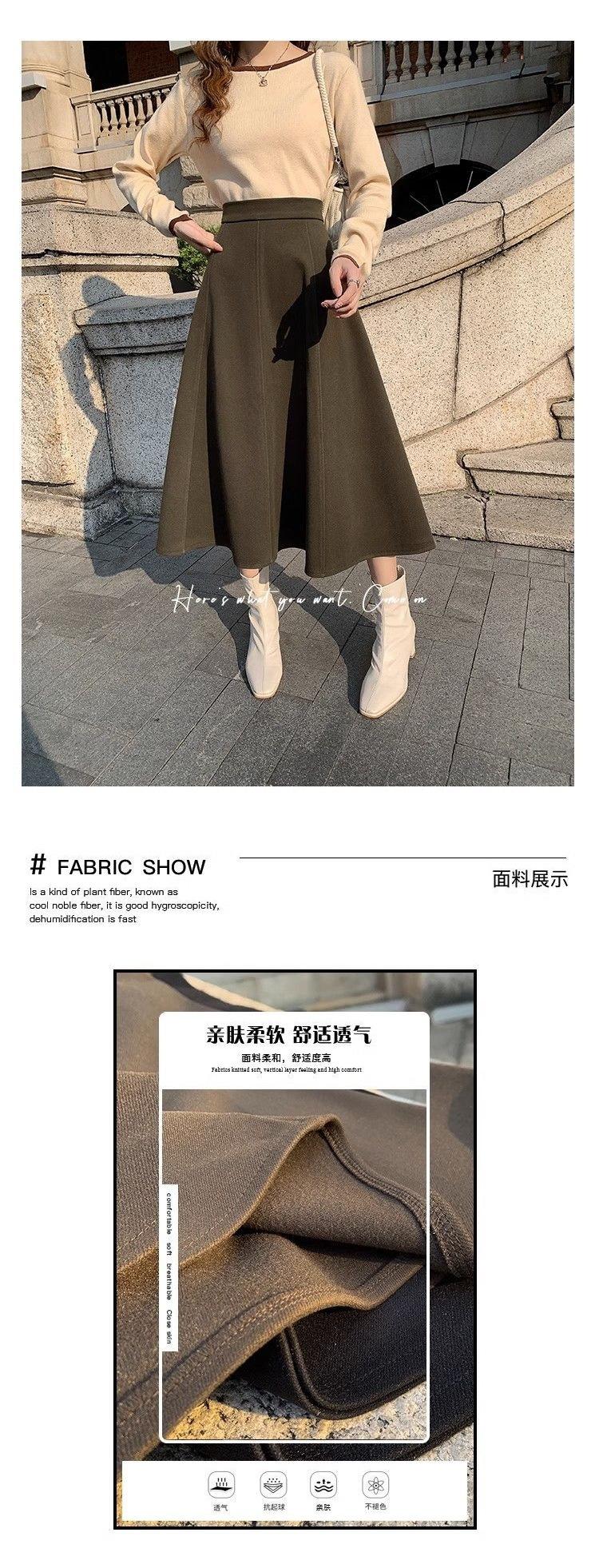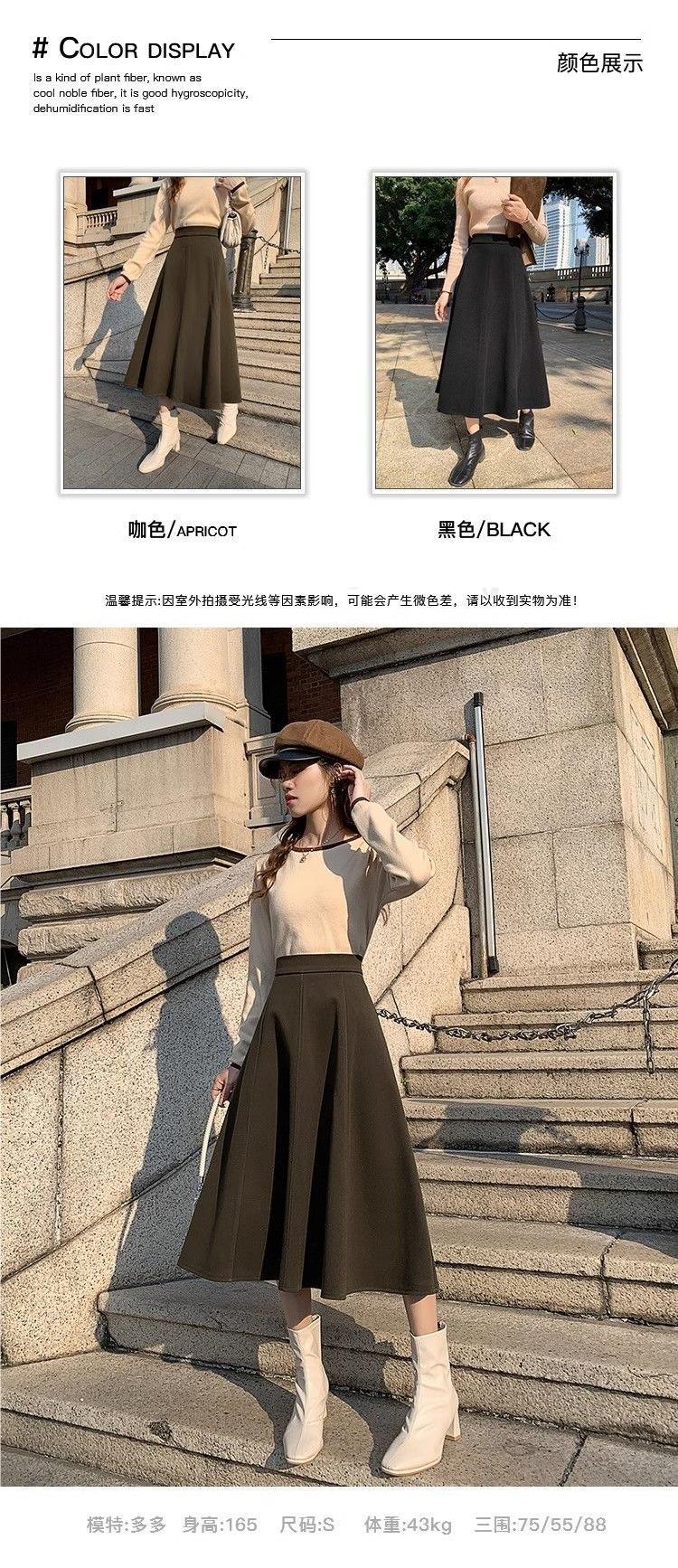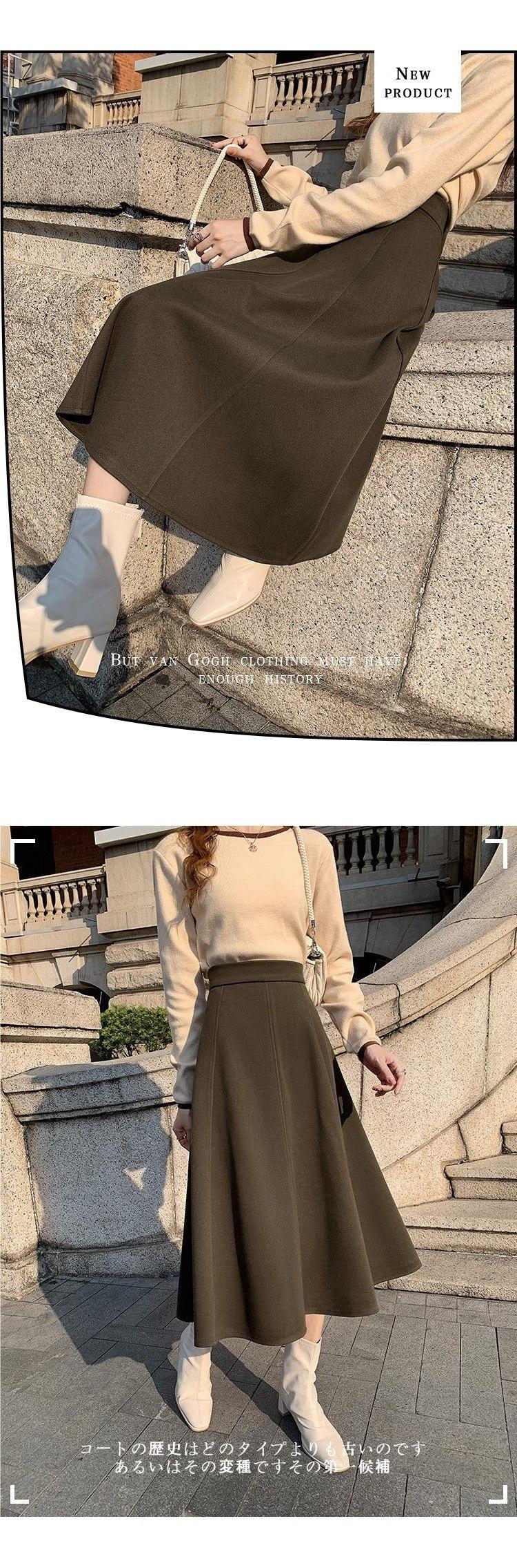 Falda Midi de Lana Caqui para Mujer Nuevo Otoño Invierno Línea A Largo Medio Cintura Alta Adelgazante Falda Paraguas para Mujer Petite