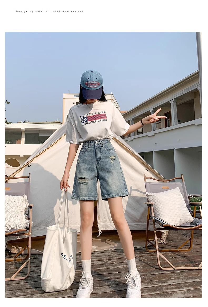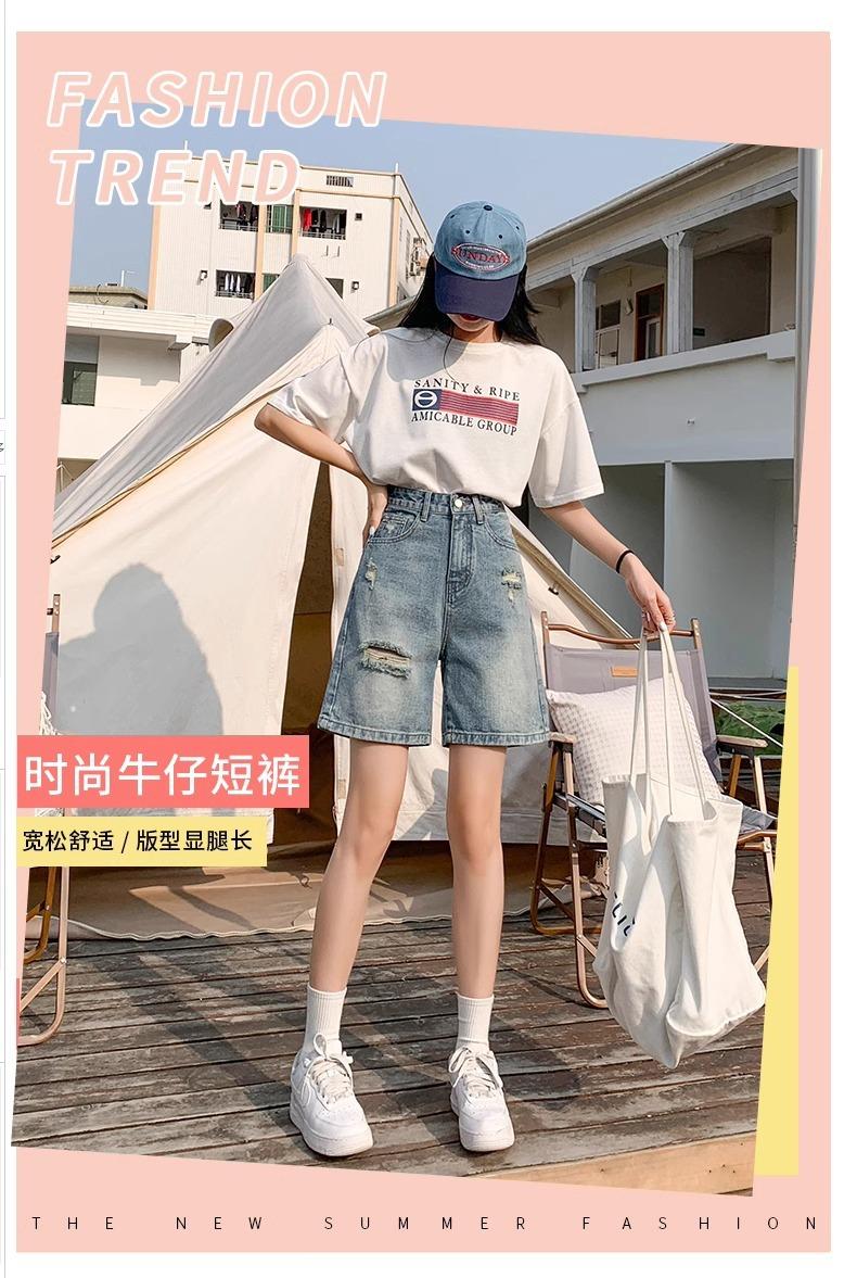 Comercio transfronterizo del Sudeste Asiático al por mayor para mujer, shorts de mezclilla desgastados para mujer, sonido de sacudida, Xiaohongshu una generación de suministro