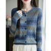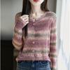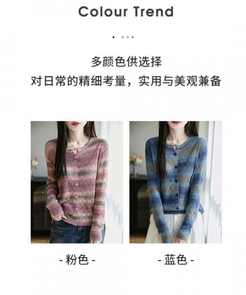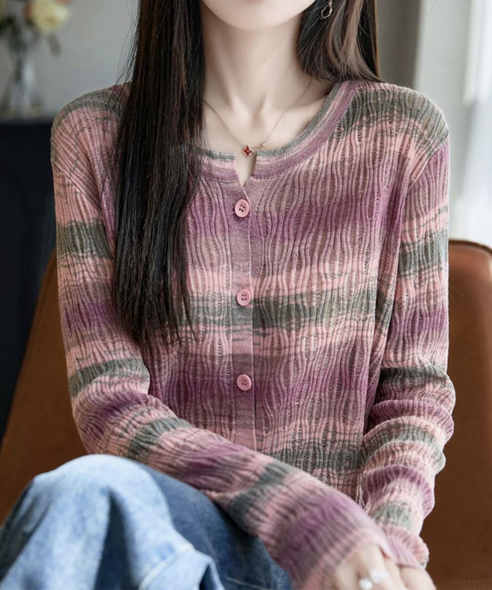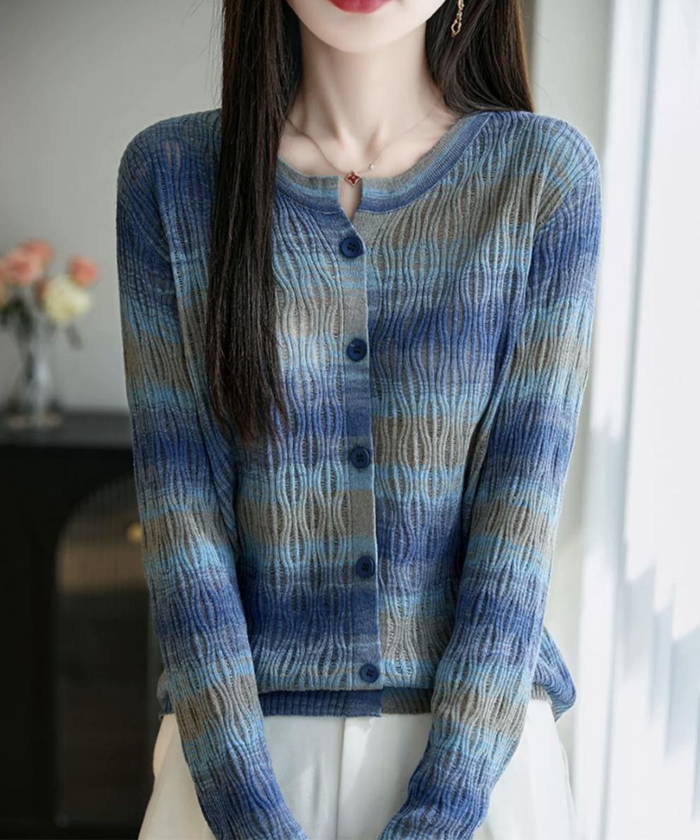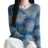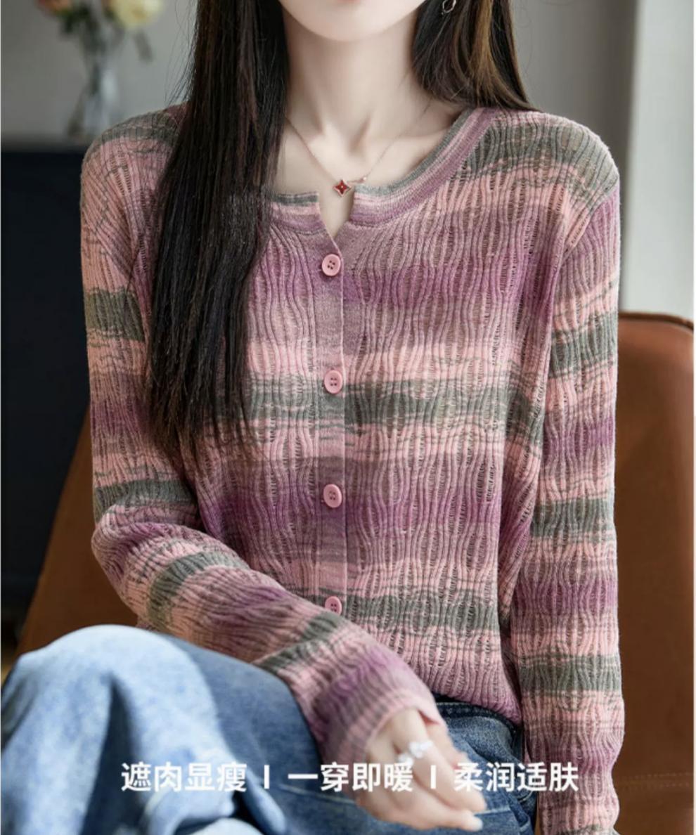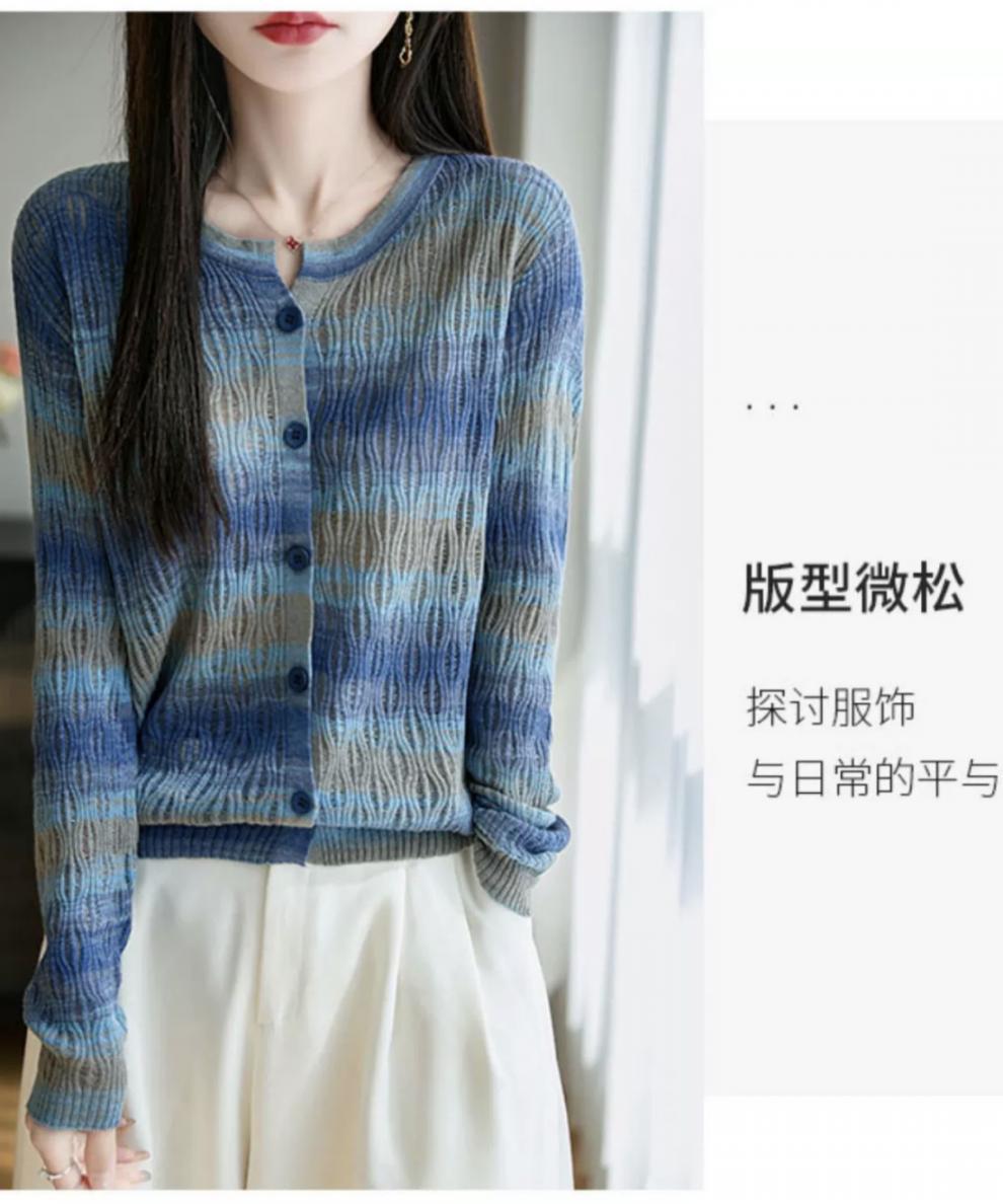 Cárdigan de Punto de Alta Gama Calado con Bloques de Color y Rayas Arcoíris para Mujer, Ropa Exterior Ligera, Ropa con Protección Solar, Diseño con Sentido de la Moda, Top Pequeño a la Moda