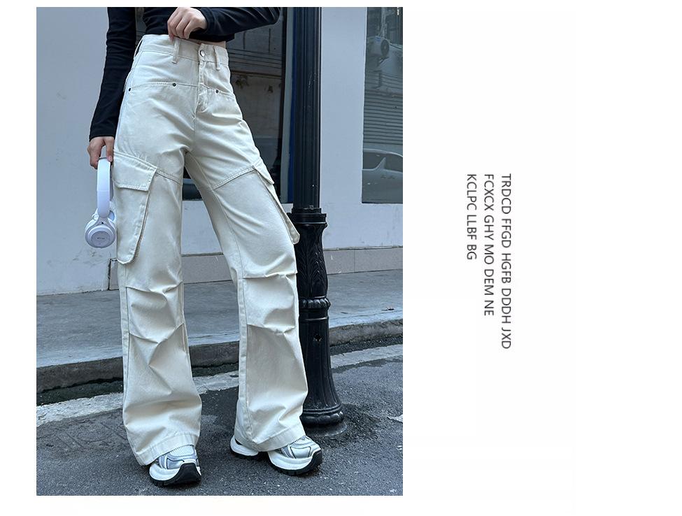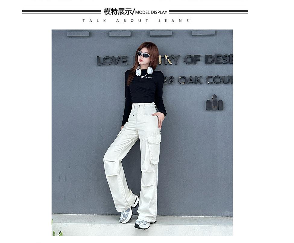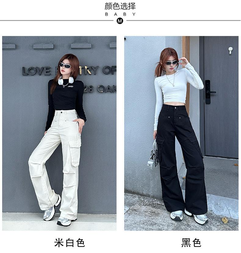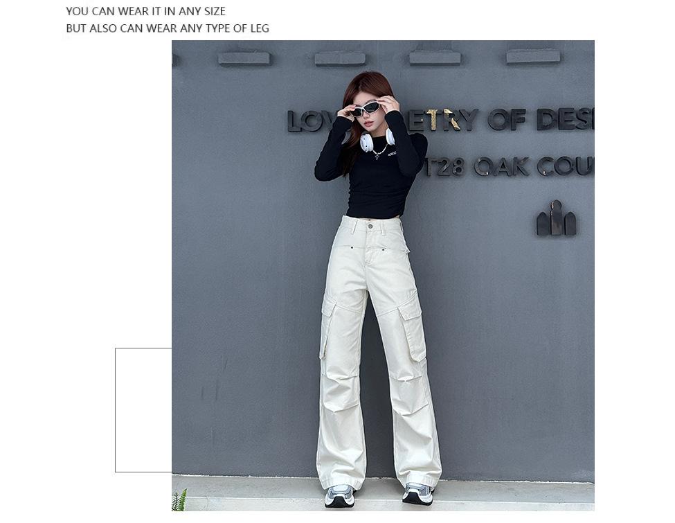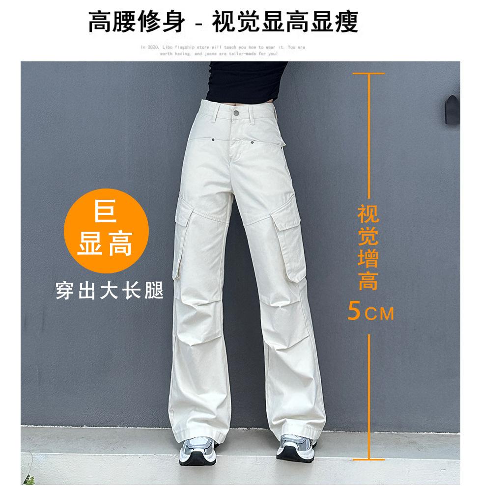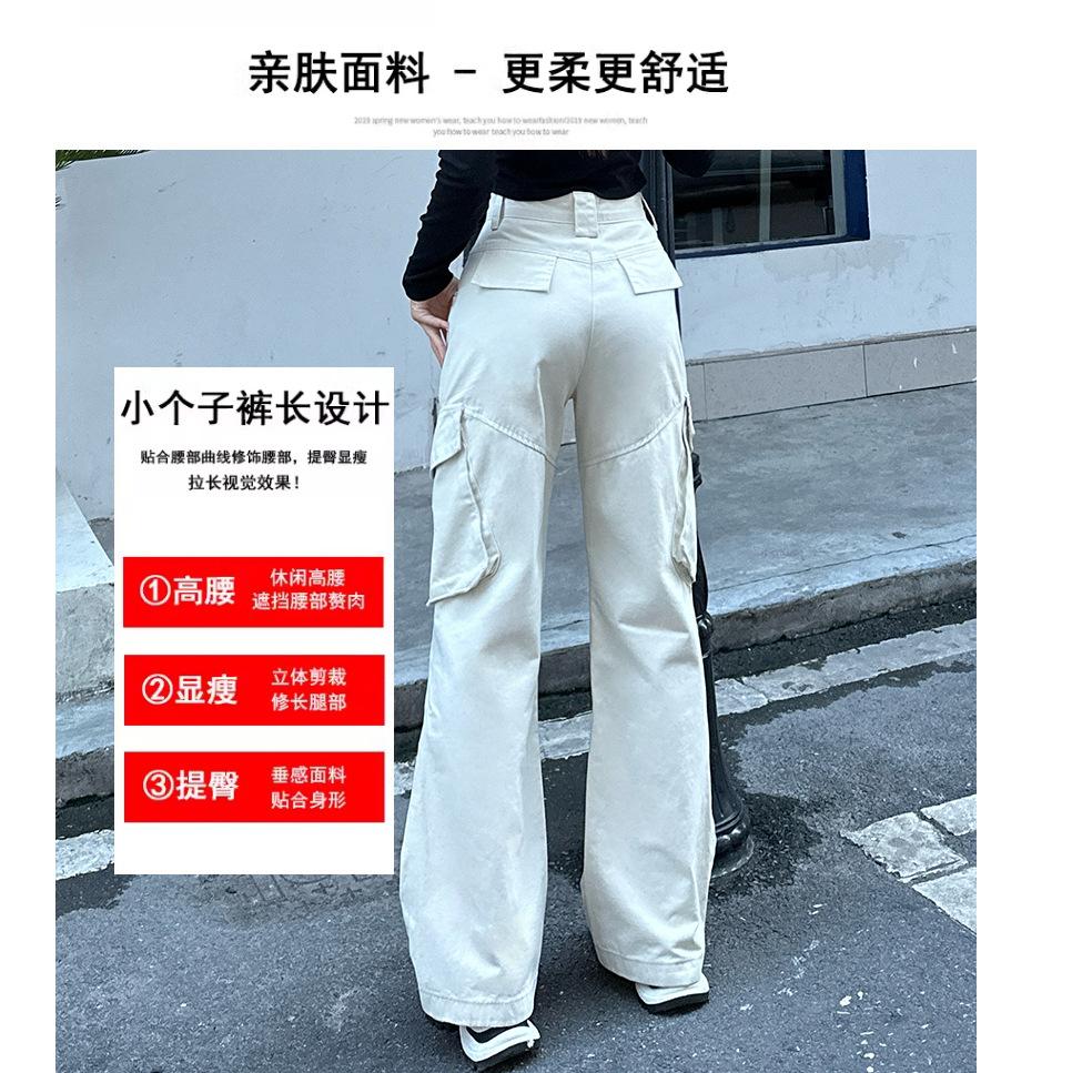 Pantalones Cargo Petite de 150cm para Primavera y Otoño, Multibolsillos, Adelgazantes, Blancos Rotos, de Cintura Alta, Rectos, Holgados, Estilo Americano, Casuales para Mujer