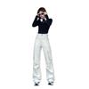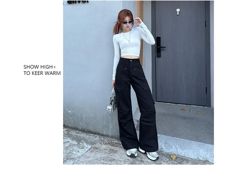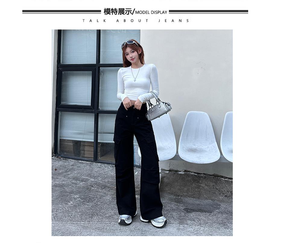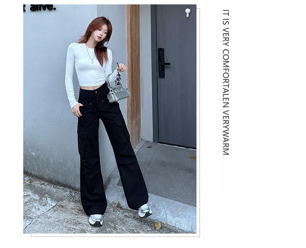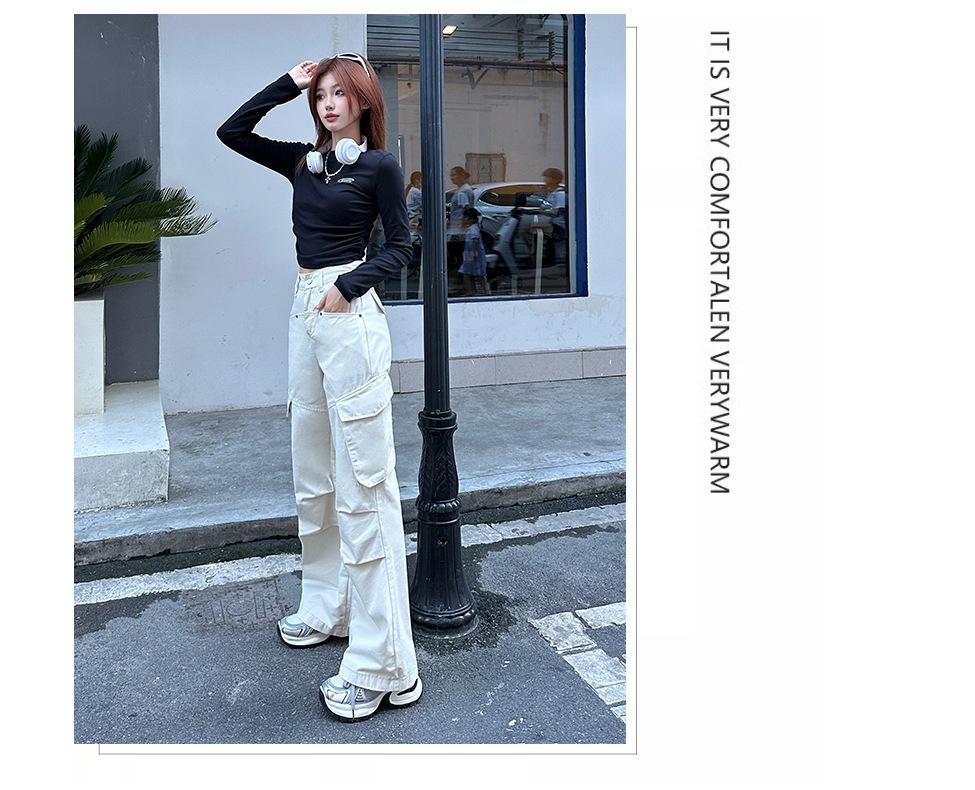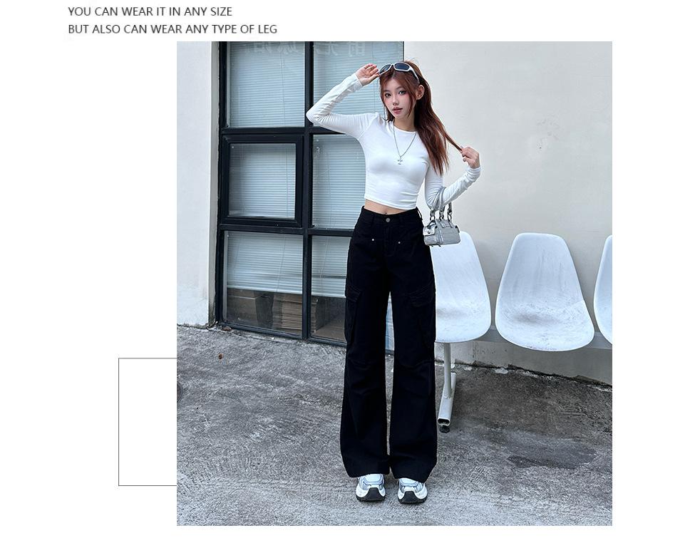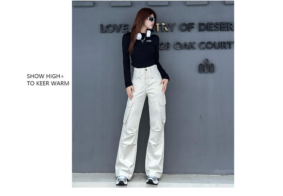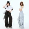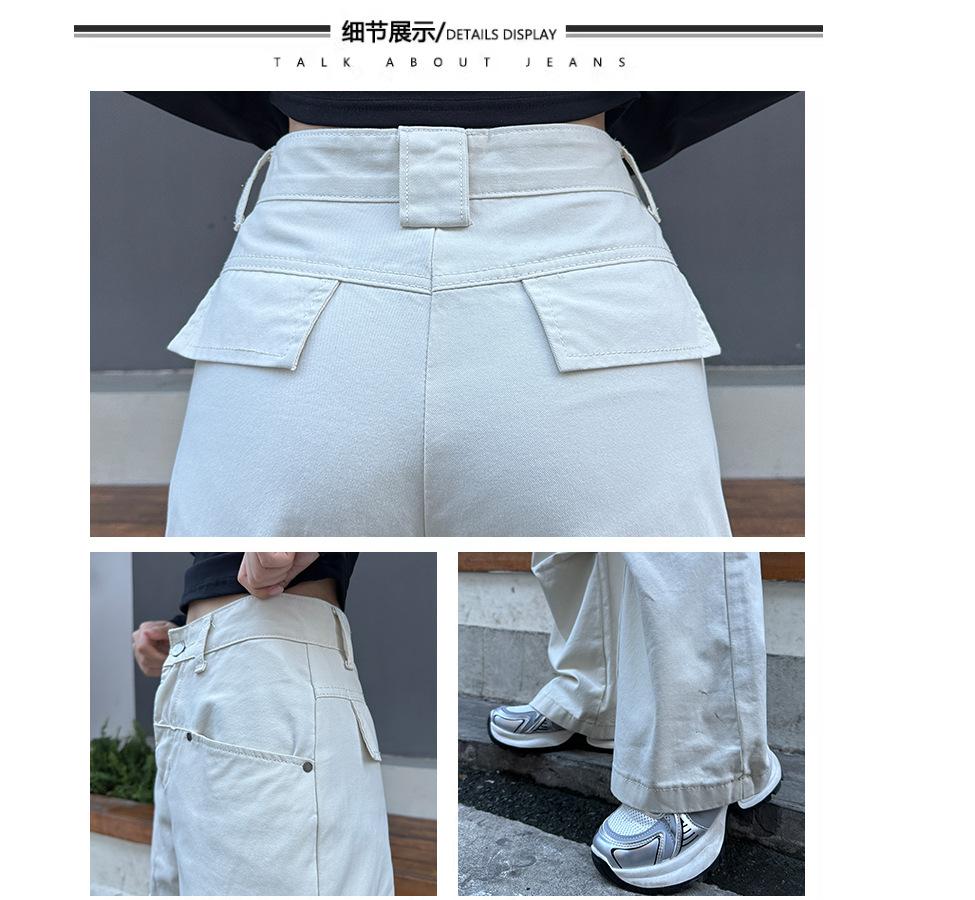 Pantalones Cargo Petite de 150cm para Primavera y Otoño, Multibolsillos, Adelgazantes, Blancos Rotos, de Cintura Alta, Rectos, Holgados, Estilo Americano, Casuales para Mujer
