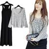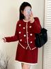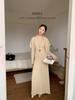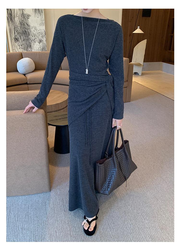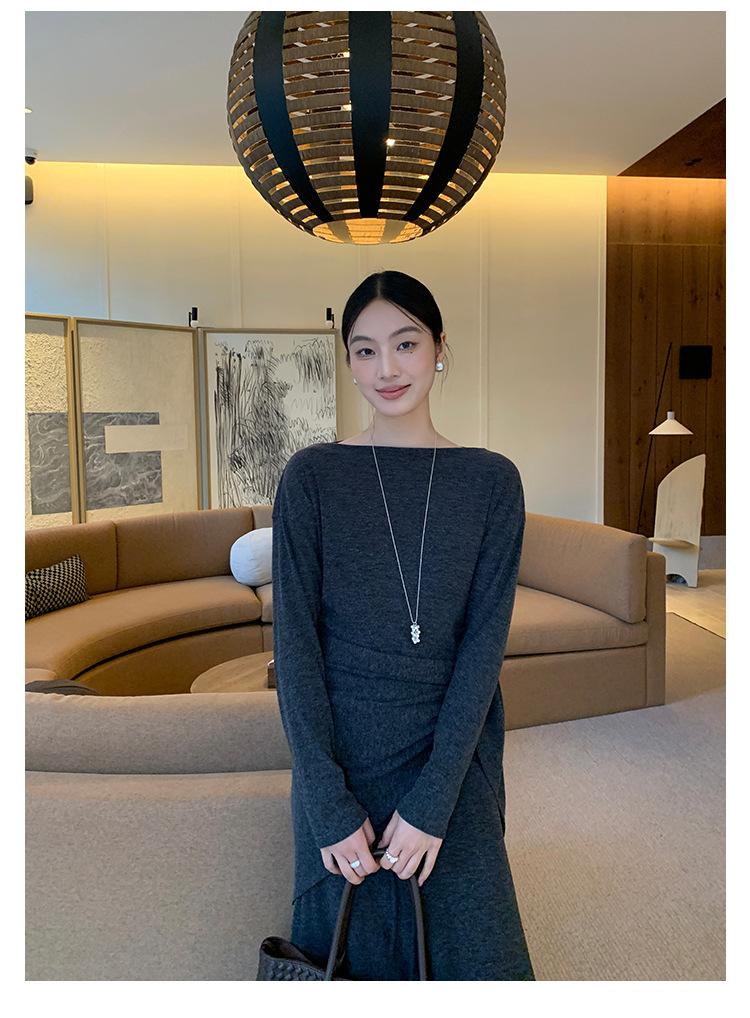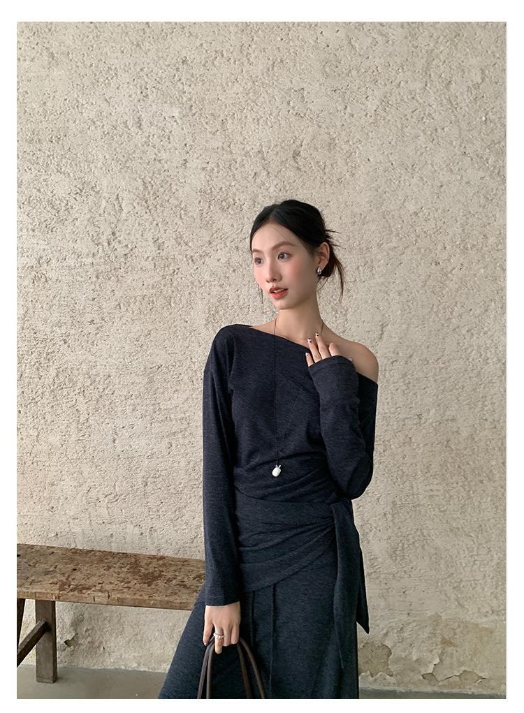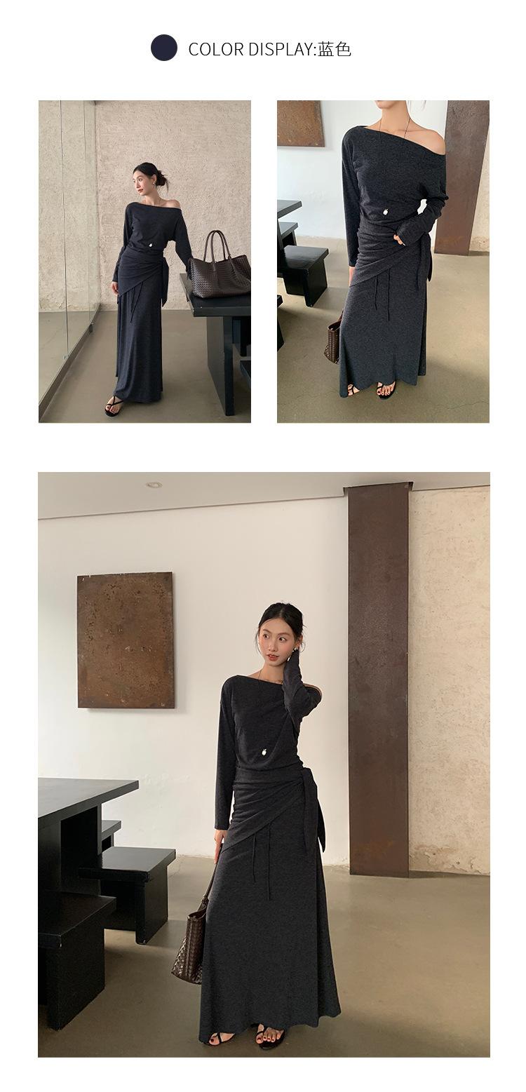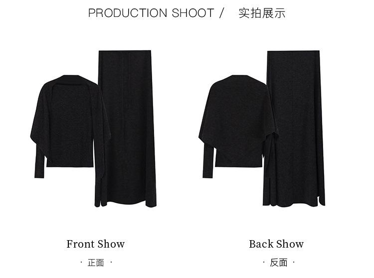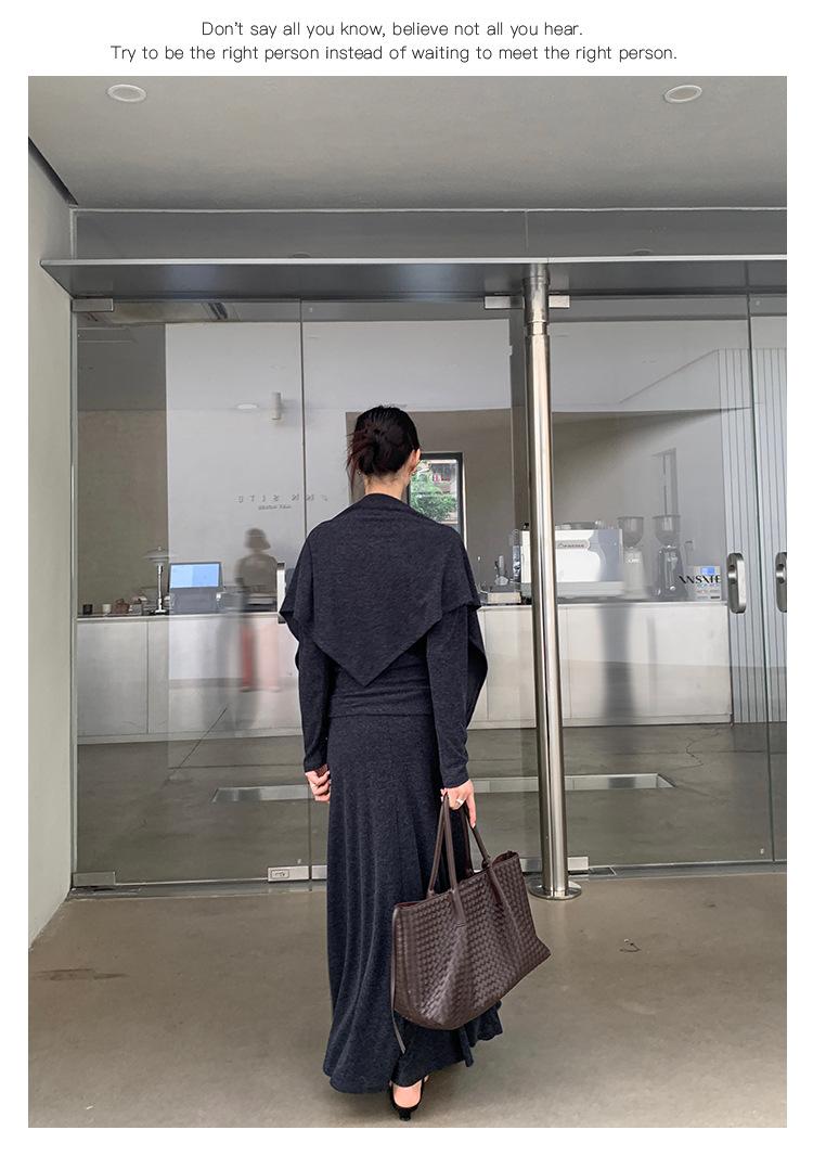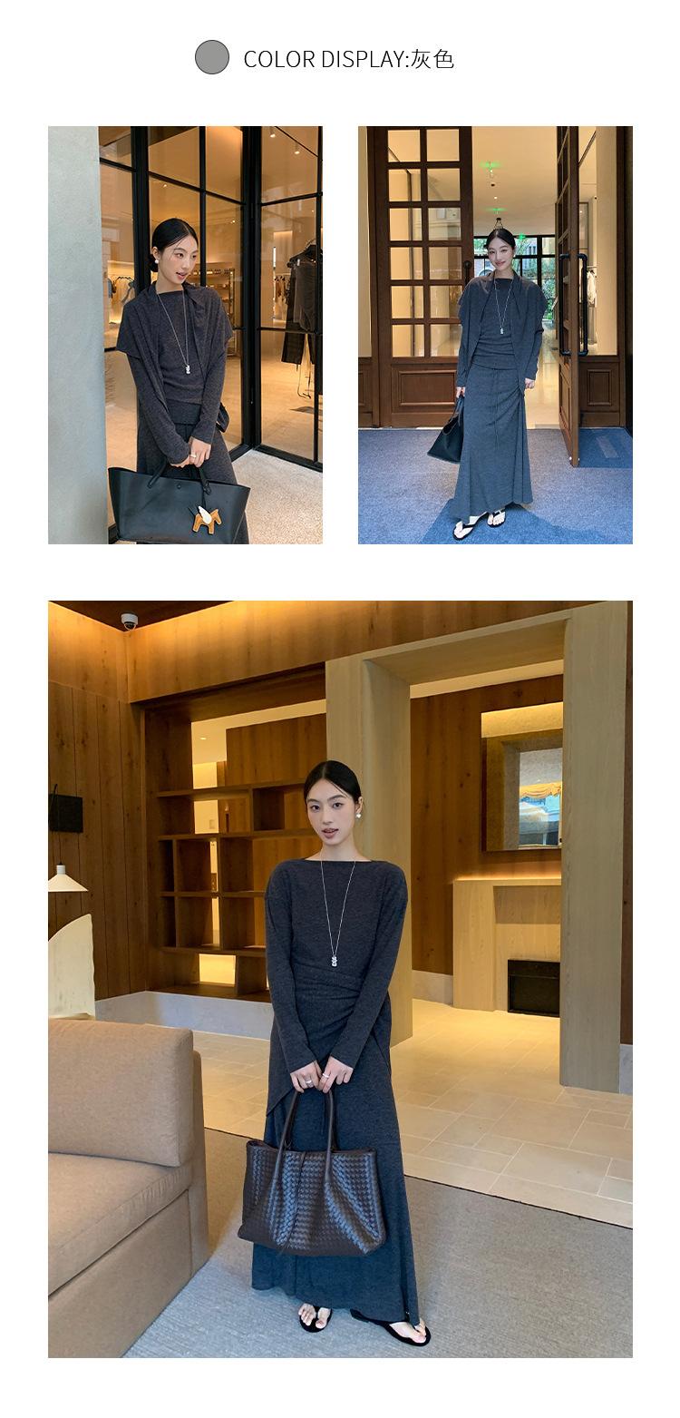 Aixi Li 2025 Otoño Chal Abrigo + Prenda Interior Tejida de un Hombro + Falda Midi Adelgazante Conjunto de Tres Piezas 15339