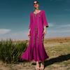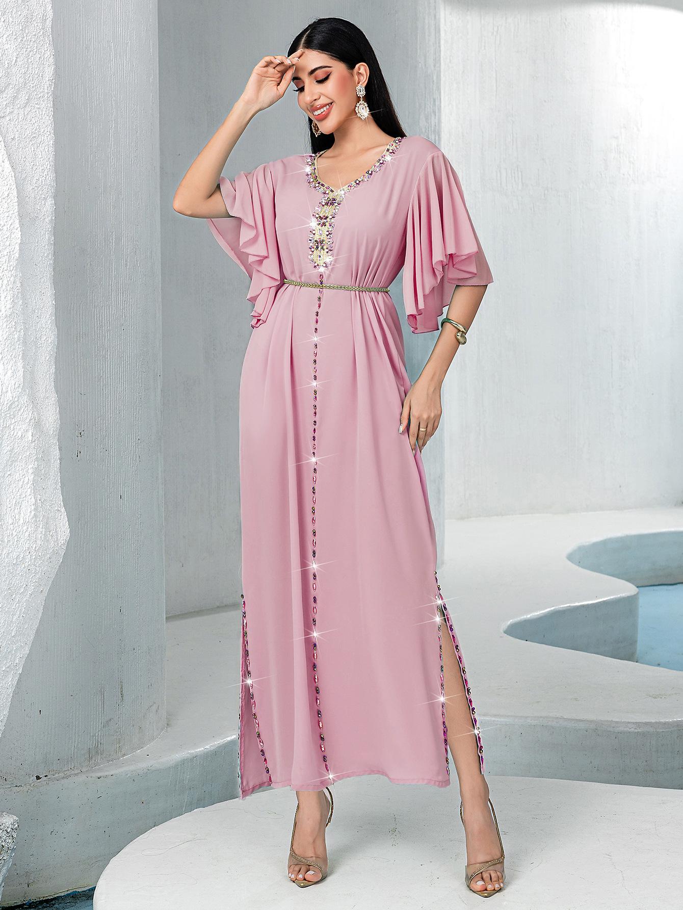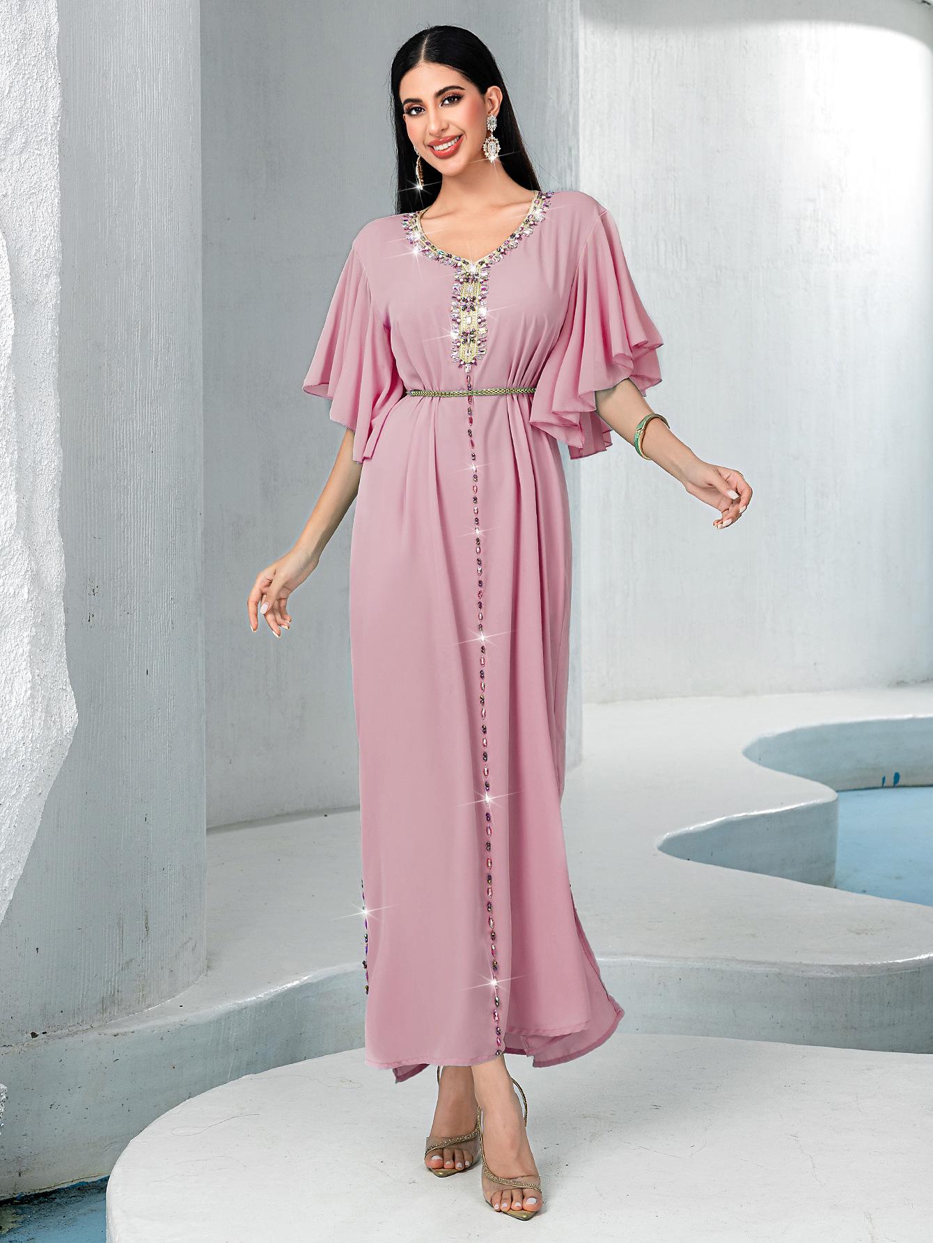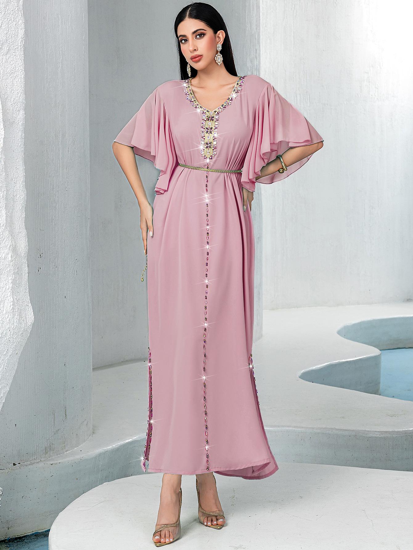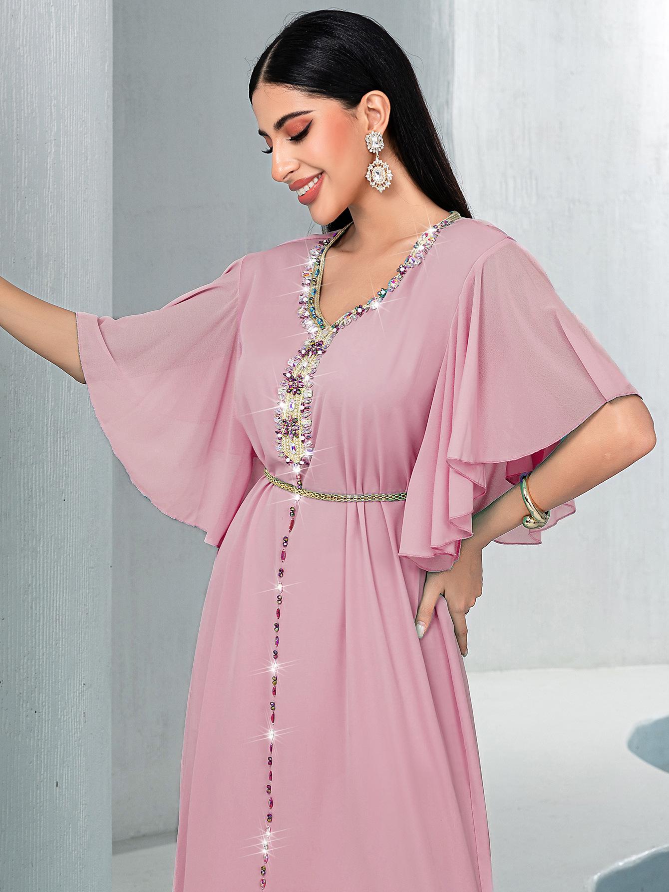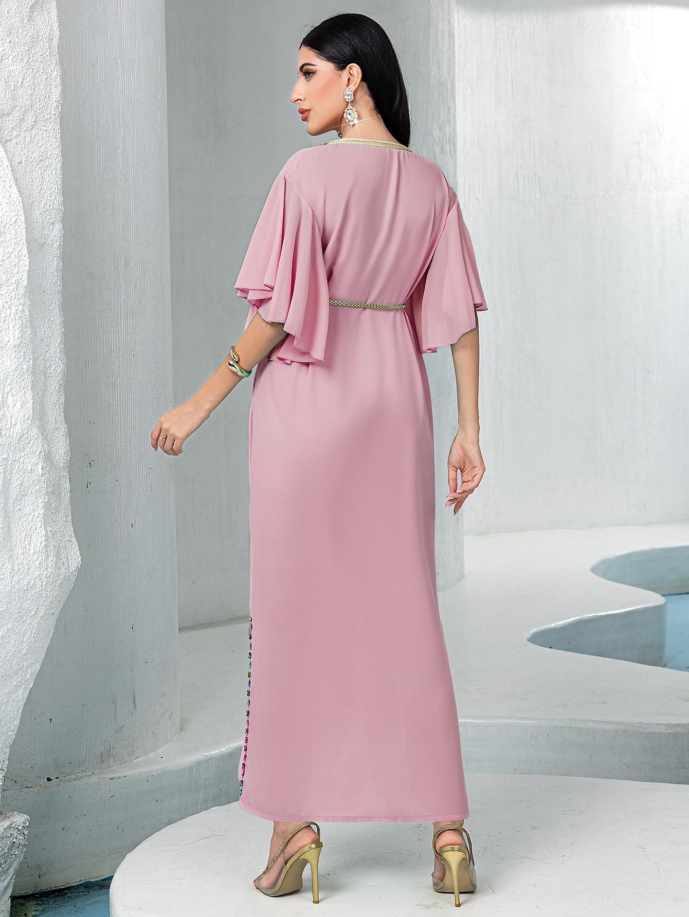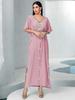 BA3072 Vestido Rosa Flor de Cerezo Manga Campana Cuello en V