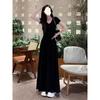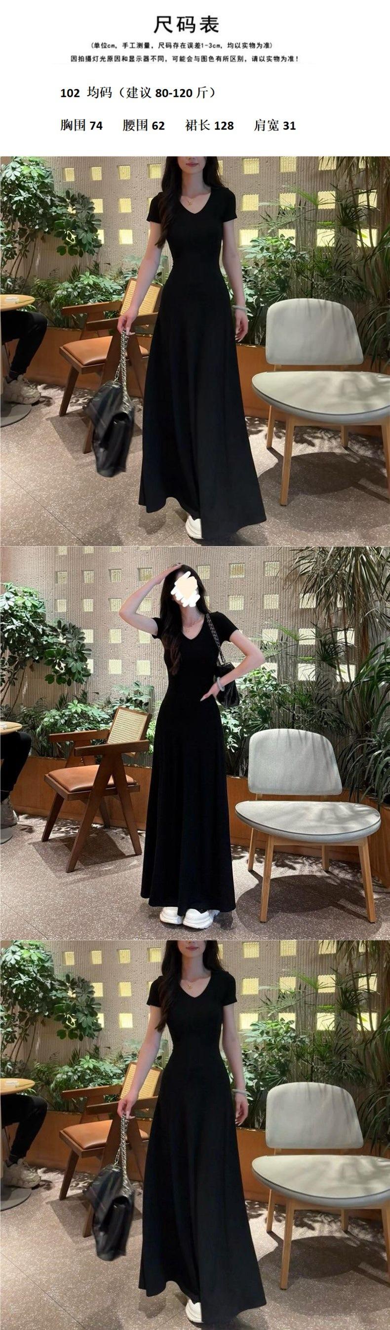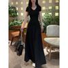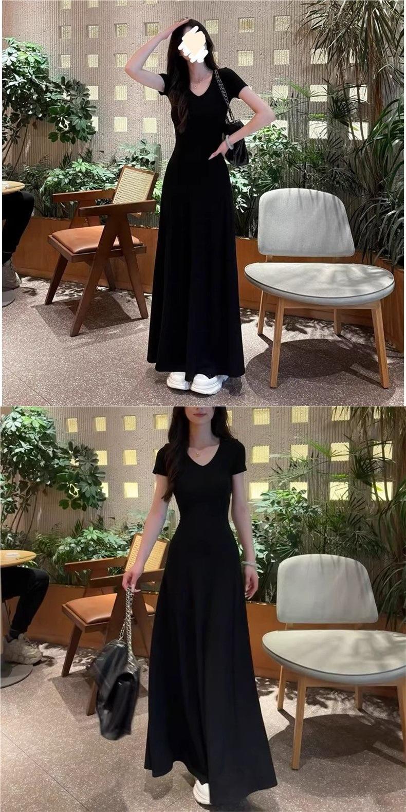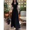 Vestido Negro de Alta Gama Estilo Hepburn Francés 2025 con Cuello en V de Manga Corta para Mujer Verano Temperamento Adelgazante Vestido Largo