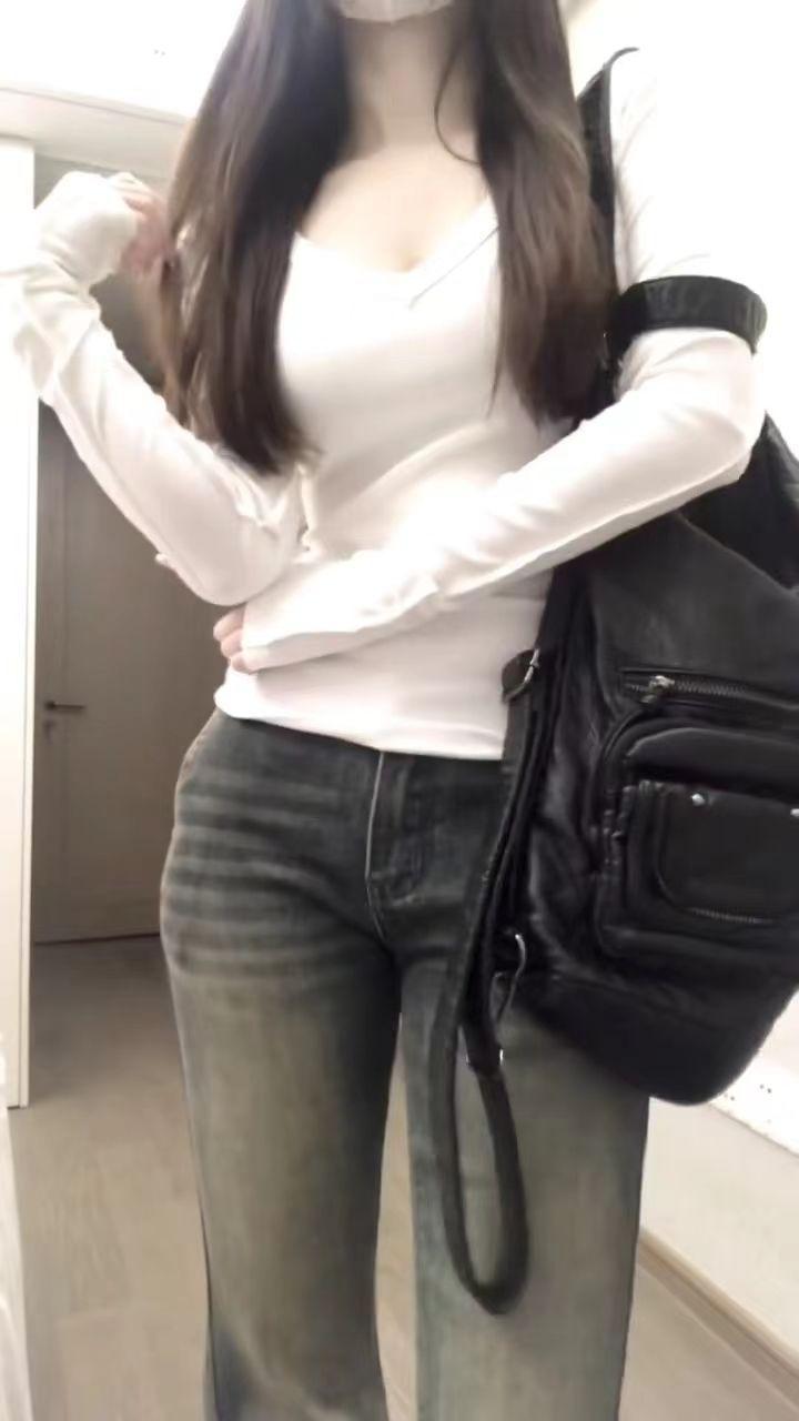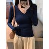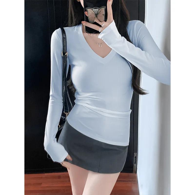 2025 camiseta blanca de manga larga con cuello recto para mujer, estilo coreano, otoño, nueva, entallada, adelgazante, capa base para chica hot