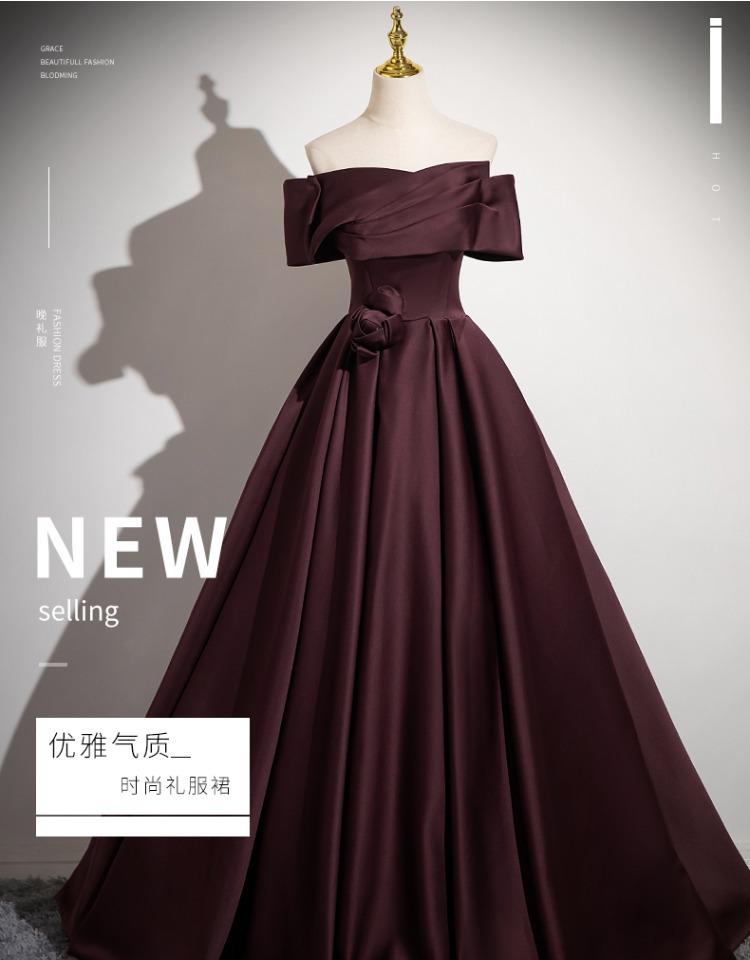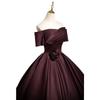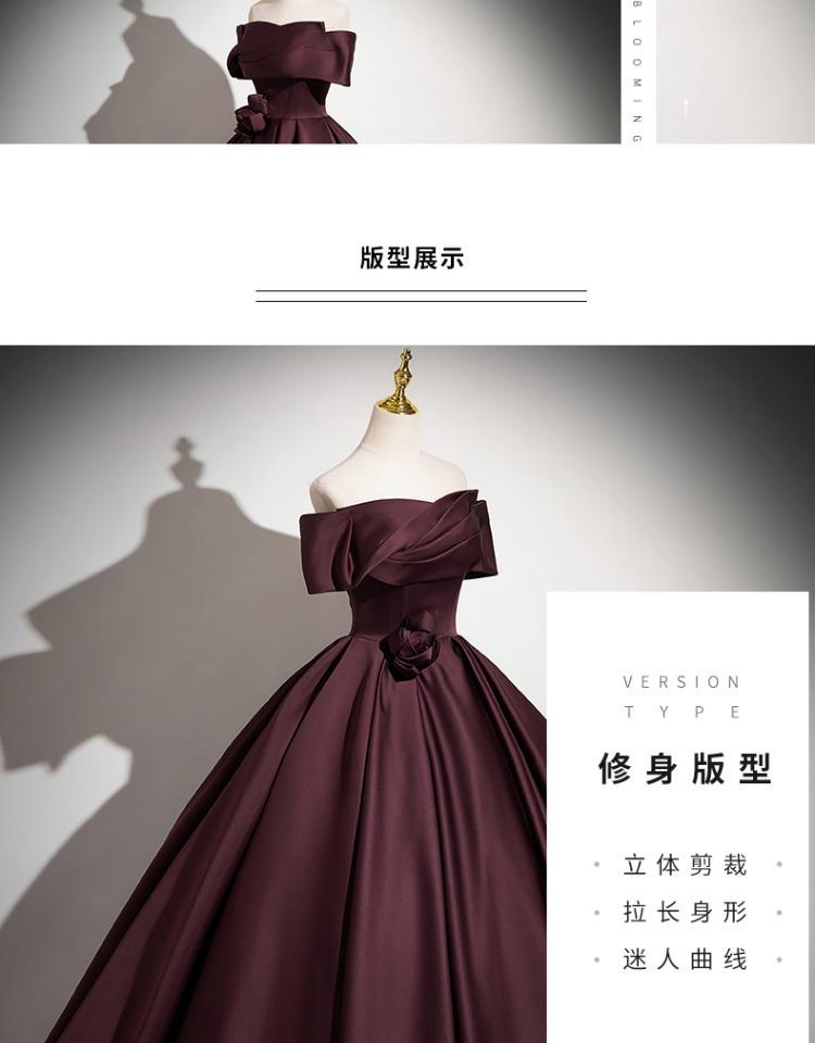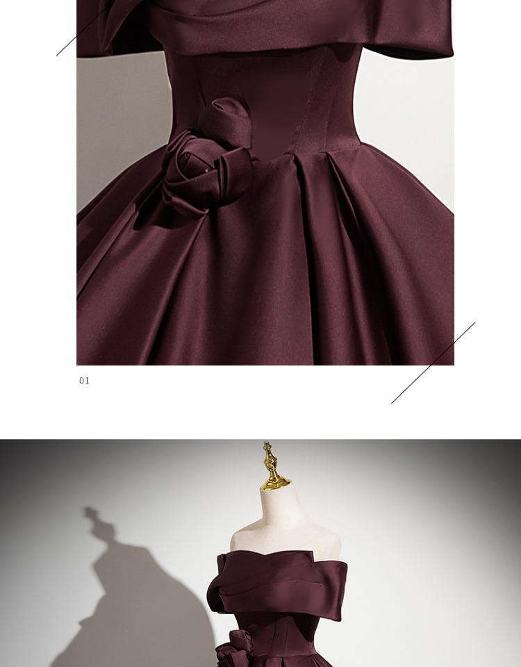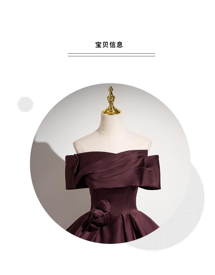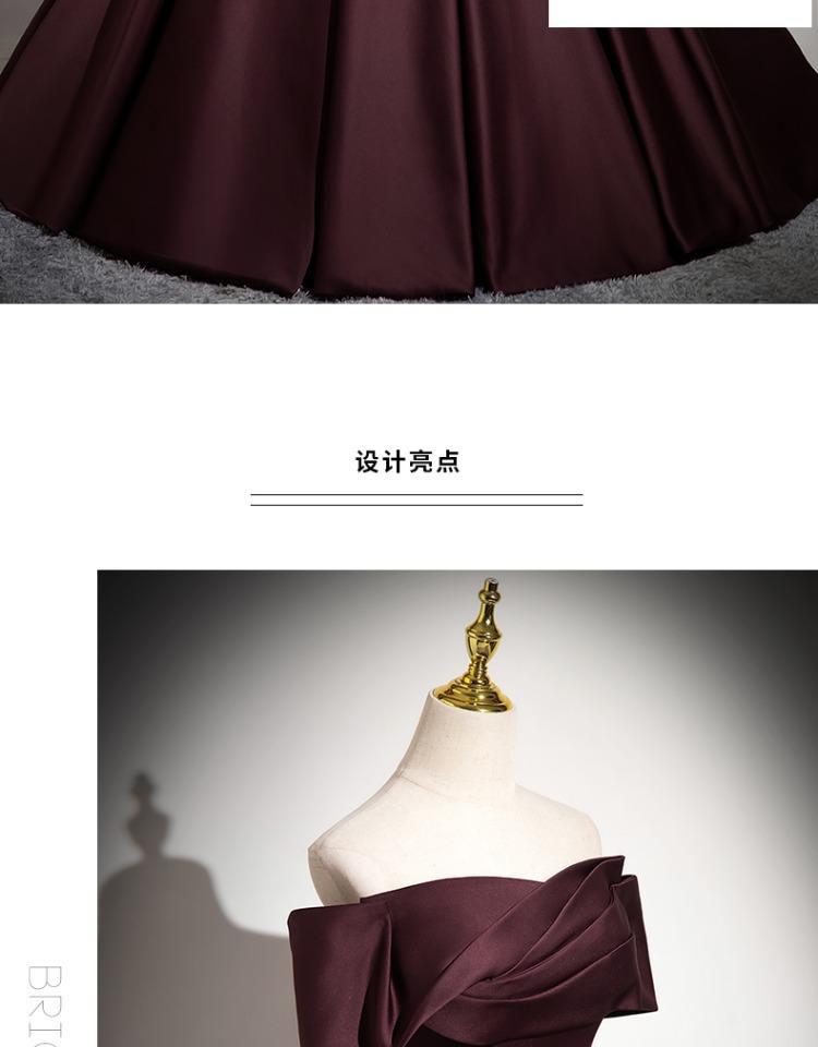Vestido de Noche Borgoña Oscuro para Mujer, Vestido de Brindis de Alta Gama, Vestido de Novia de Satén Nupcial, Vestido de Examen de Arte Vocal de un Hombro