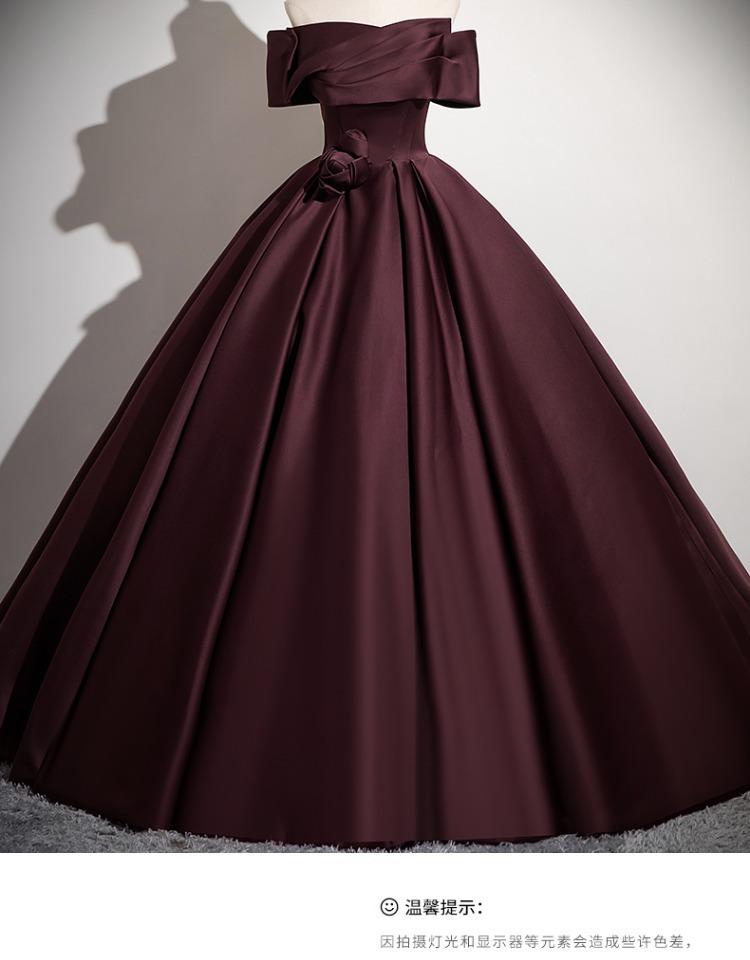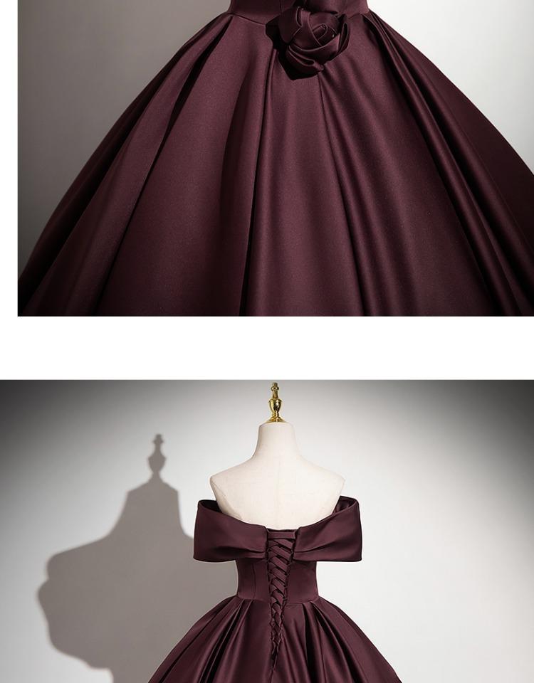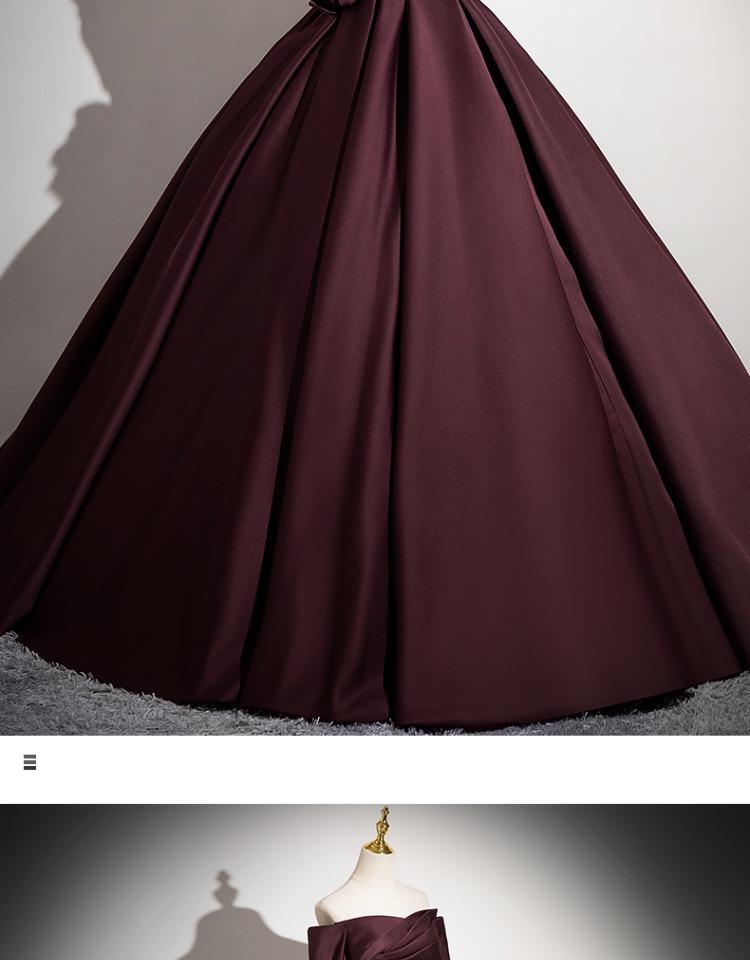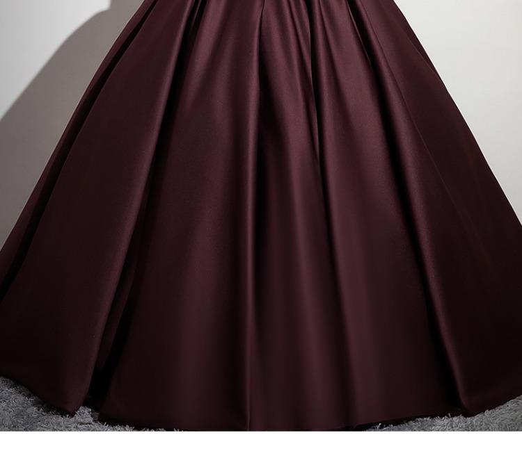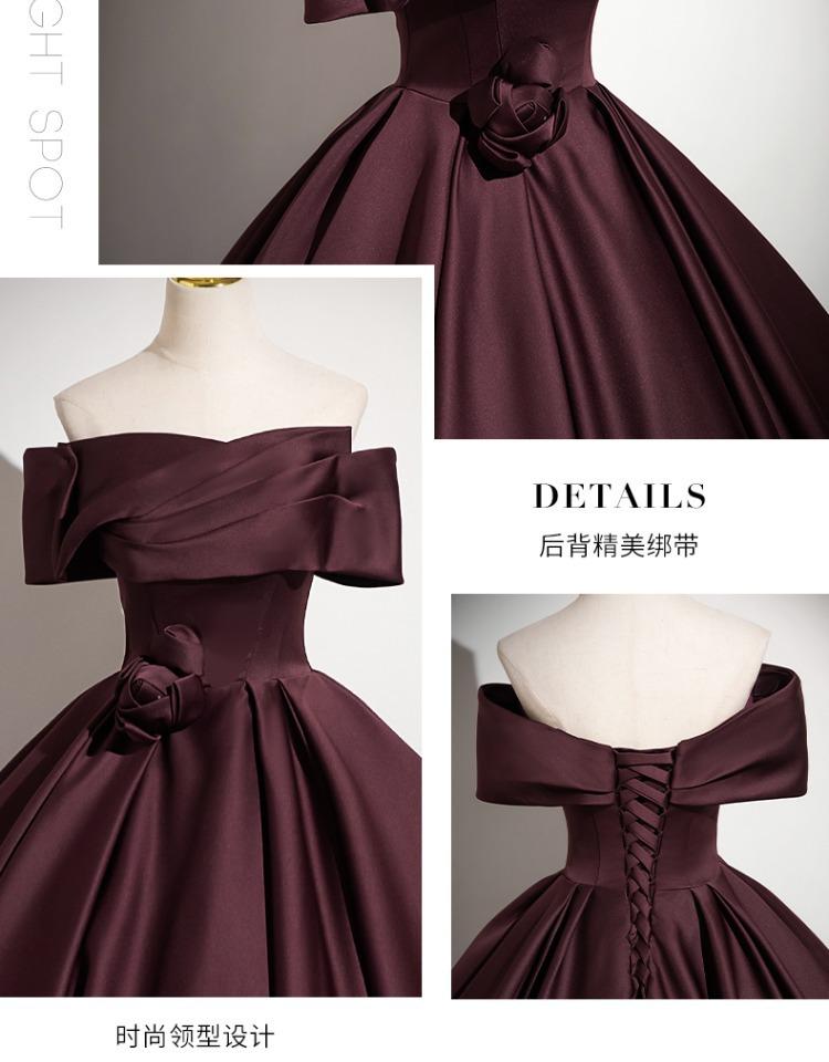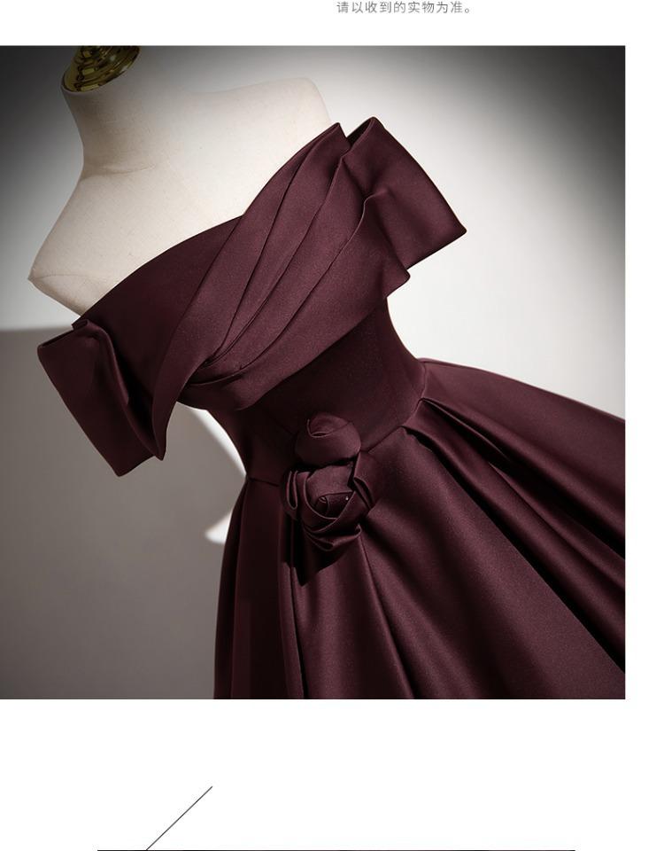 Vestido de Noche Borgoña Oscuro para Mujer, Vestido de Brindis de Alta Gama, Vestido de Novia de Satén Nupcial, Vestido de Examen de Arte Vocal de un Hombro