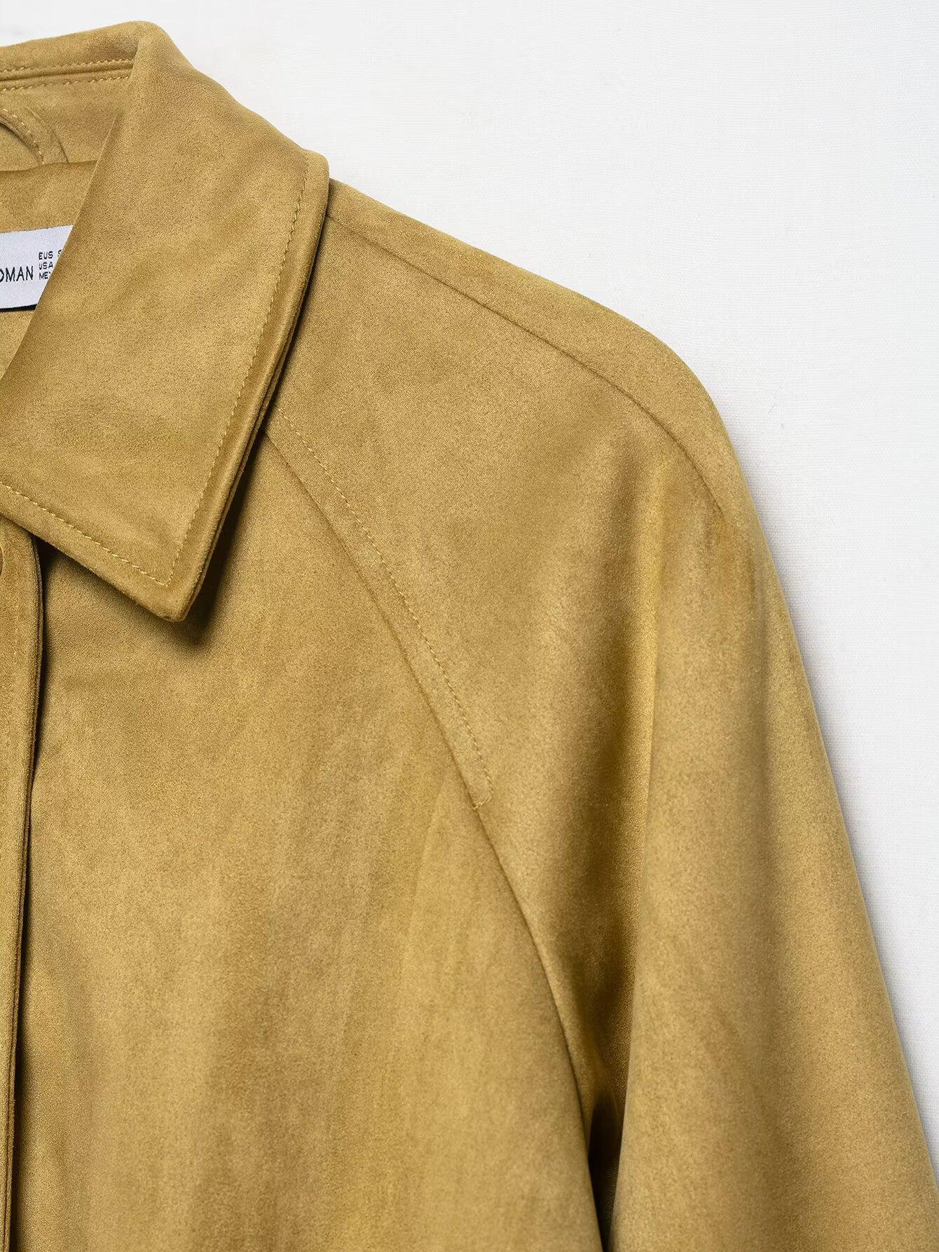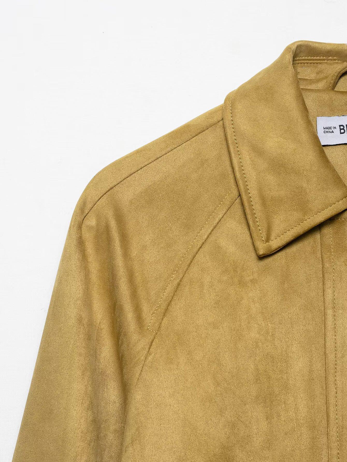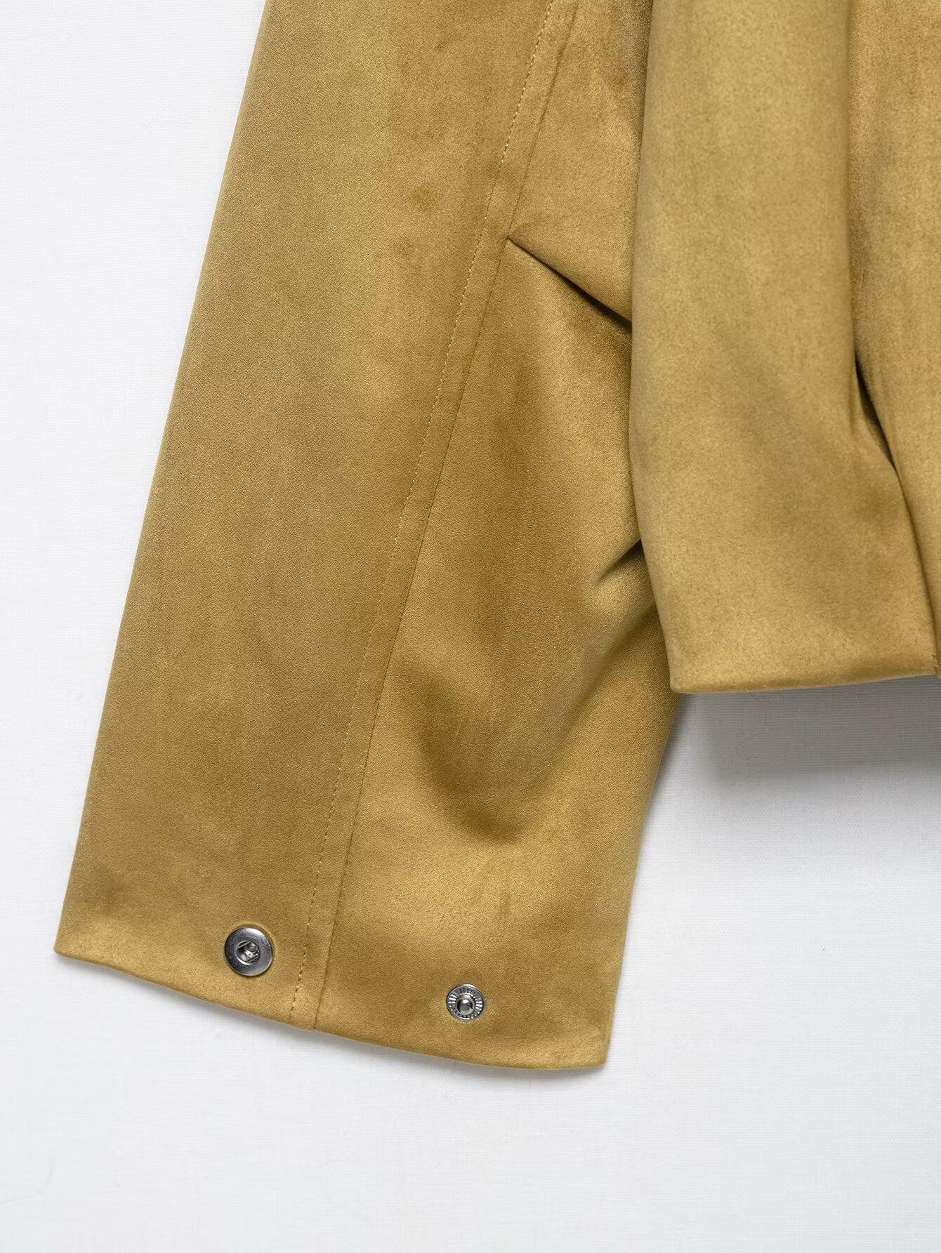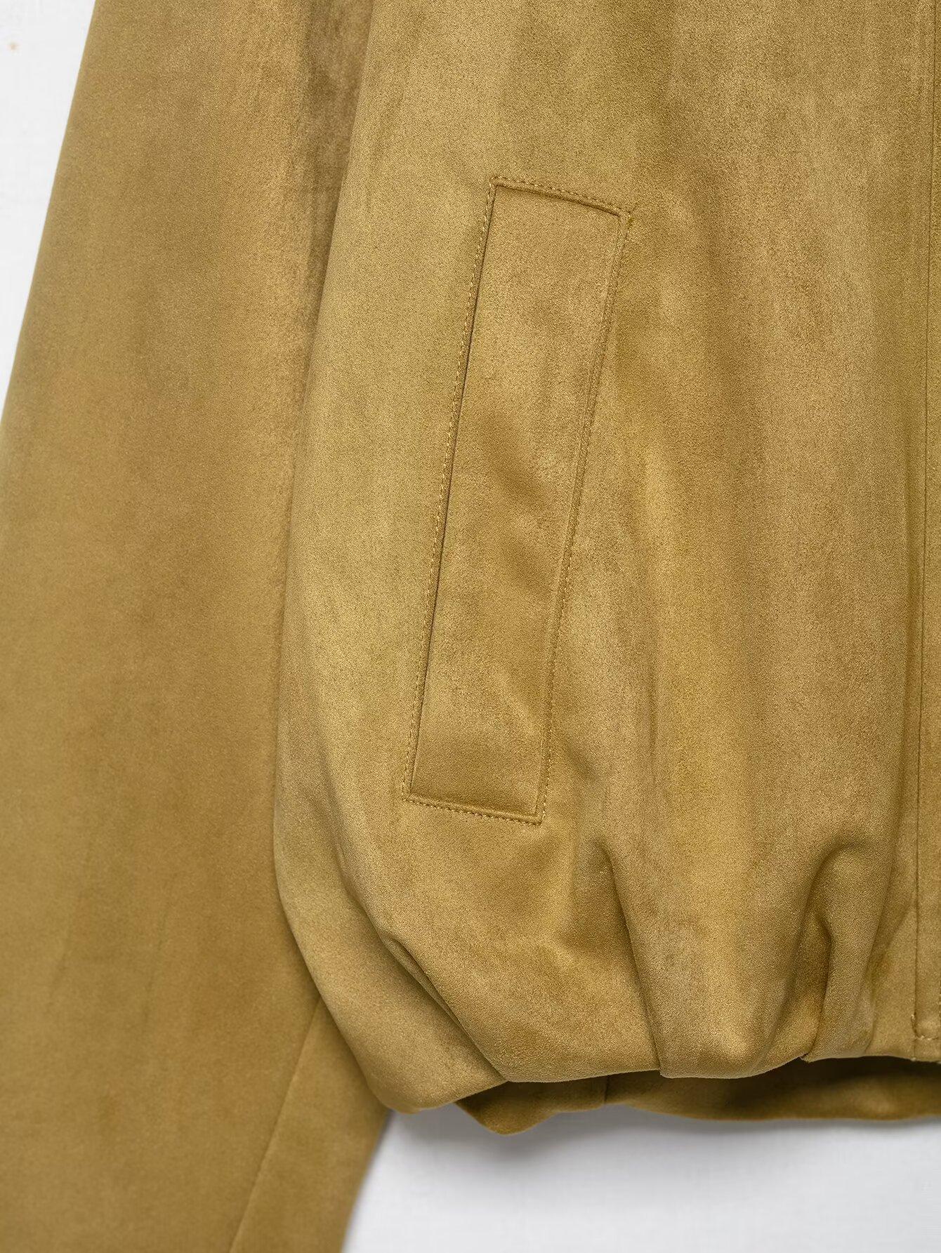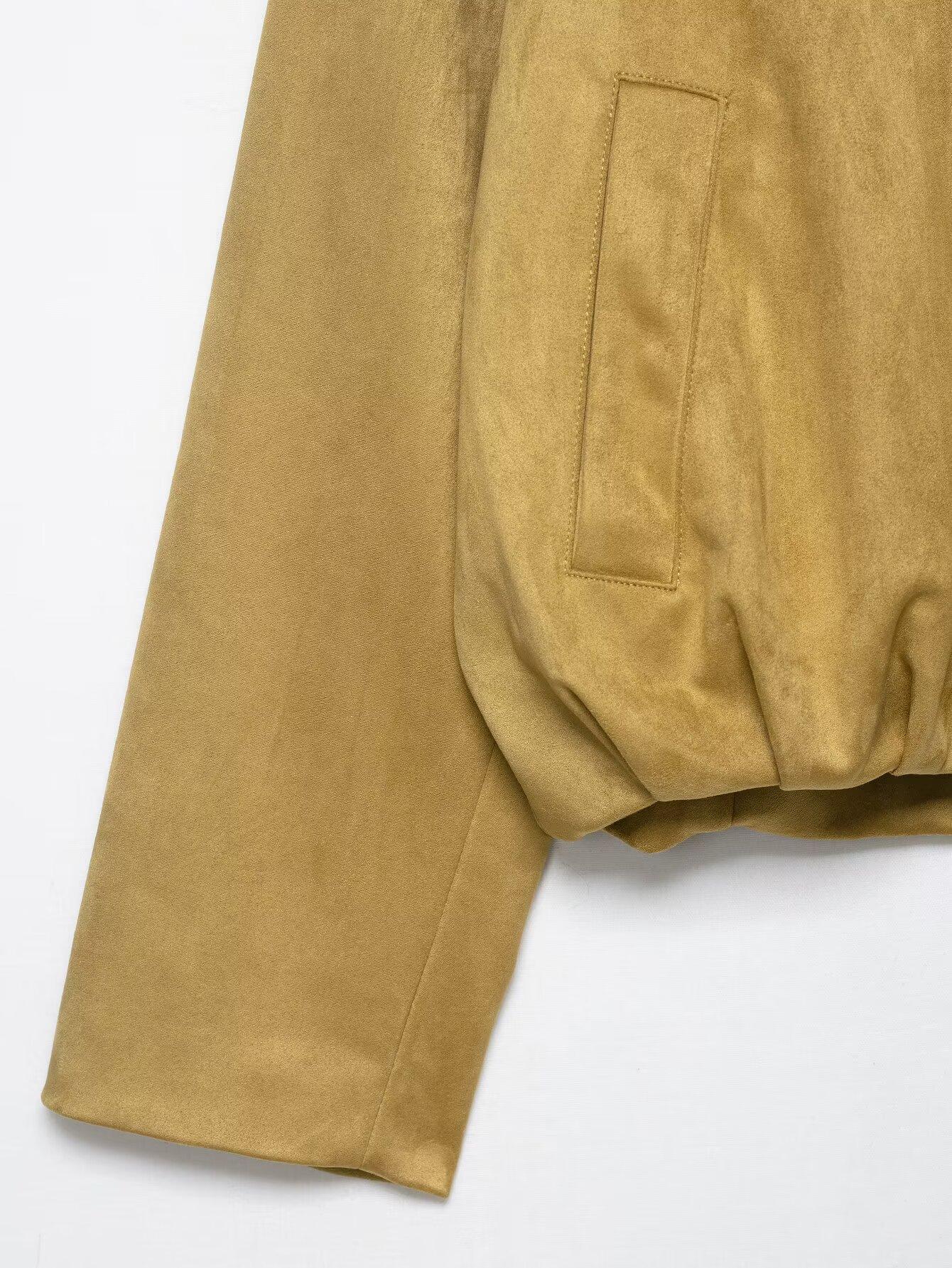 Chaqueta bomber de efecto ante versátil de moda casual adelgazante nueva de otoño 2025 transfronteriza europea y americana para mujer