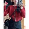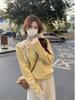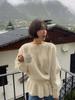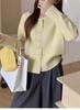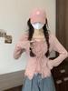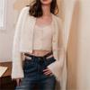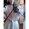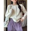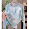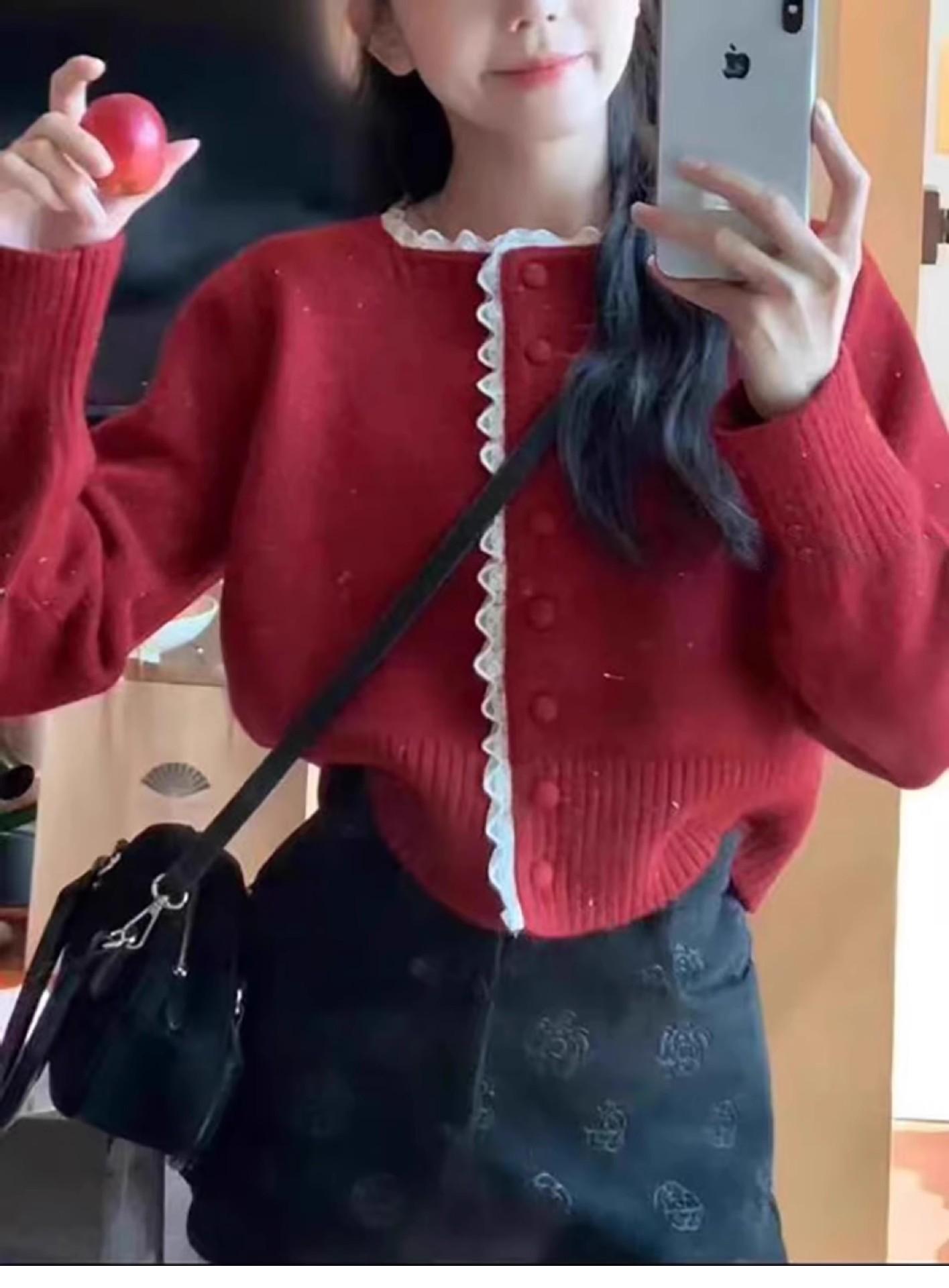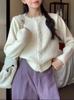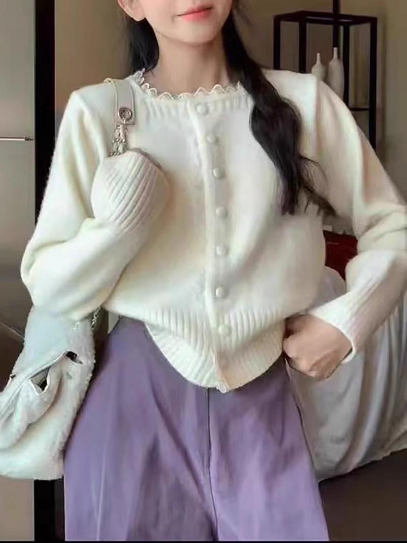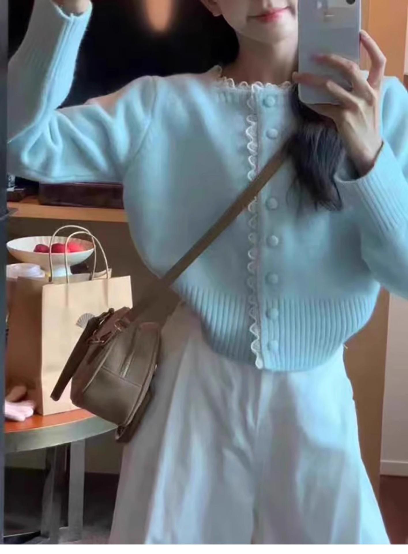 Suéter Cárdigan de Punto Azul Leche con Encaje Dulce y Delicado para Mujer Otoño/Invierno Nueva Moda Top de Punto