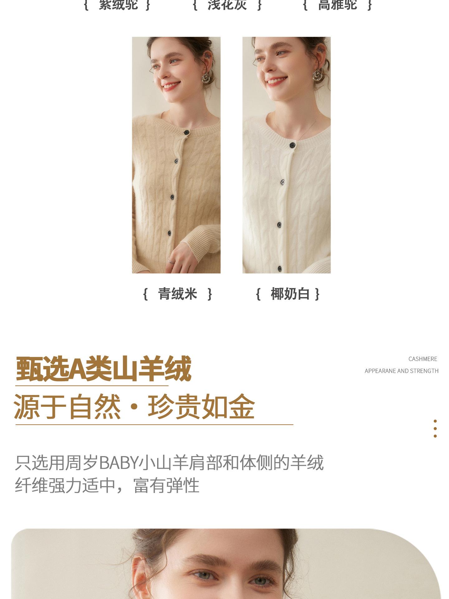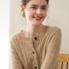 Cárdigan de cachemira de cuello redondo suave y glutinoso para mujer, suéter corto de punto a la moda, punto trenzado con patrón de torsadas, prenda exterior, capa base, prenda exterior gruesa