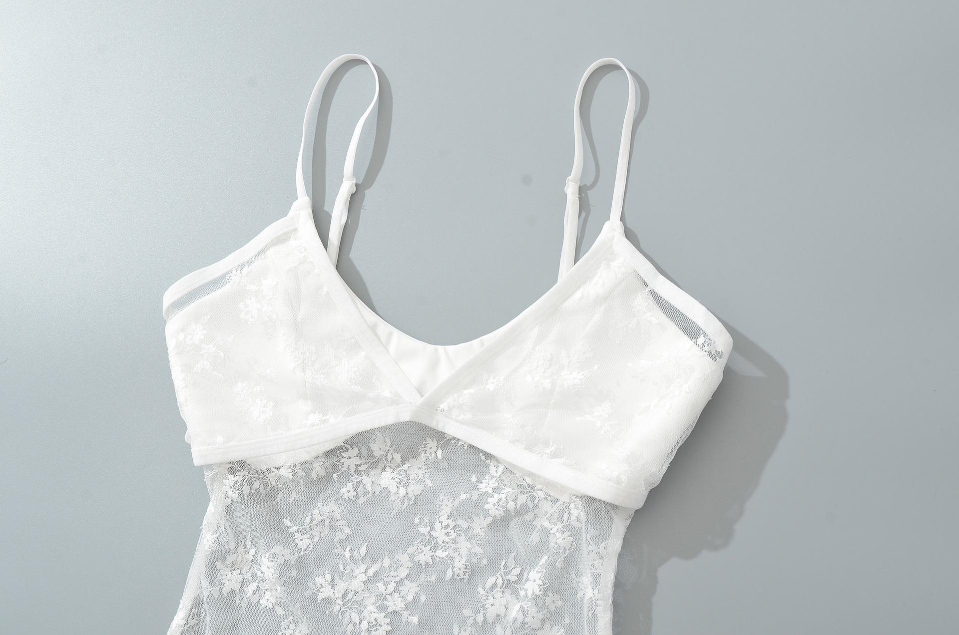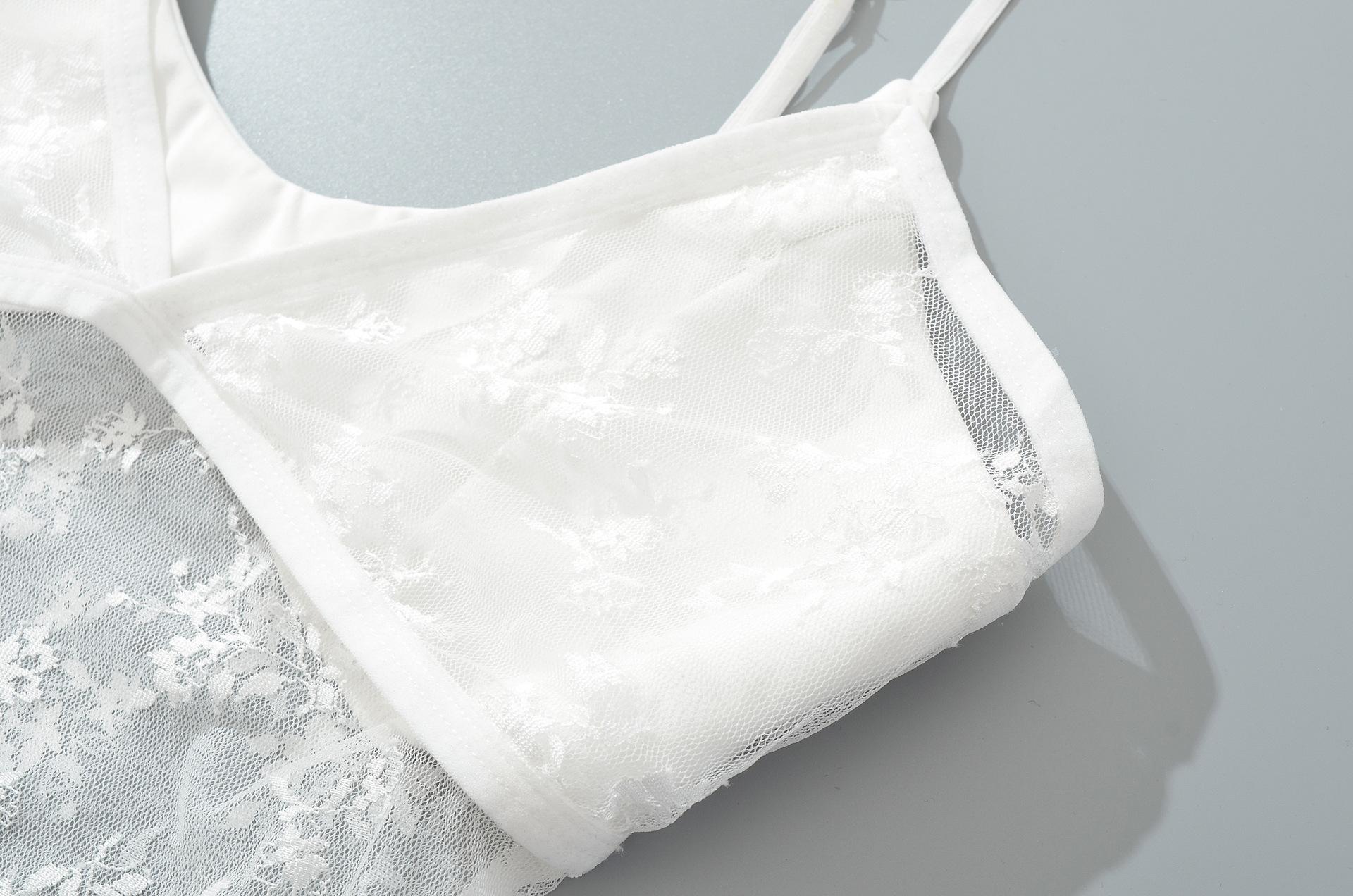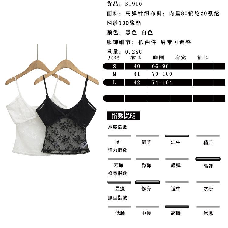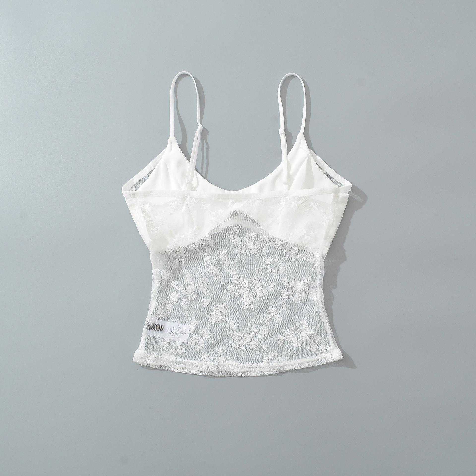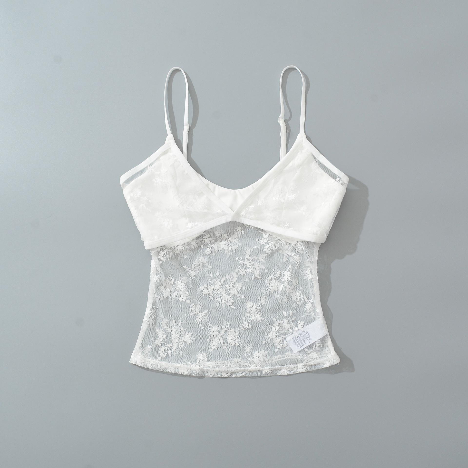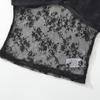 Top de encaje patchwork de diseño puro y sexy de chica caliente, camisola corta sexy con calado y ajuste ceñido para mujer