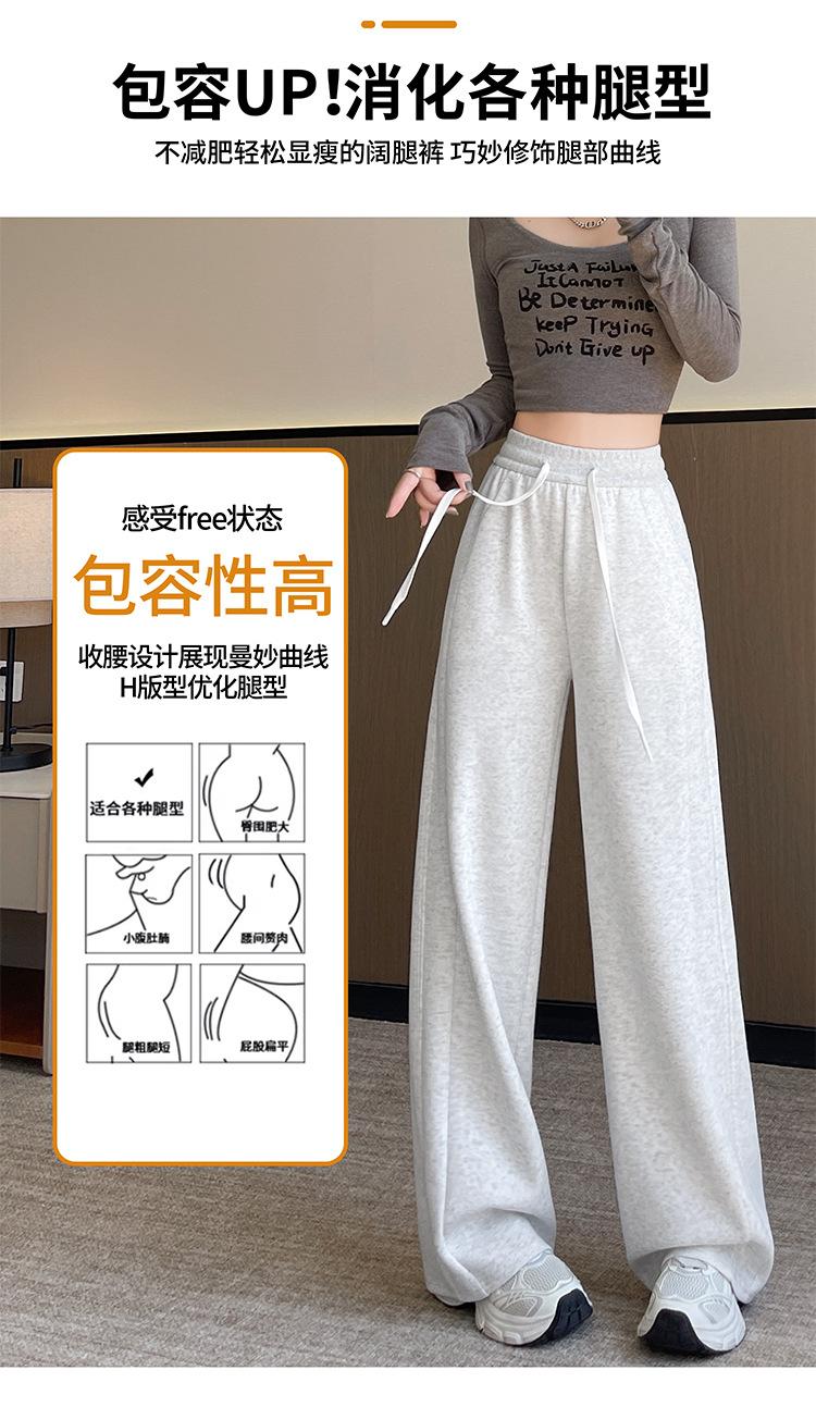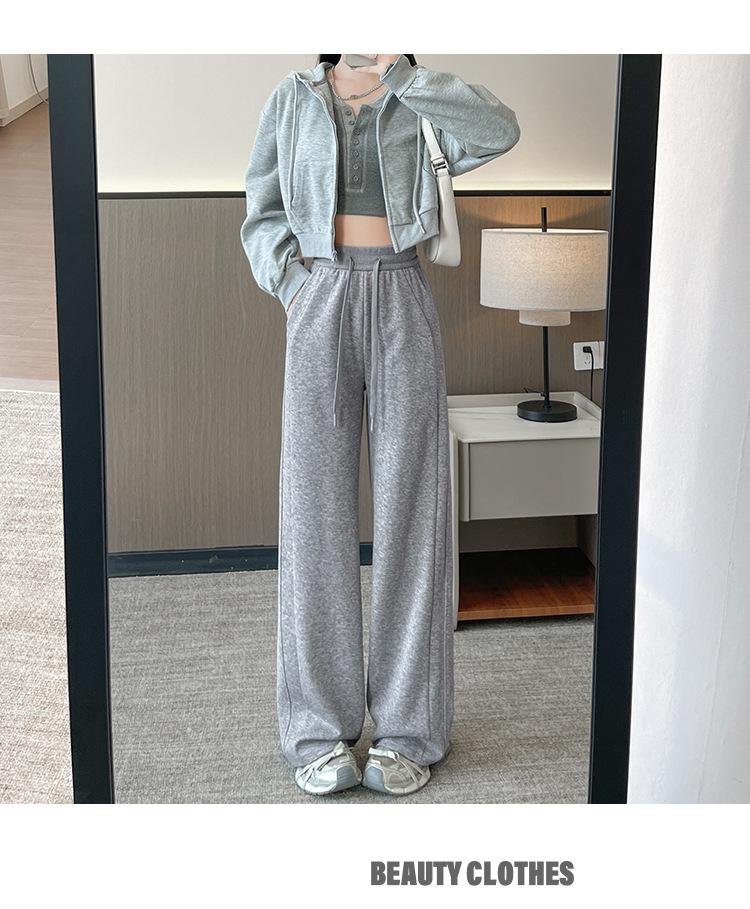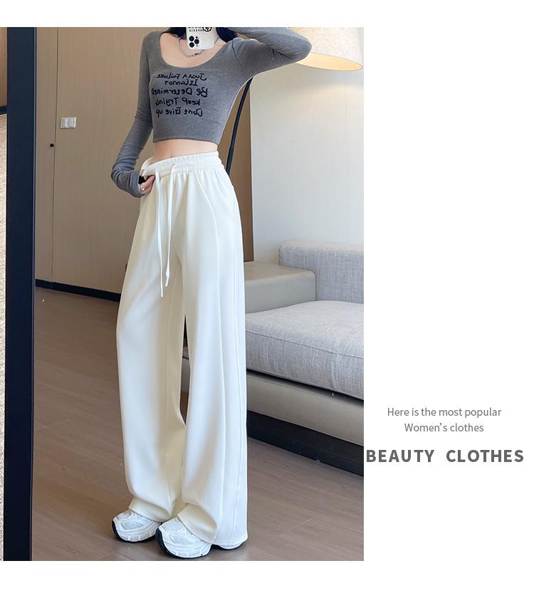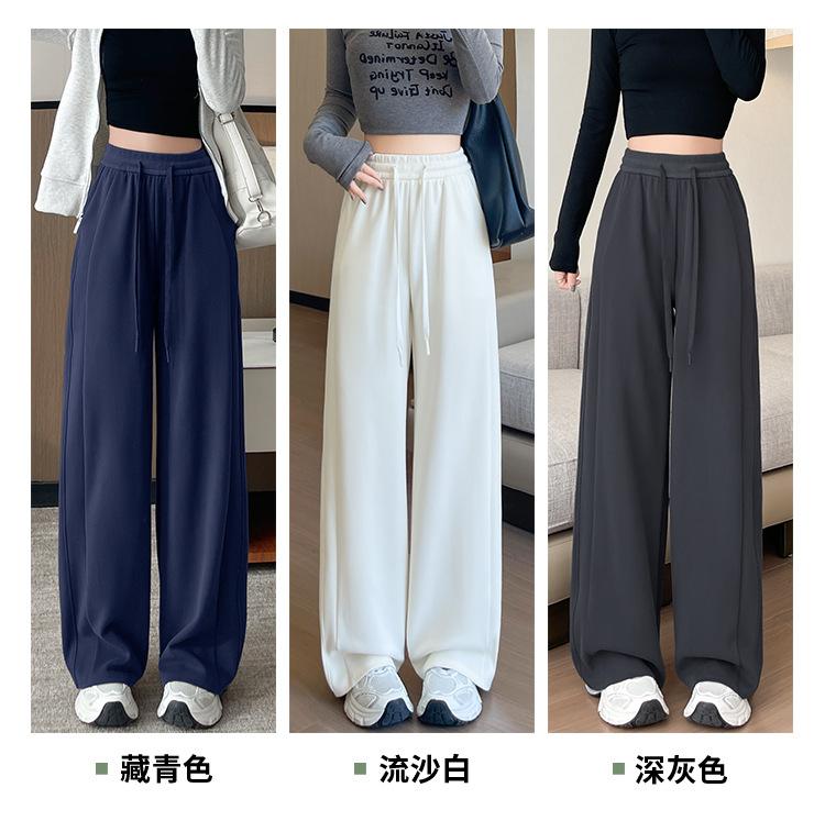Pantalones deportivos blancos otoño 2025 nuevos casuales de cintura alta pierna recta sueltos de pierna ancha petite pantalones deportivos tipo plátano