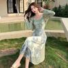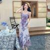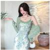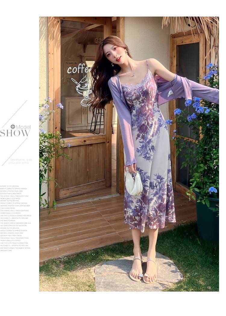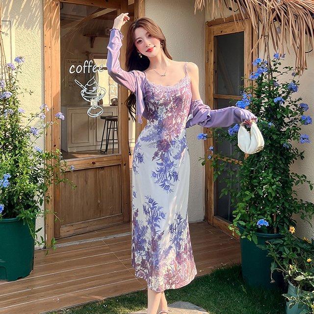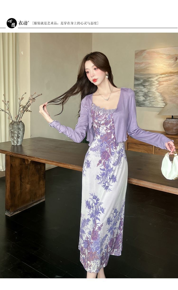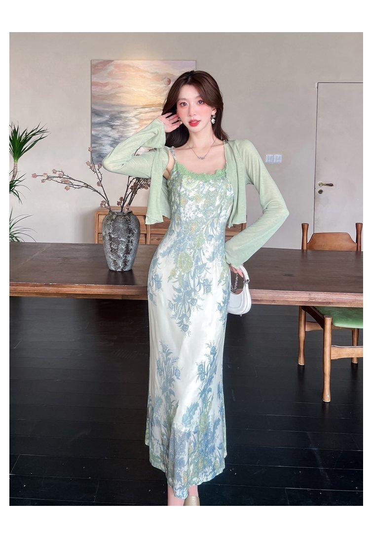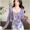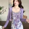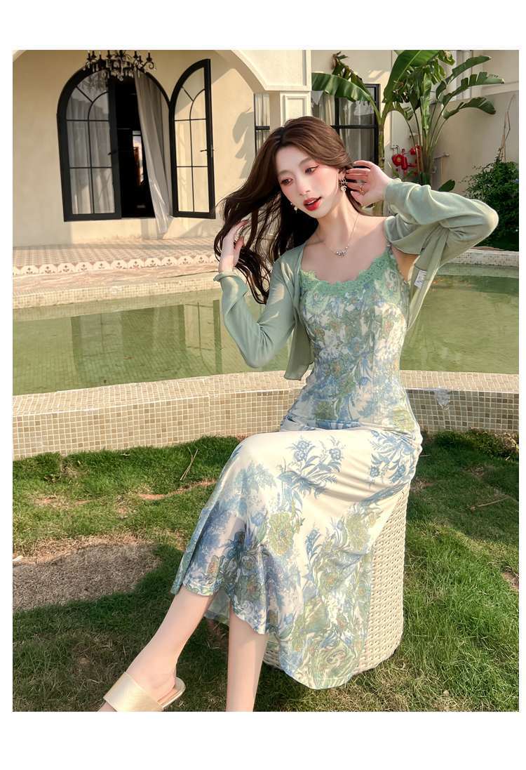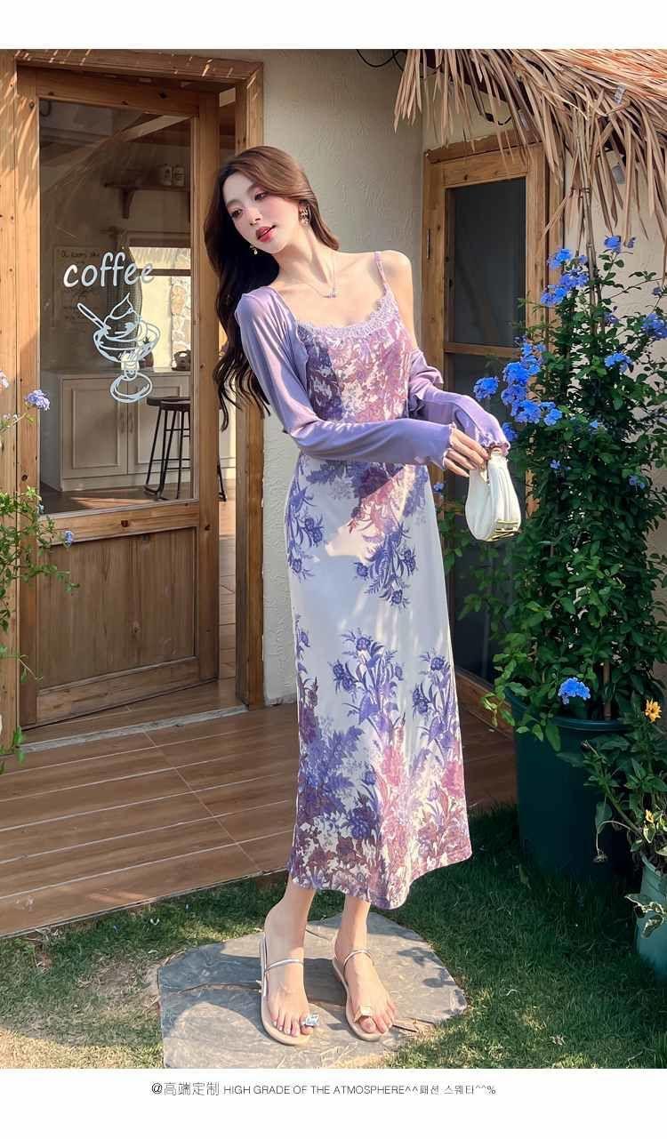 Vestido Camisola Vintage Encaje Francés Glicina Set Estilo Chino Vestido Camisola Cardigan Empalmado Falda Larga