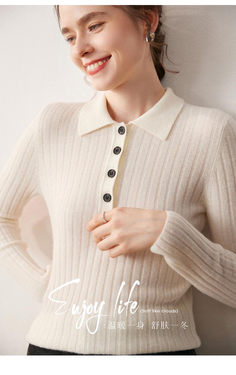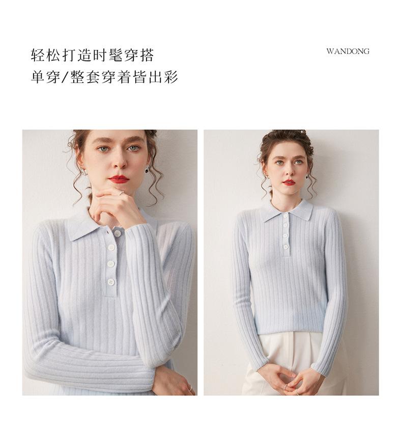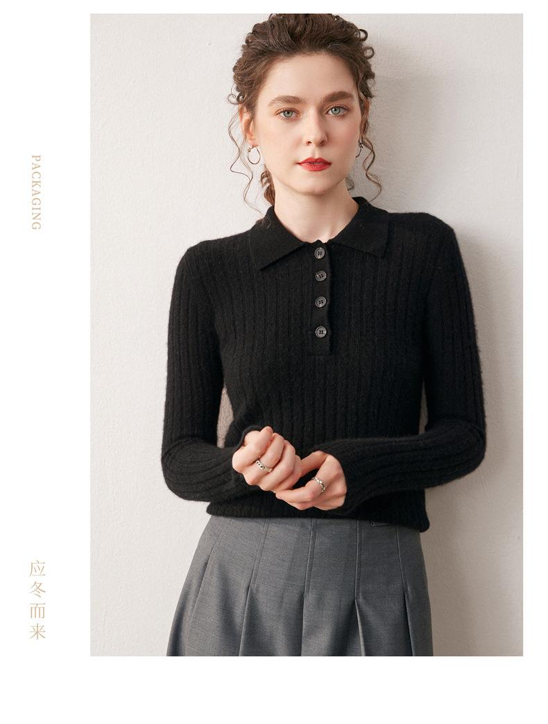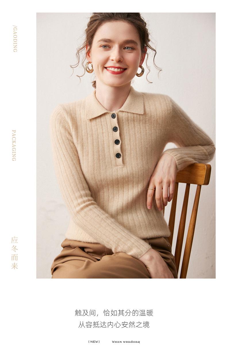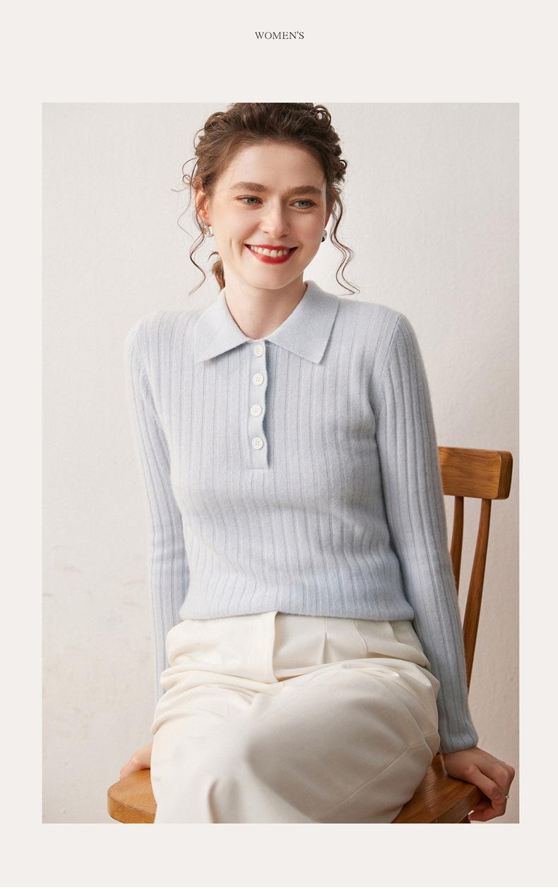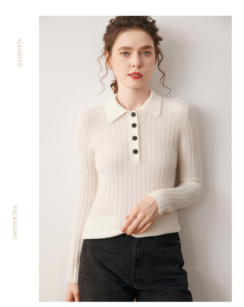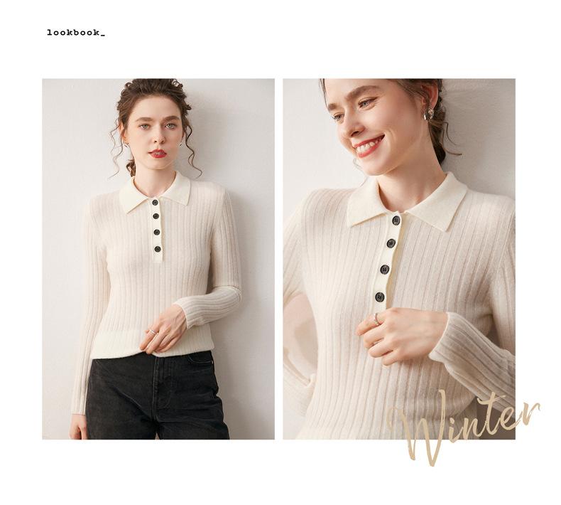 Nueva Capa Base de Punto de Cachemira Otoño/Invierno Color Sólido Suave Cómoda Holgada Cuello Polo Jersey Manga Larga Mujer
