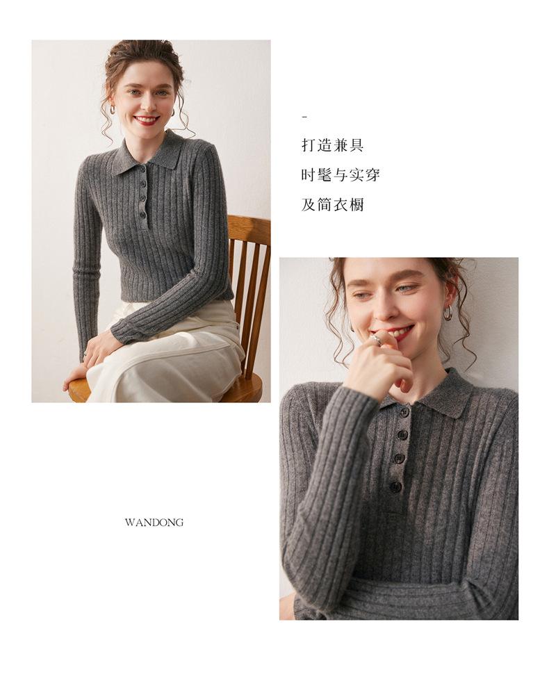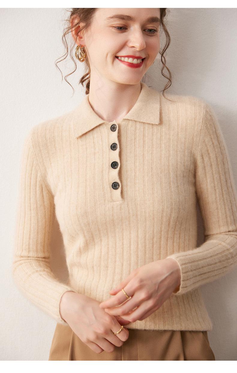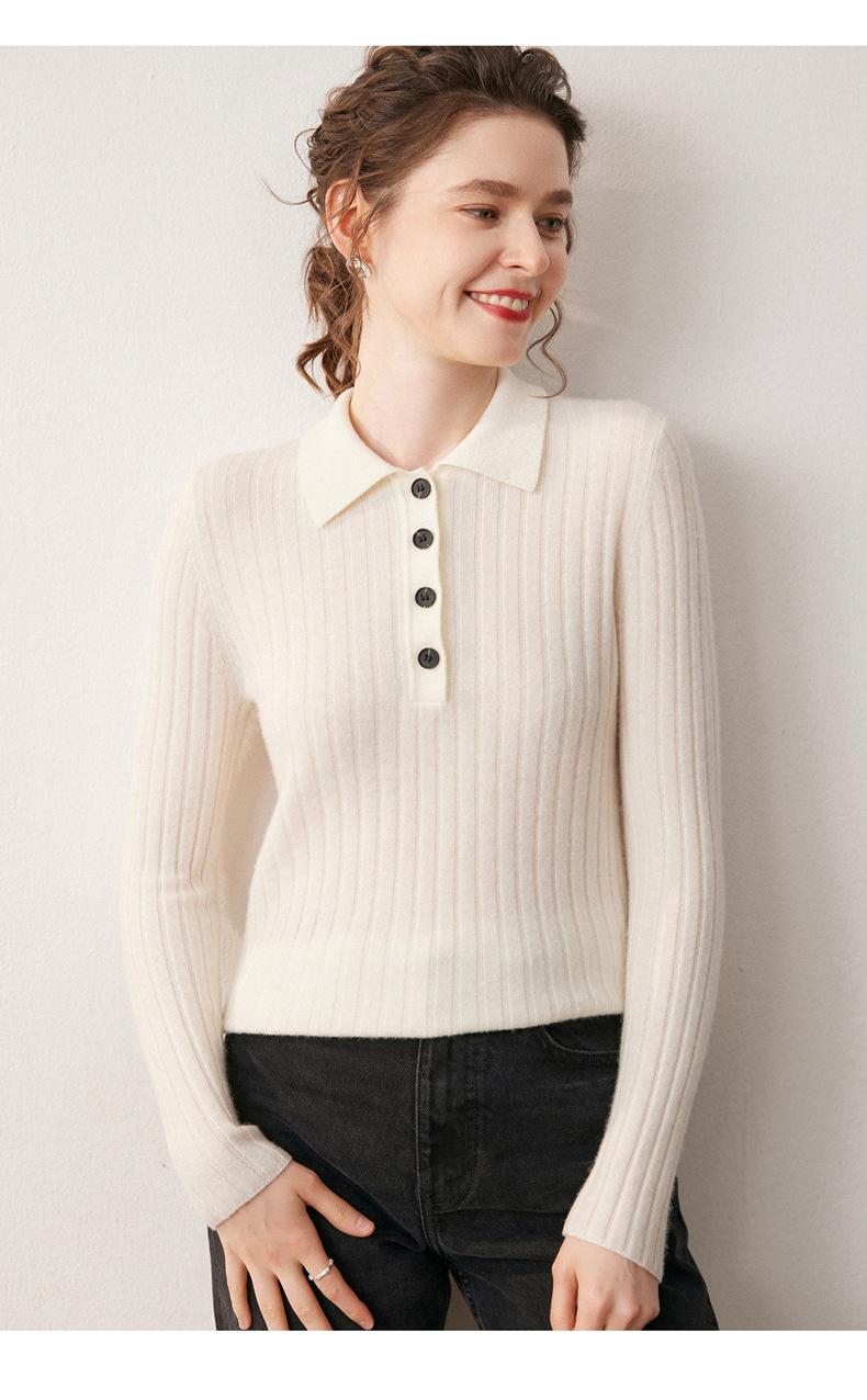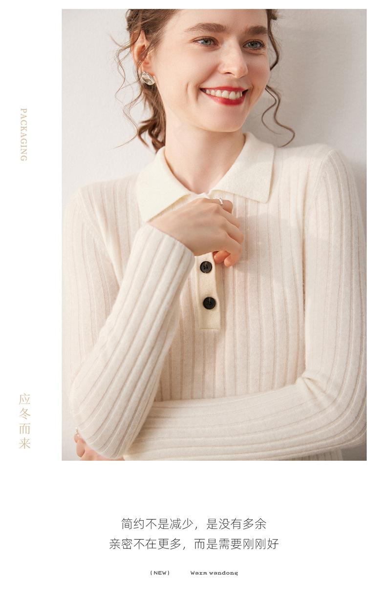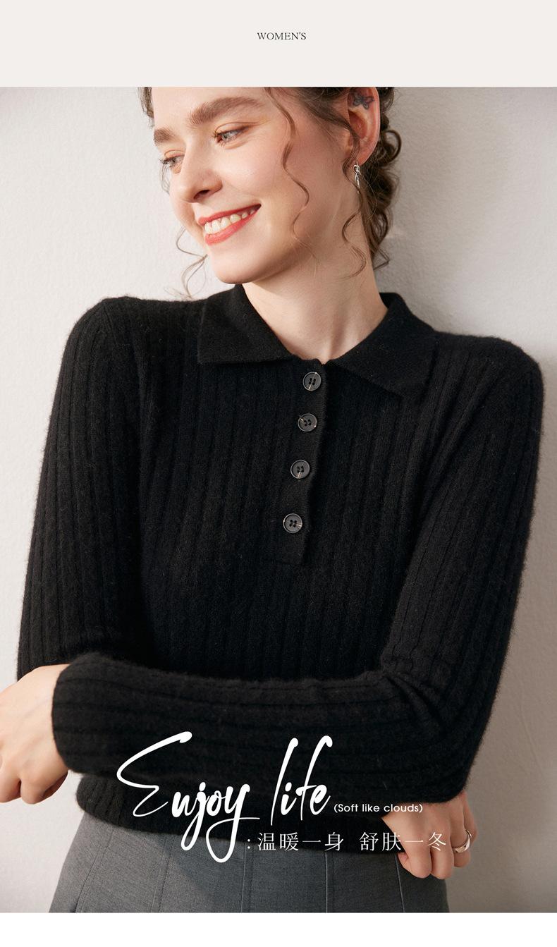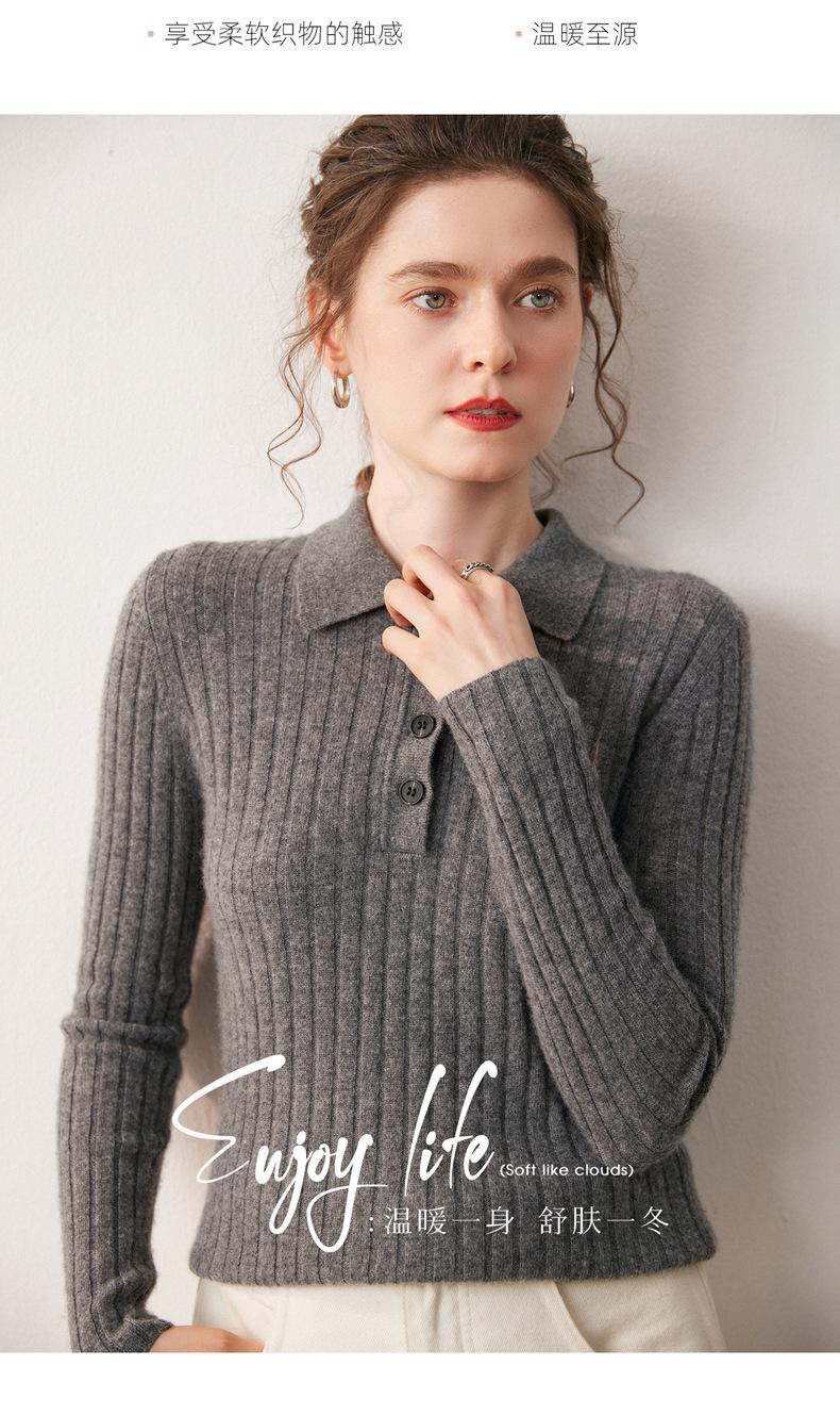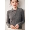 Nueva Capa Base de Punto de Cachemira Otoño/Invierno Color Sólido Suave Cómoda Holgada Cuello Polo Jersey Manga Larga Mujer