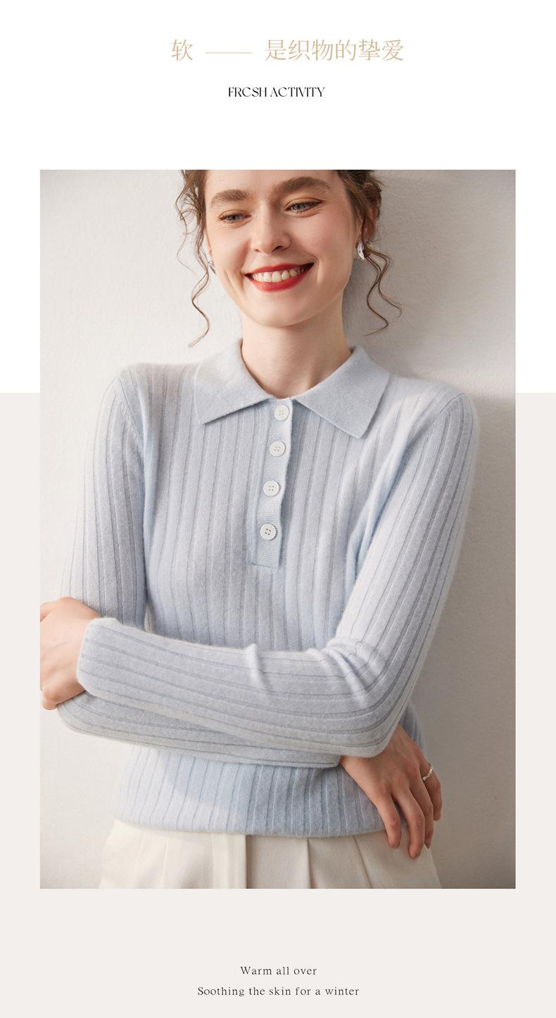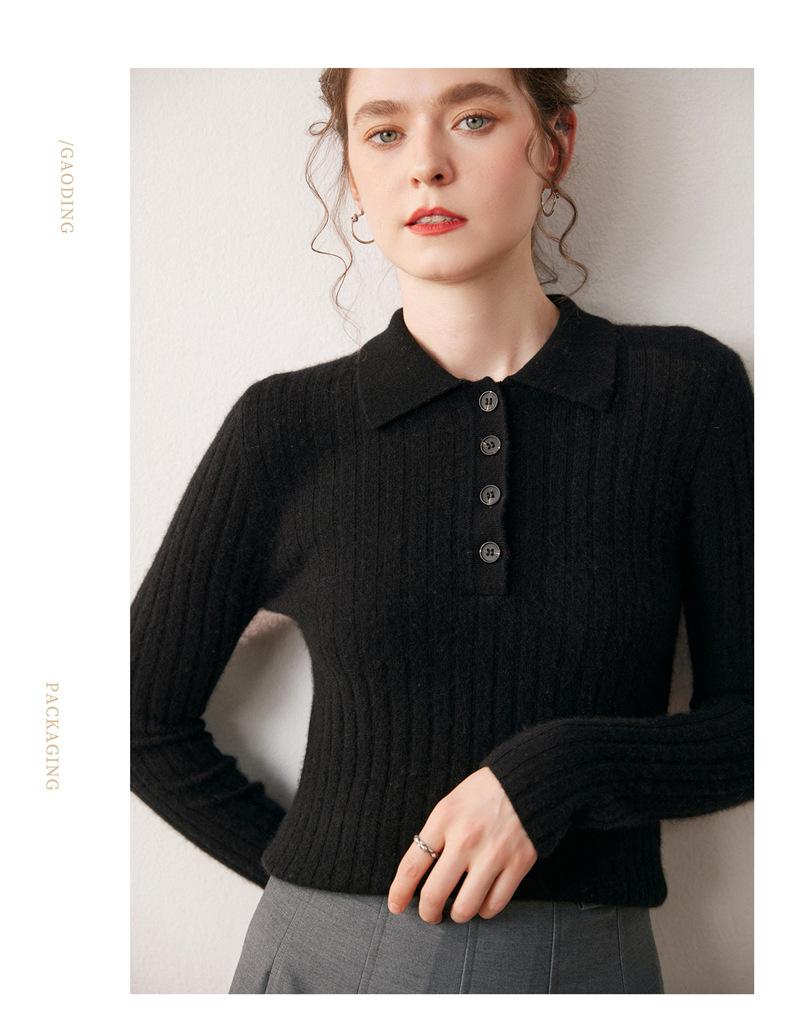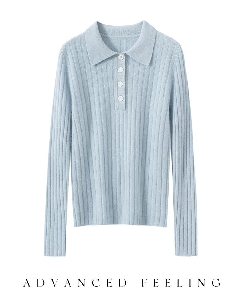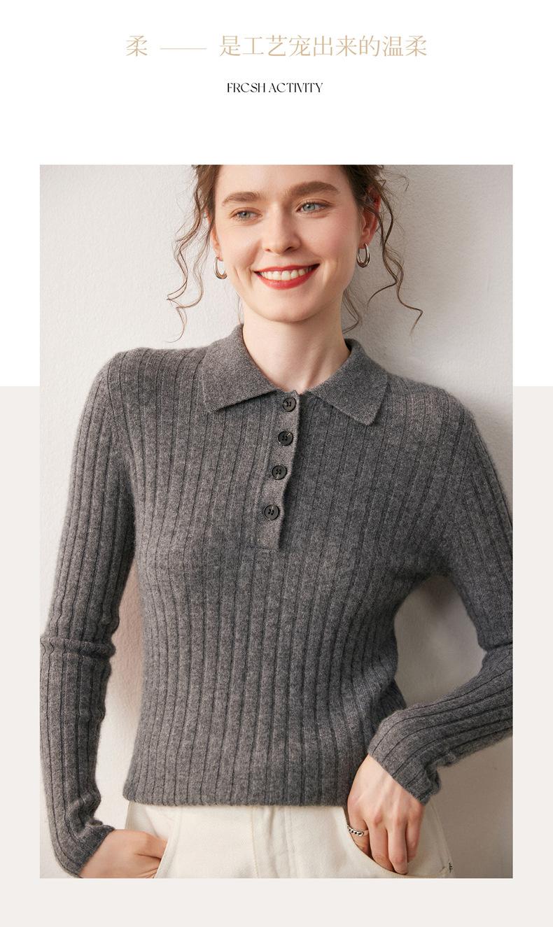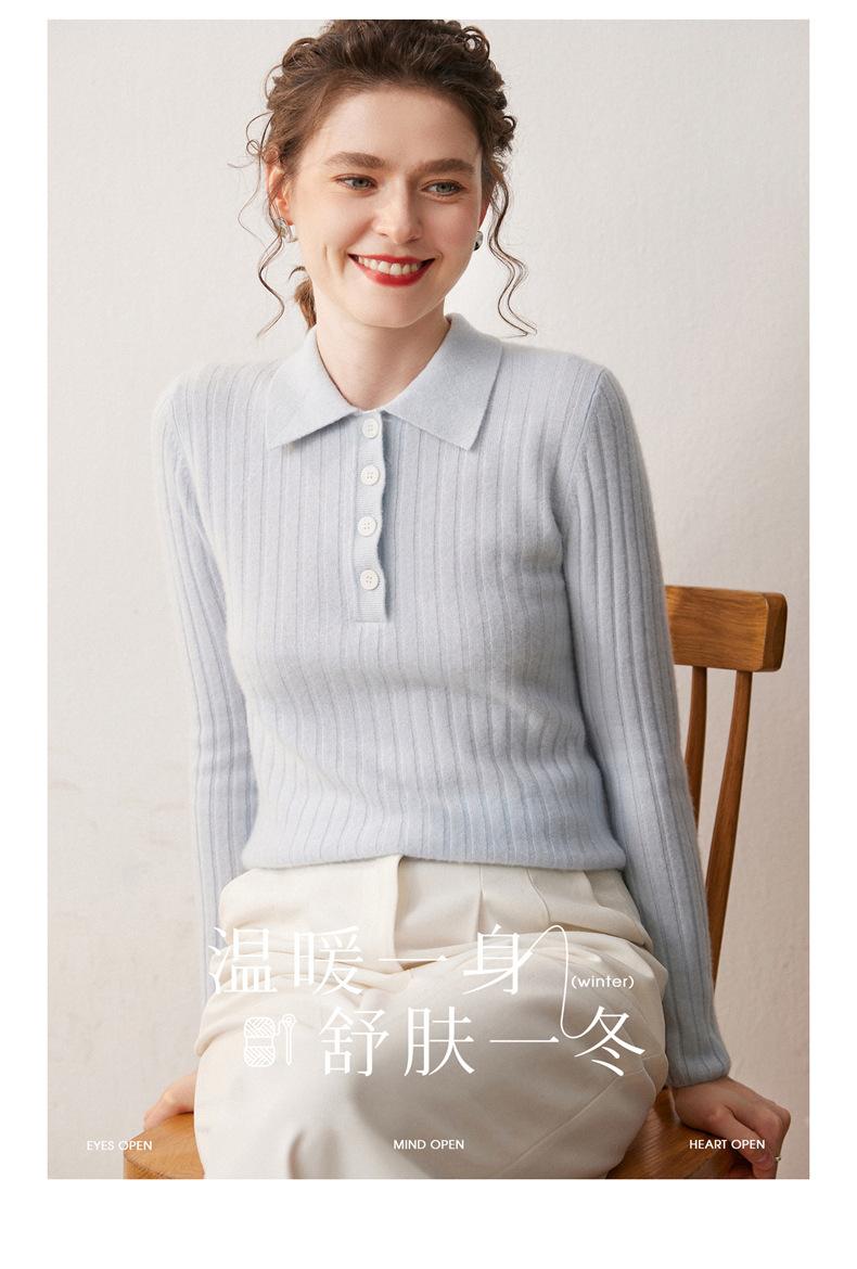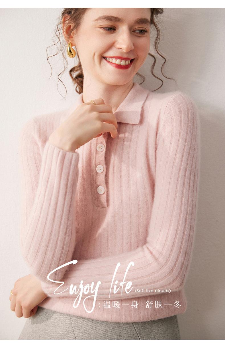 Nueva Capa Base de Punto de Cachemira Otoño/Invierno Color Sólido Suave Cómoda Holgada Cuello Polo Jersey Manga Larga Mujer