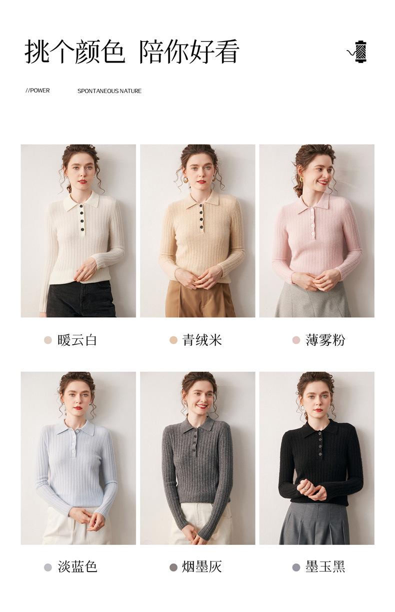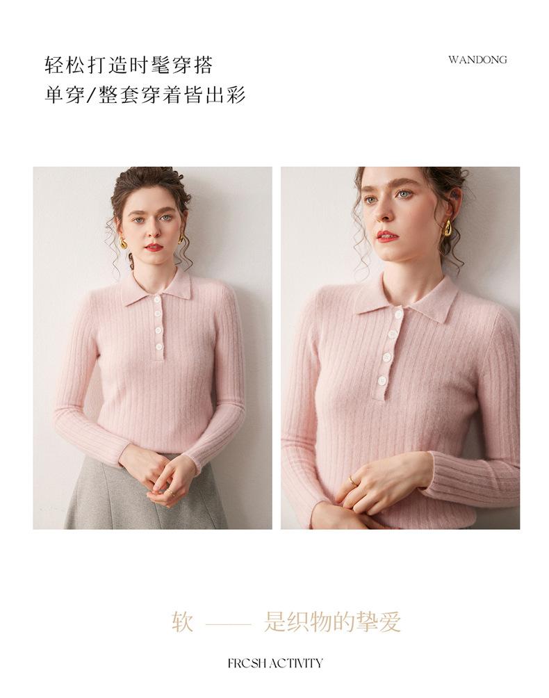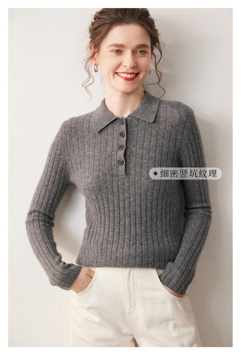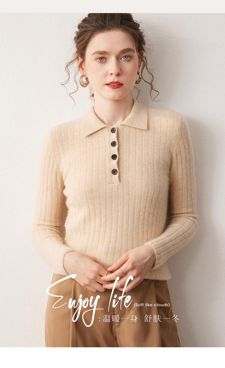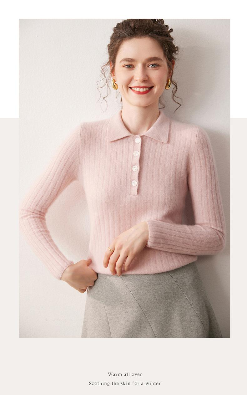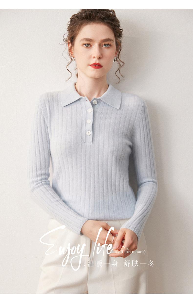 Nueva Capa Base de Punto de Cachemira Otoño/Invierno Color Sólido Suave Cómoda Holgada Cuello Polo Jersey Manga Larga Mujer