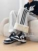 Pantalones de chándal para mujer Otoño e Invierno 2023 Nuevo Forrado de felpa Suelto Acanalado Pierna recta Pantalones de chándal grises Casual Espesado Pantalones de pierna ancha