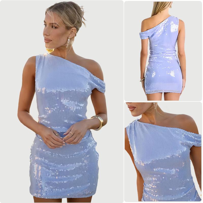 Personalidad Asimétrico Color Sólido Sin Mangas Sencillo Vestido de Moda Mujer 2025 Otoño Nuevo Ajustado Lentejuela Bodycon Falda Corta