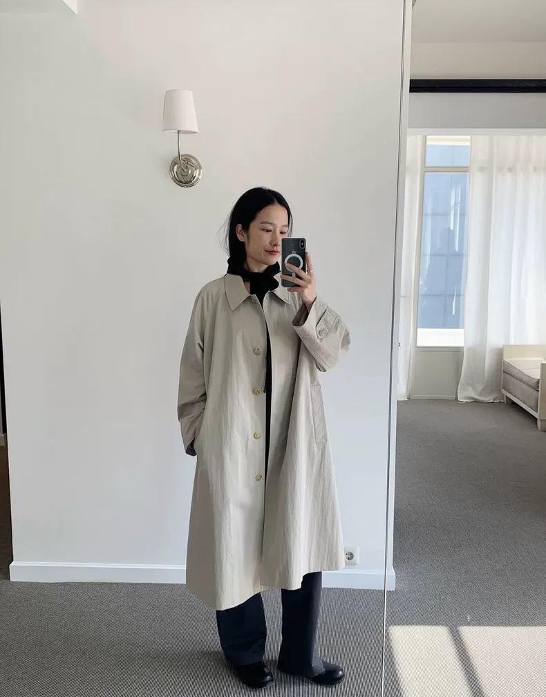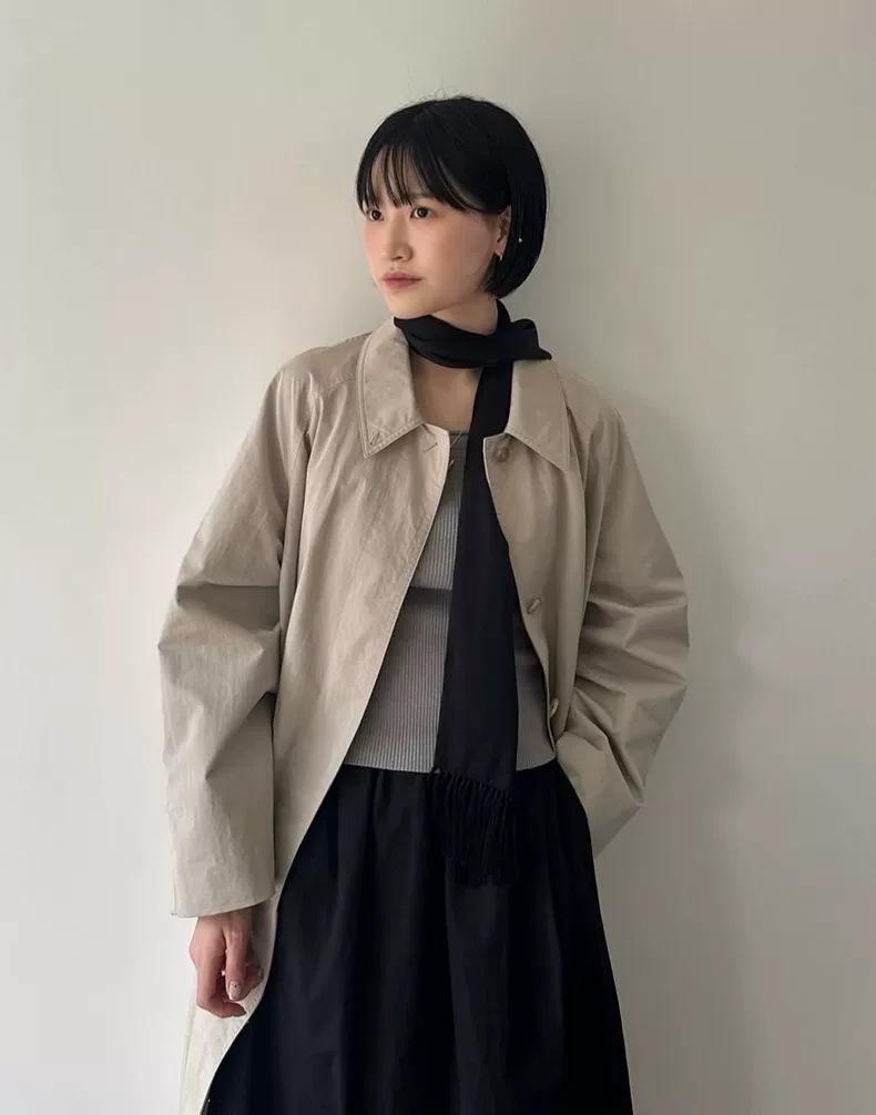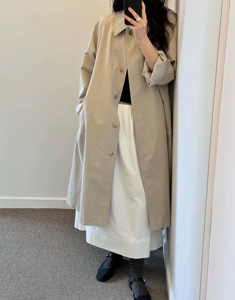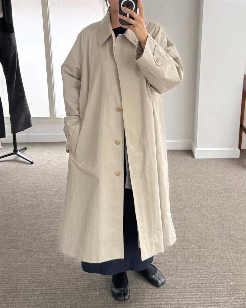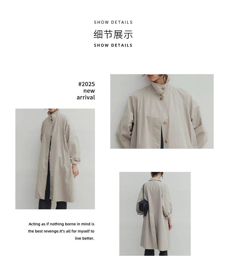 En stock otoño 2025 nuevo coreano Dongdaemun no*ing escrito color sólido solapa abrigo trench chaqueta mujer