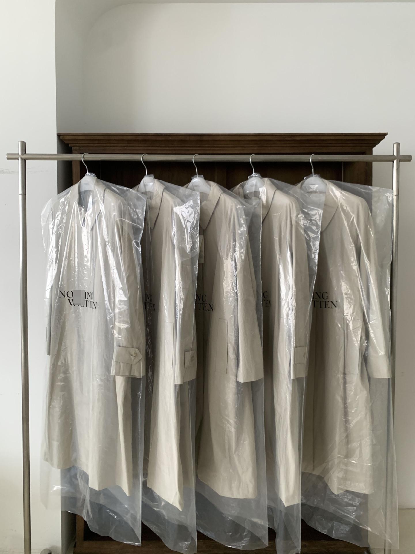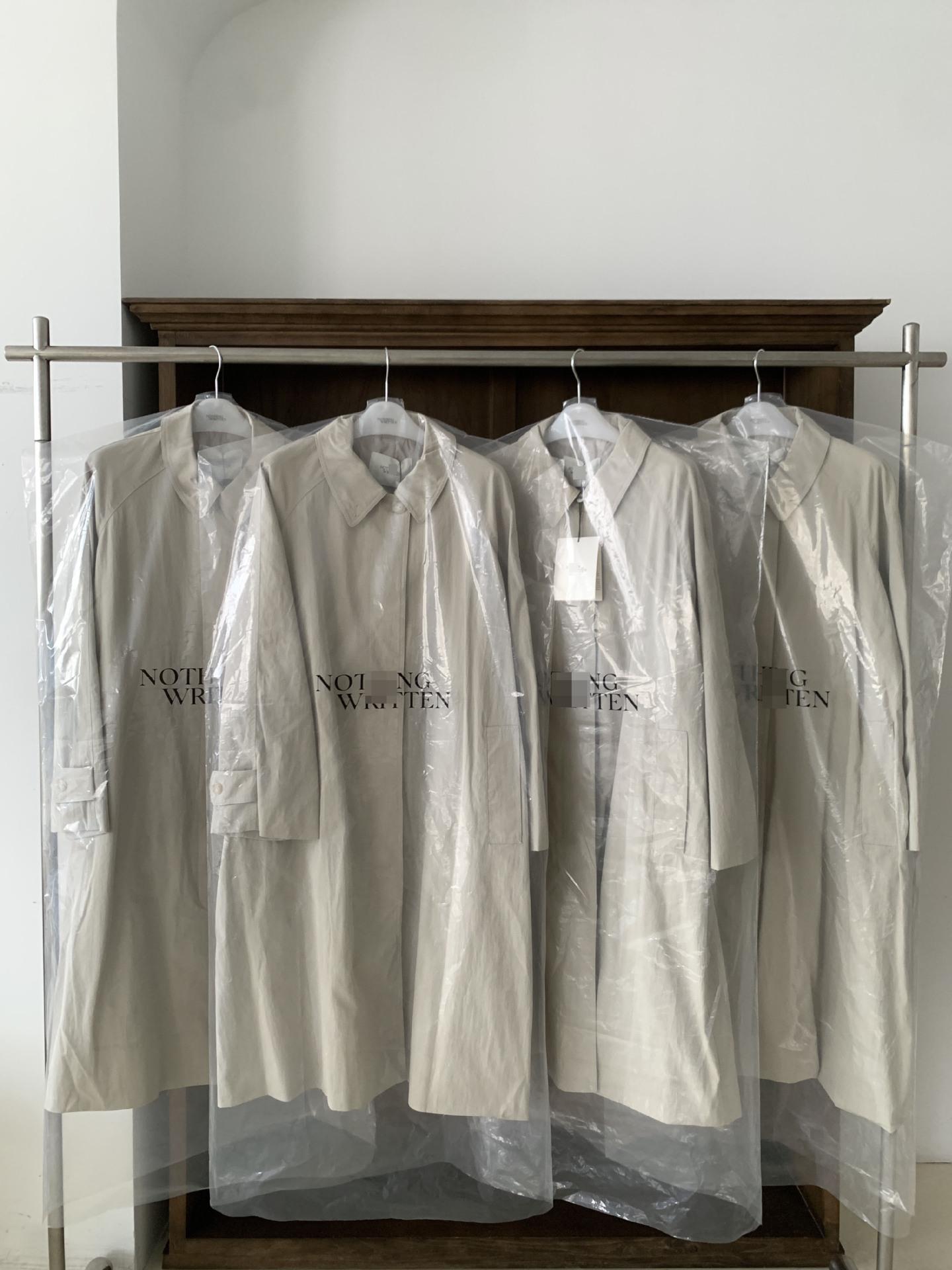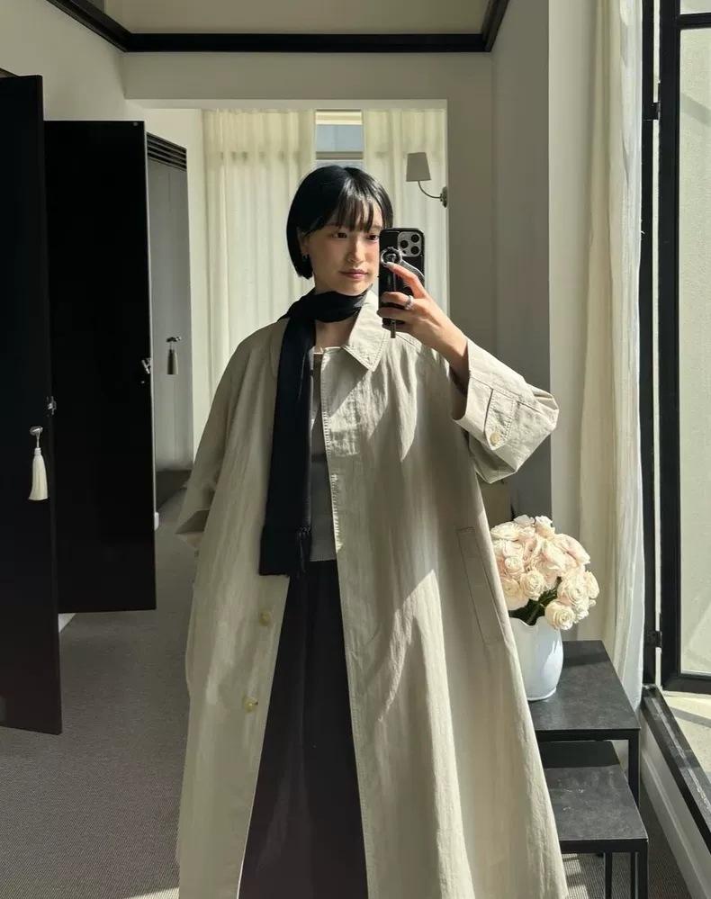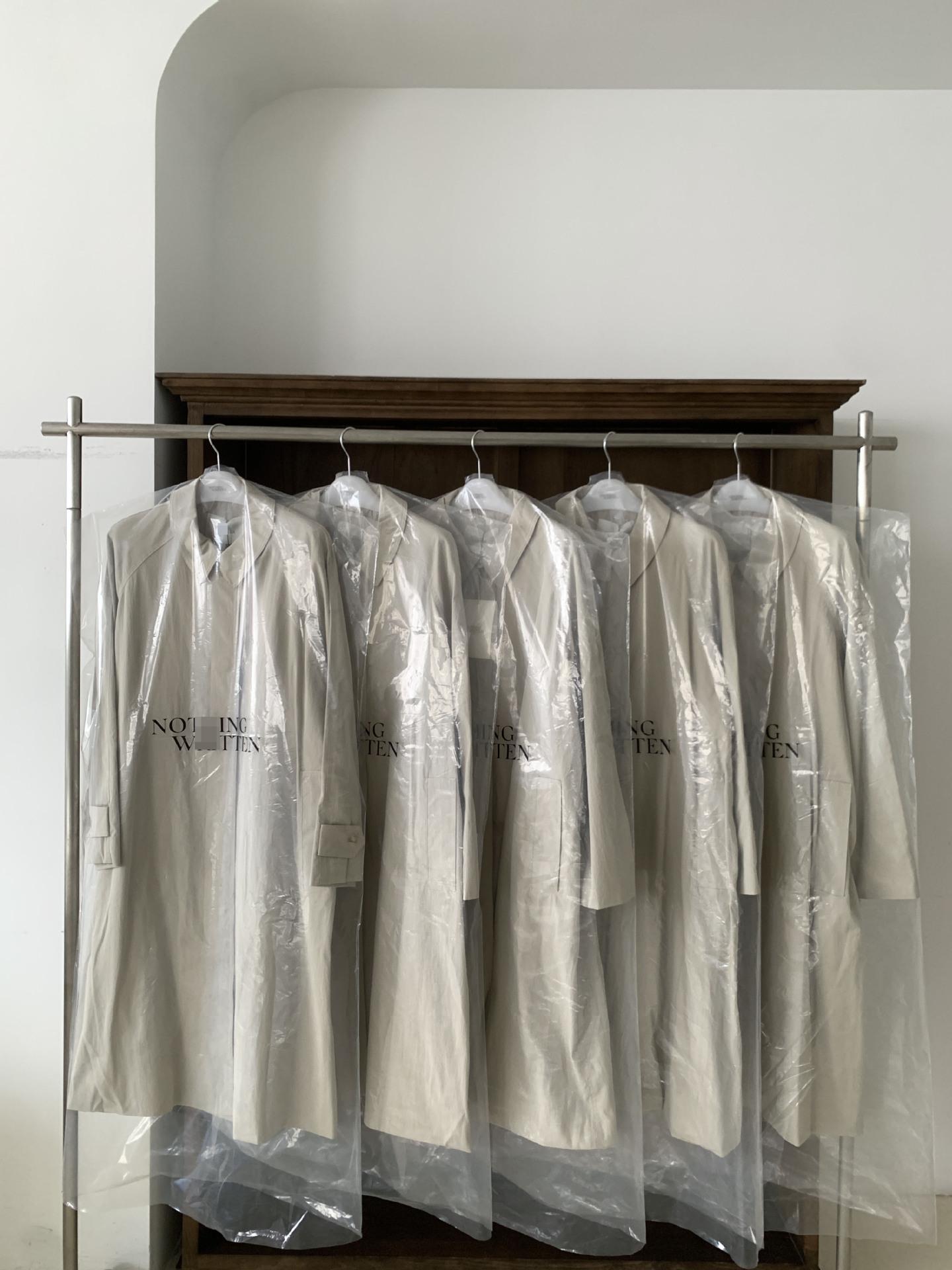 En stock otoño 2025 nuevo coreano Dongdaemun no*ing escrito color sólido solapa abrigo trench chaqueta mujer