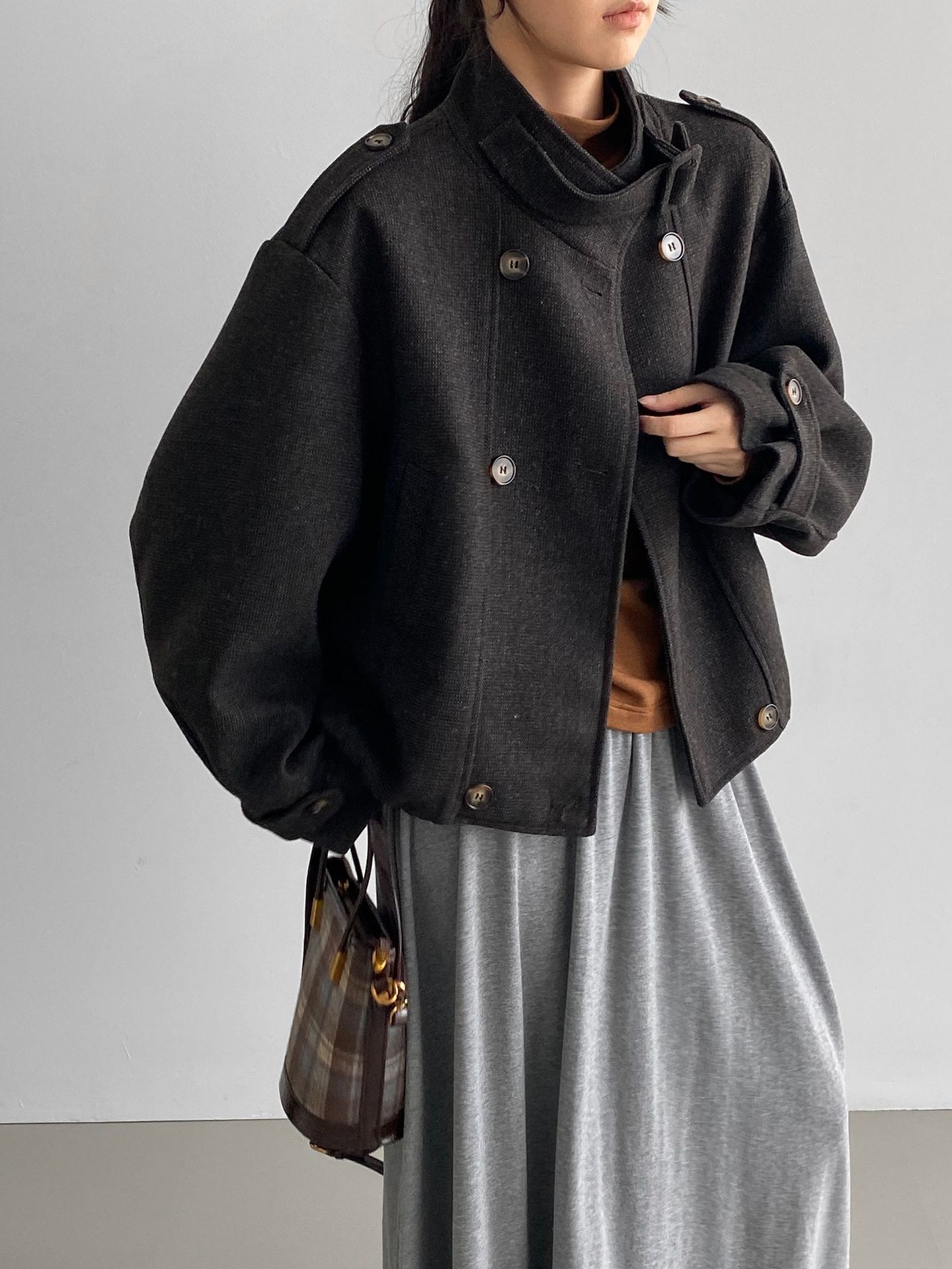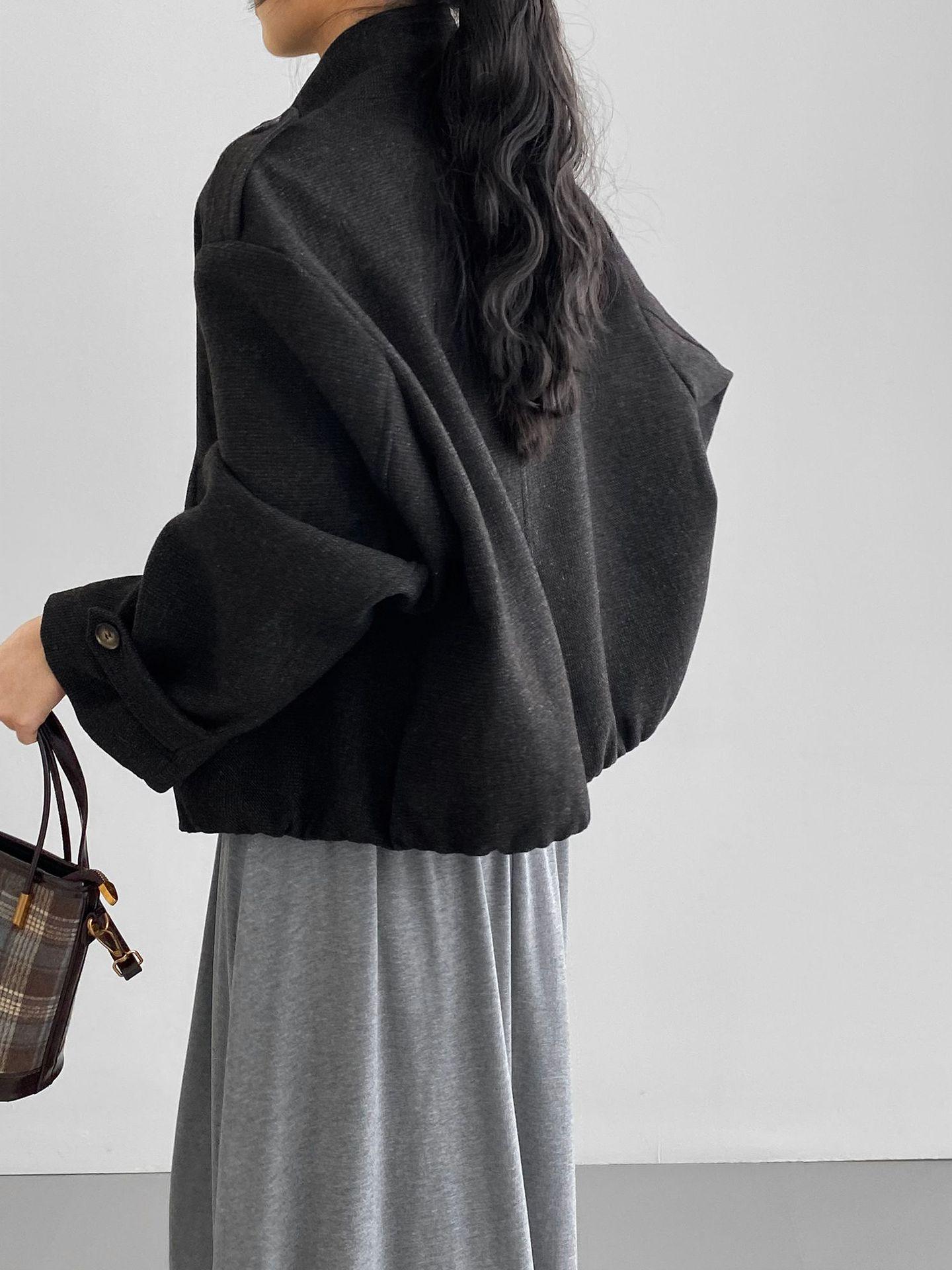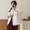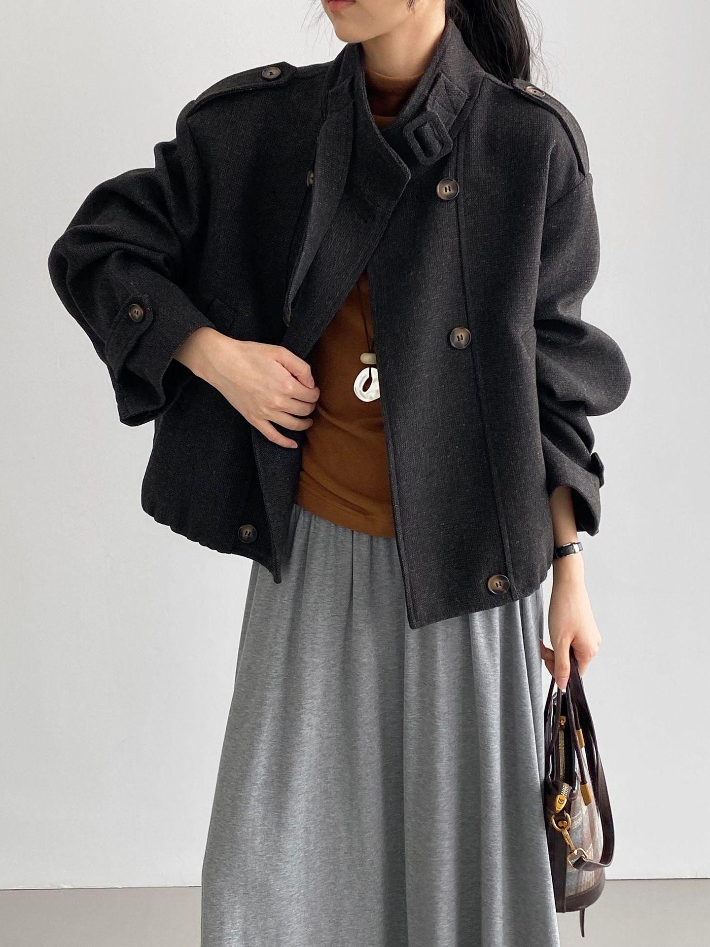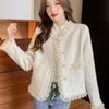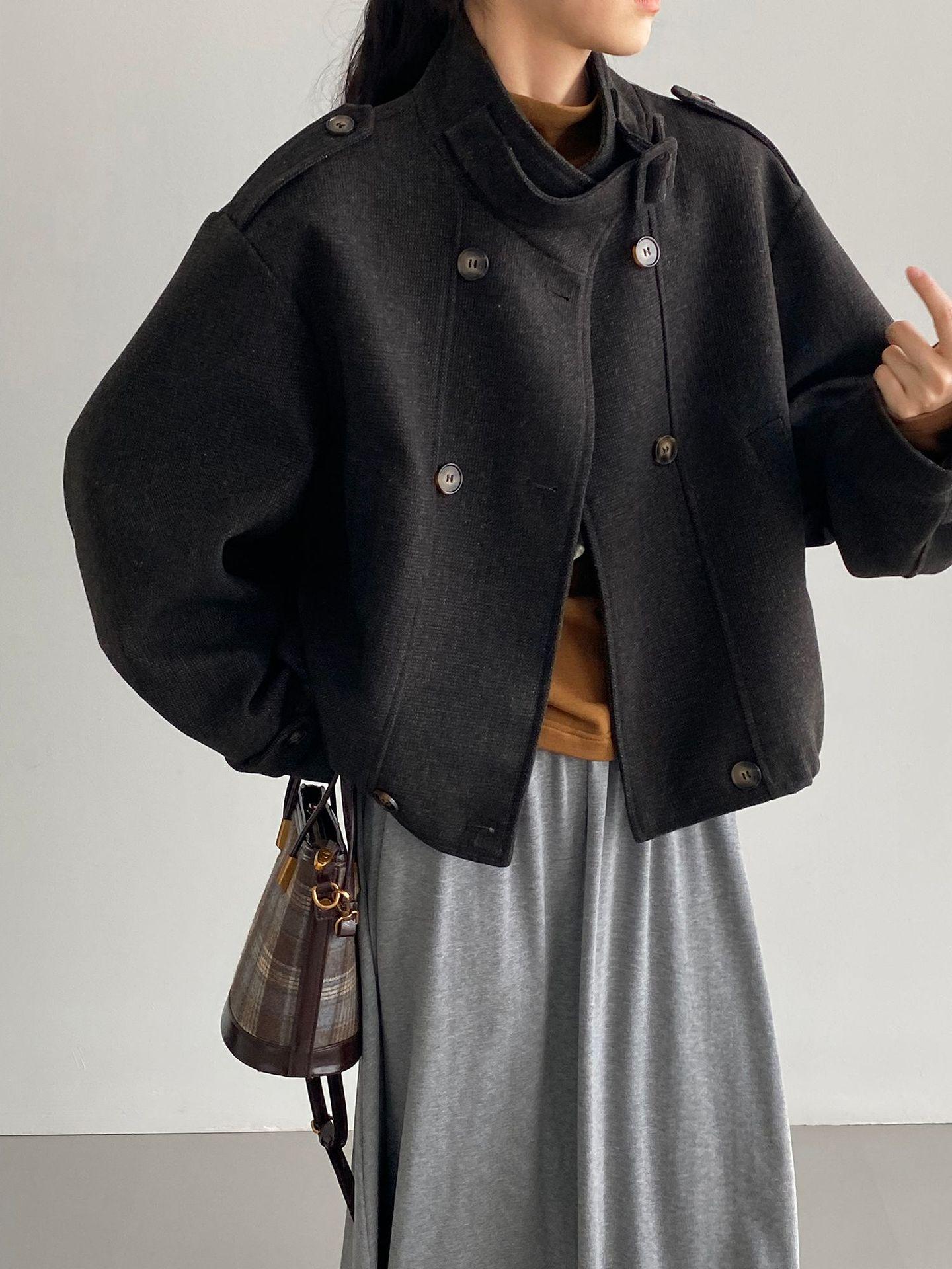 Abrigo coreano retro de alta gama de tweed moteado para mujer, petite, casual, versátil, con cuello alto, chaqueta 6155