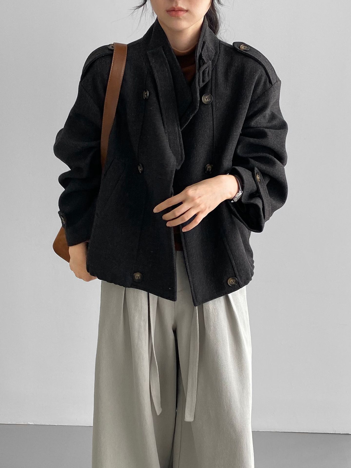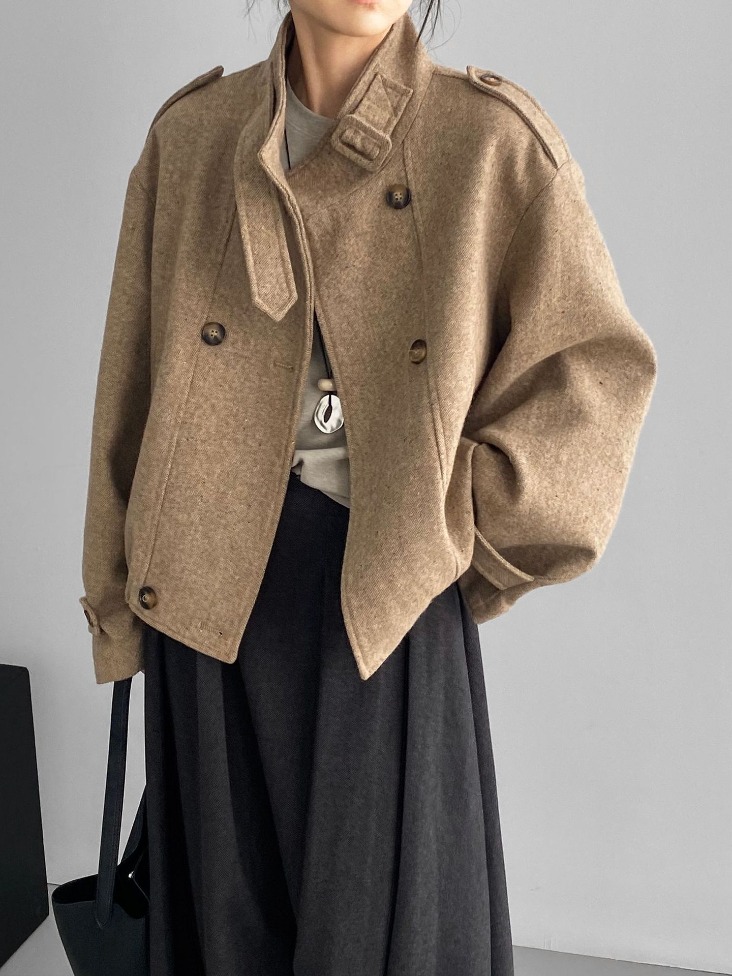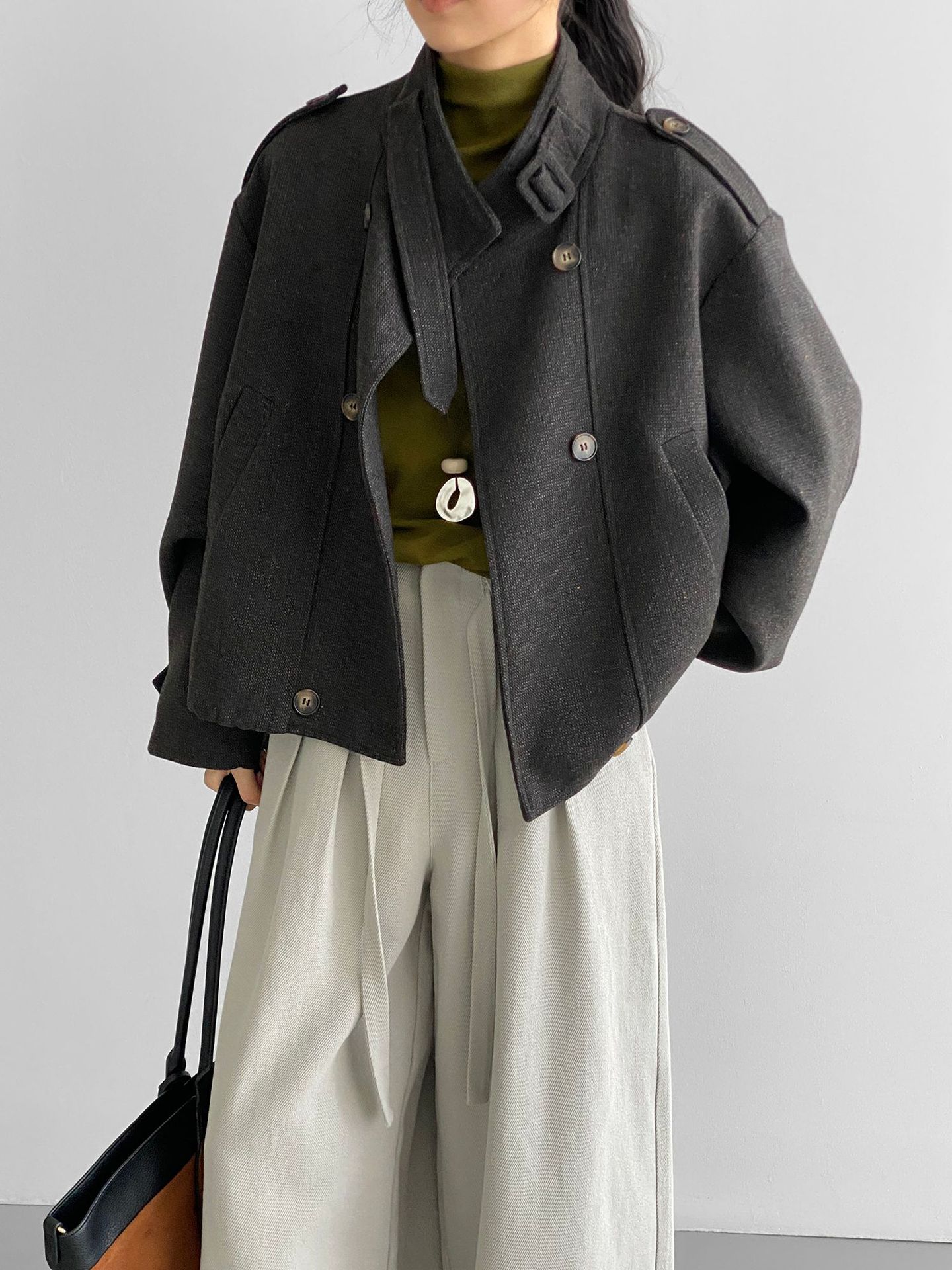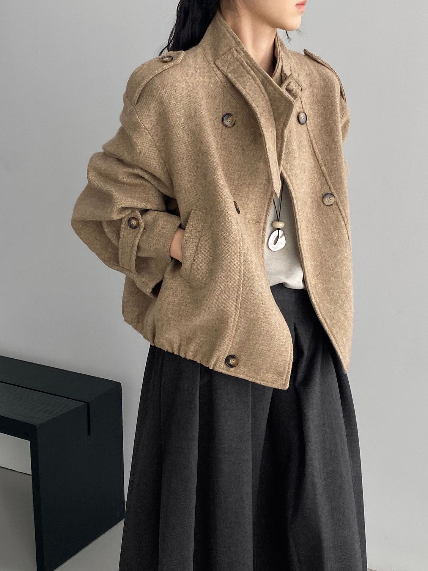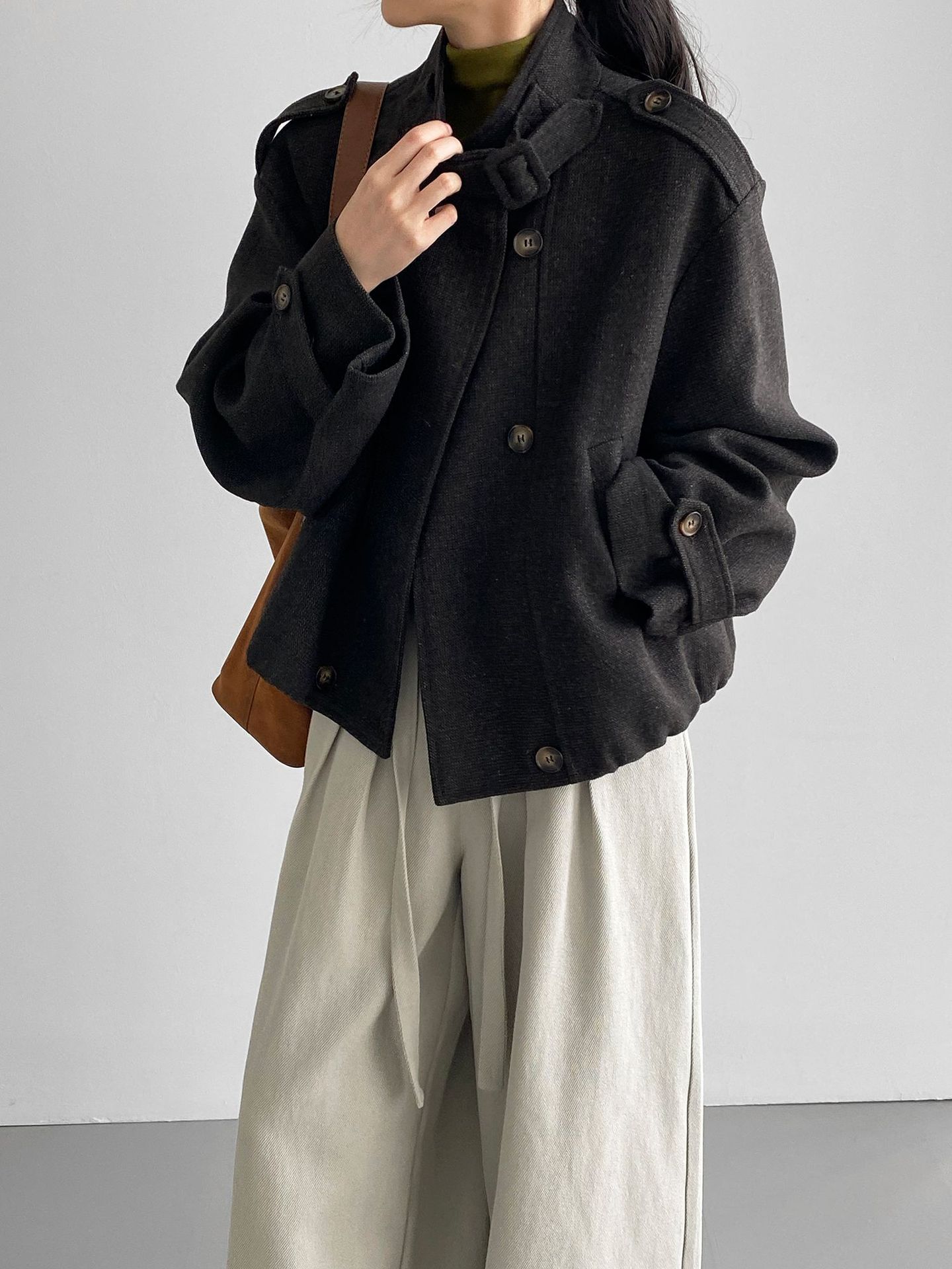 Abrigo coreano retro de alta gama de tweed moteado para mujer, petite, casual, versátil, con cuello alto, chaqueta 6155