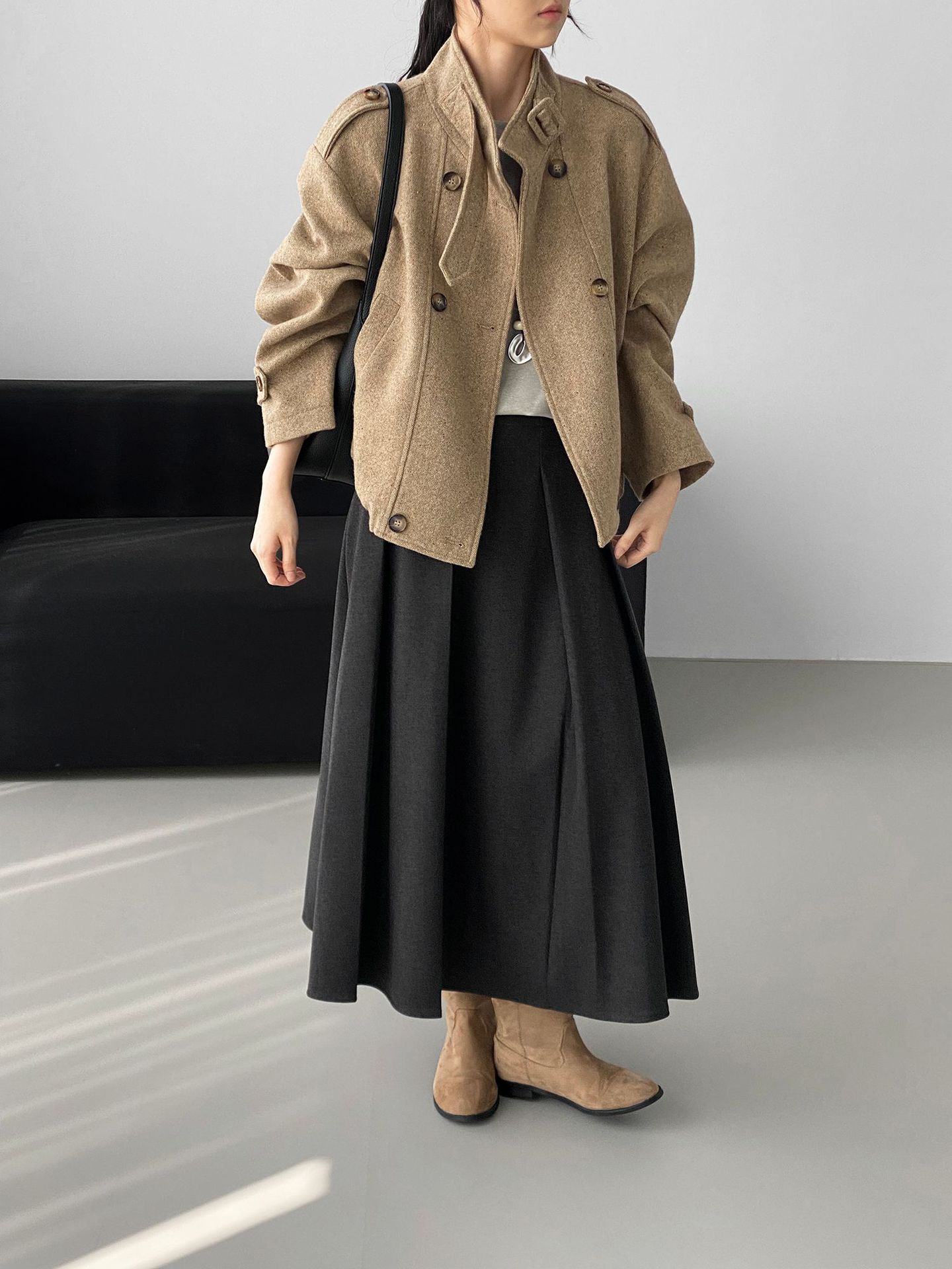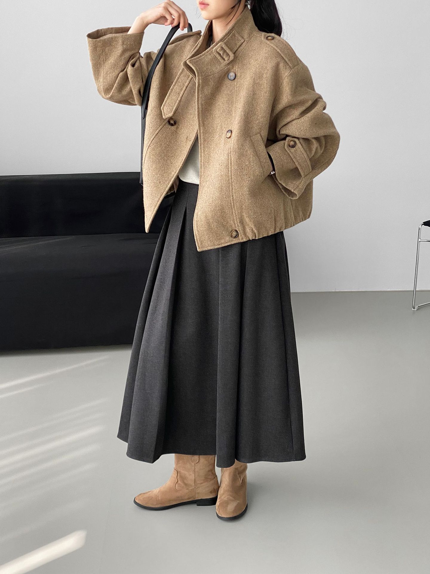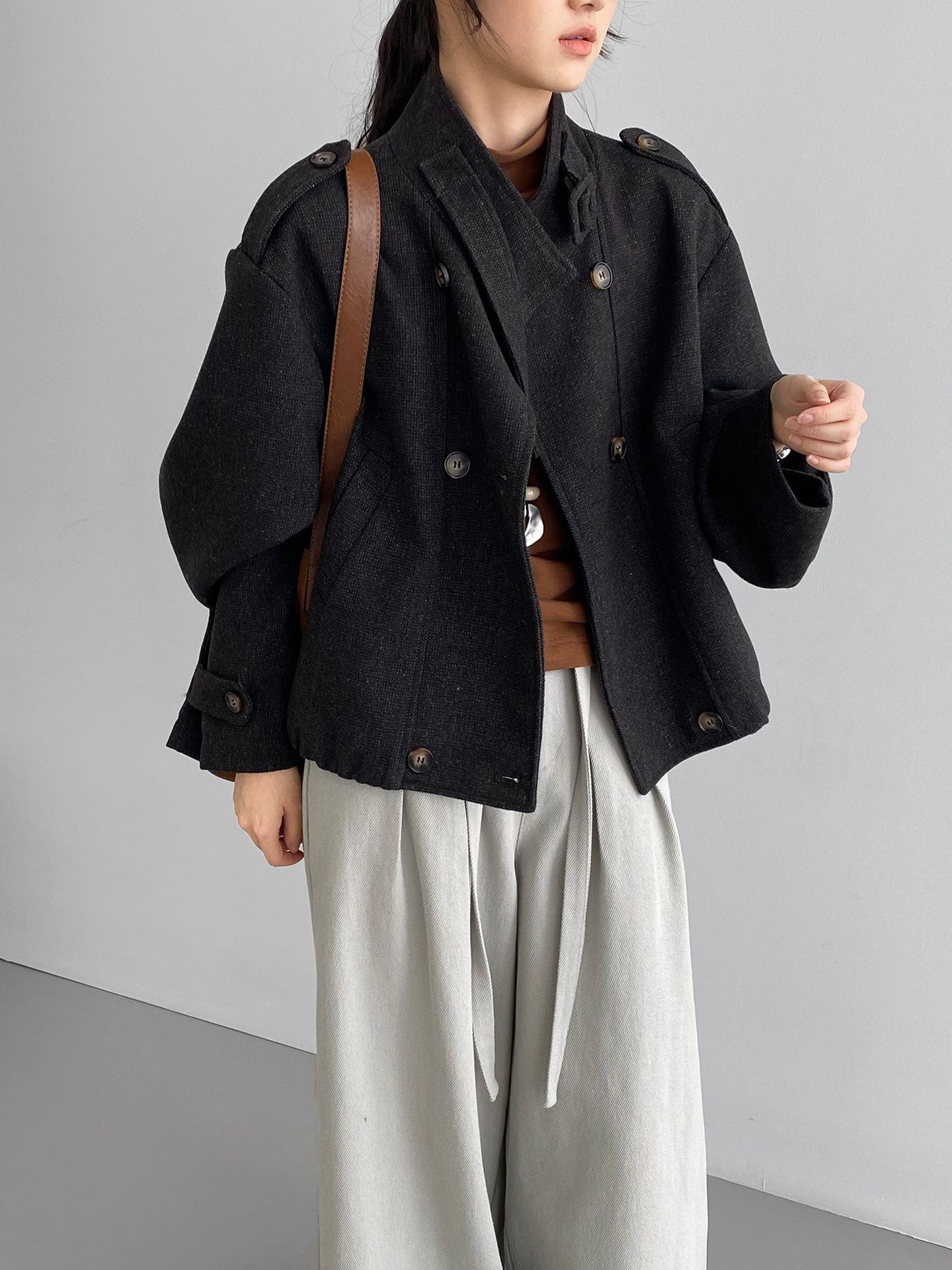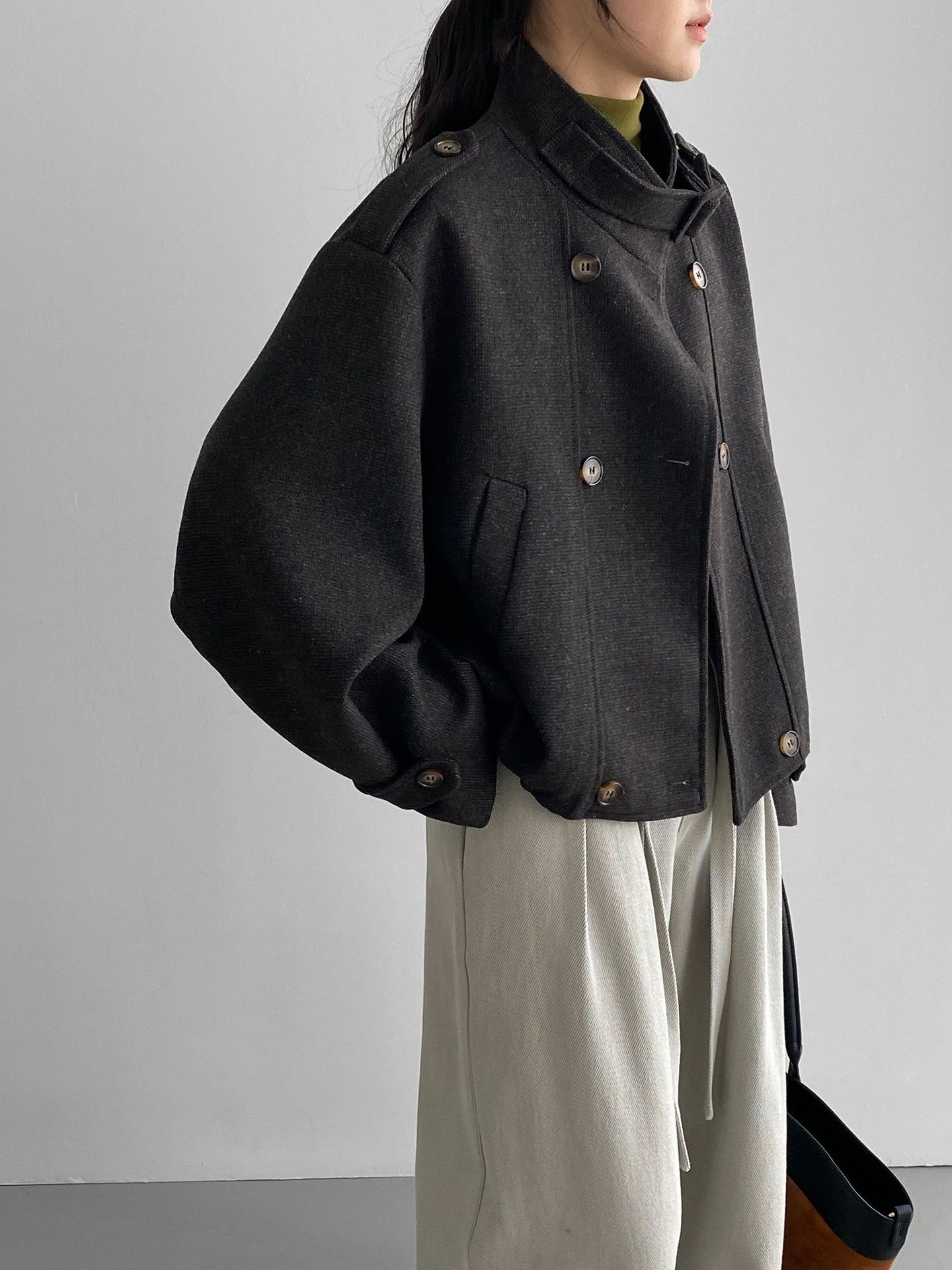 Abrigo coreano retro de alta gama de tweed moteado para mujer, petite, casual, versátil, con cuello alto, chaqueta 6155