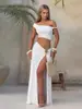 Top corto puro y sexy con hombros descubiertos y falda midi para mujer, de un hombro, verano, chica hot, pastel, nuevo conjunto de dos piezas