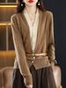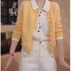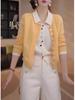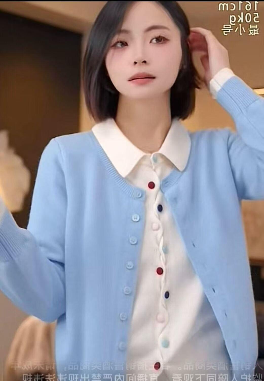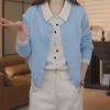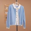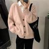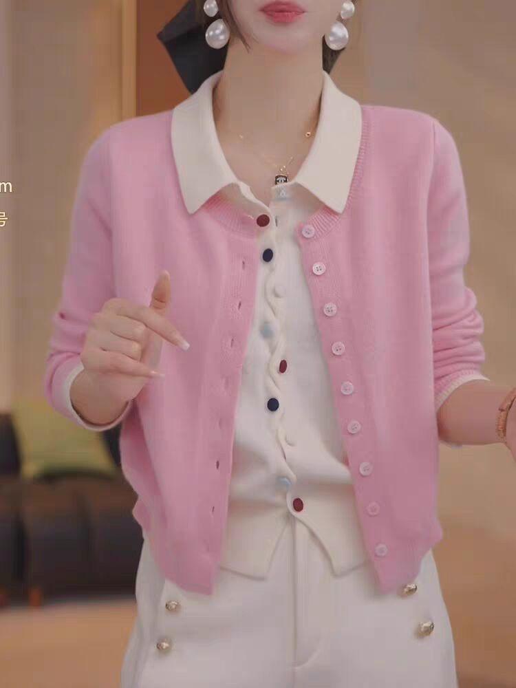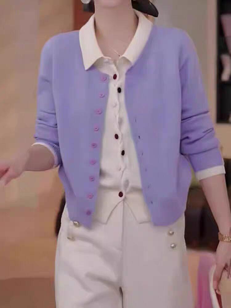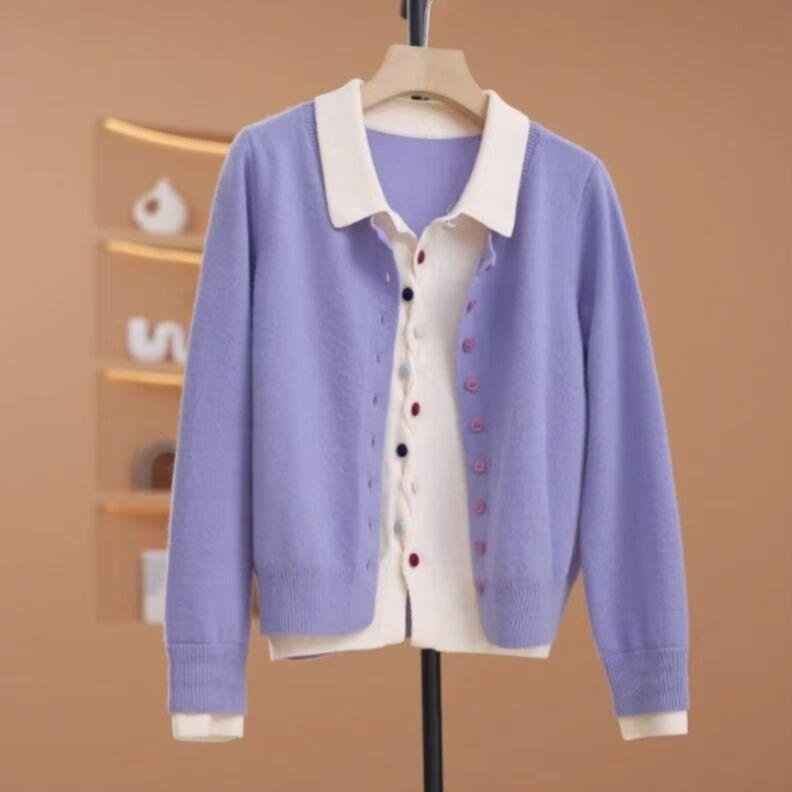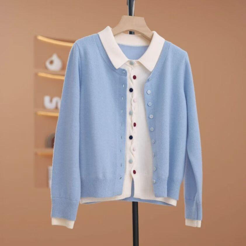 Primavera y Otoño Nuevo Top de Punto Cárdigan de Dos Piezas Falso para Mujer Botón de Color Solapa Base Interior Suéter Holgado