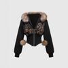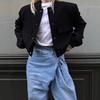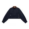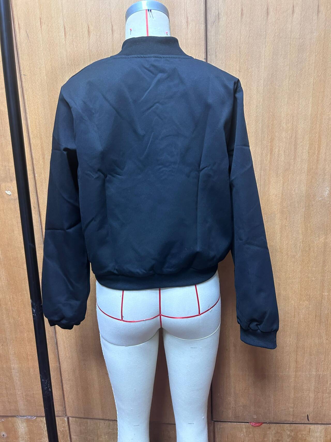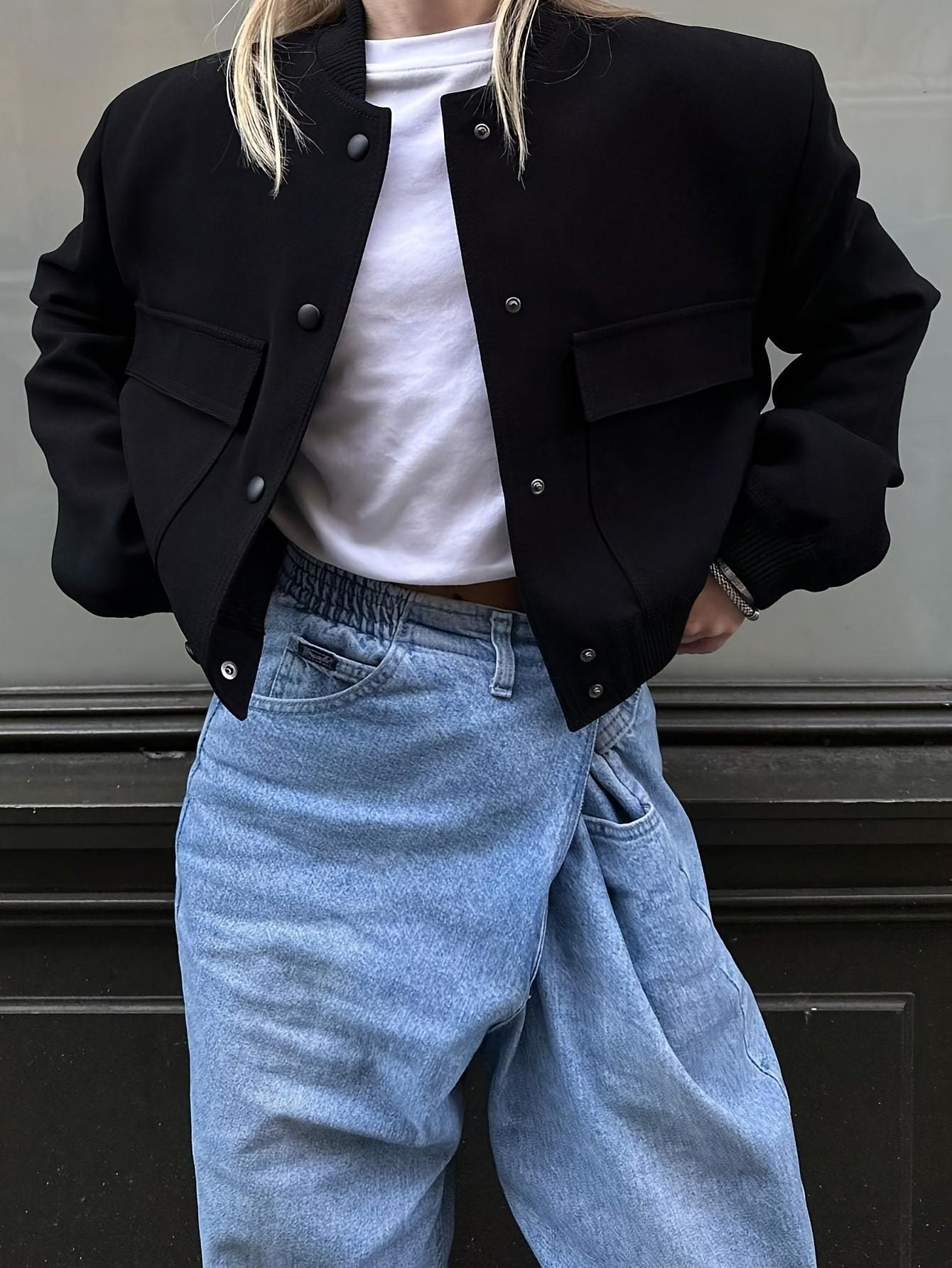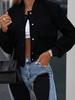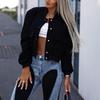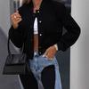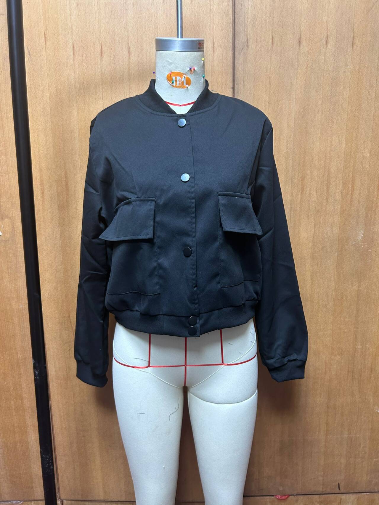 Europeo y Americano Transfronterizo Amazon 2025 Chaqueta Corta Holgada con Cuello de Béisbol con Solapa, Bolsillo de Parche y Cierre de Botones a Presión para Mujer
