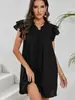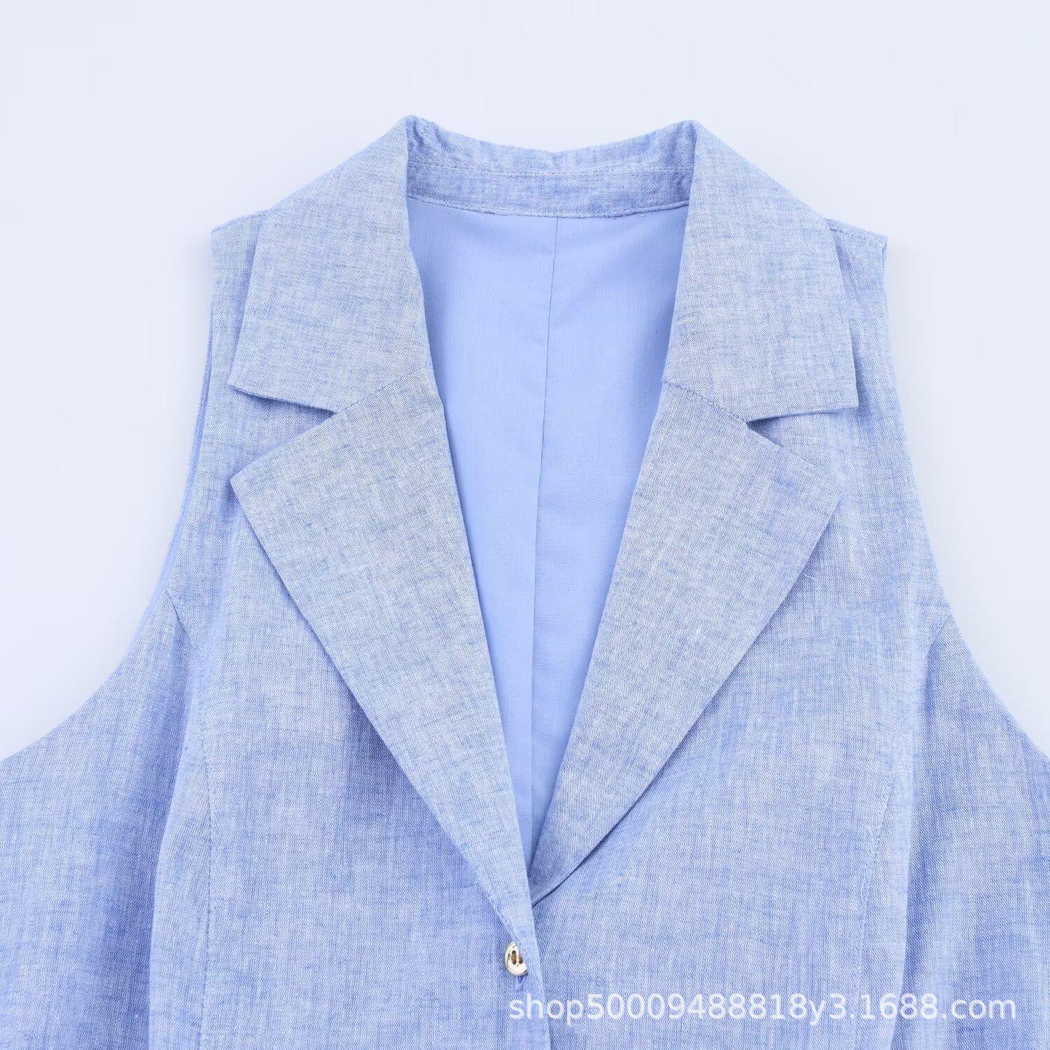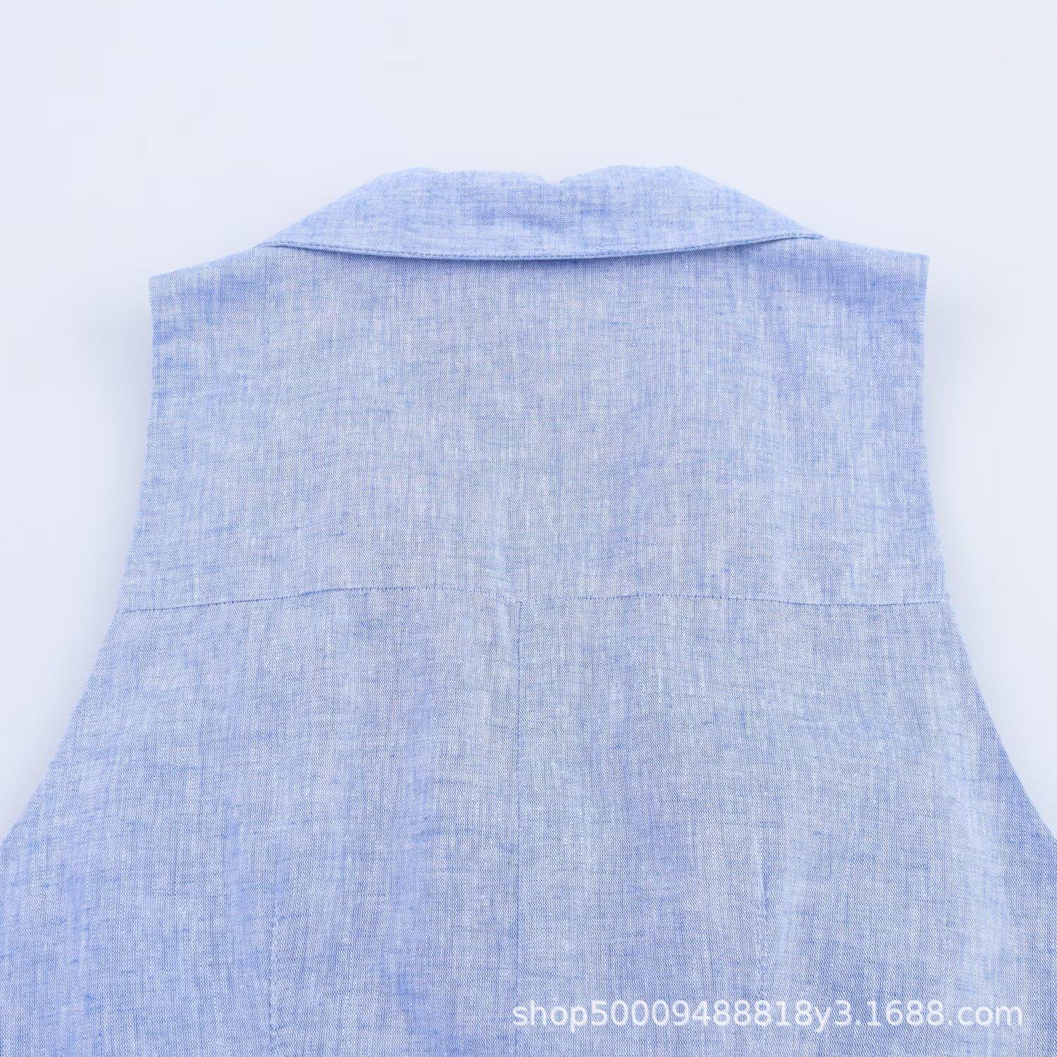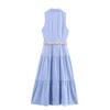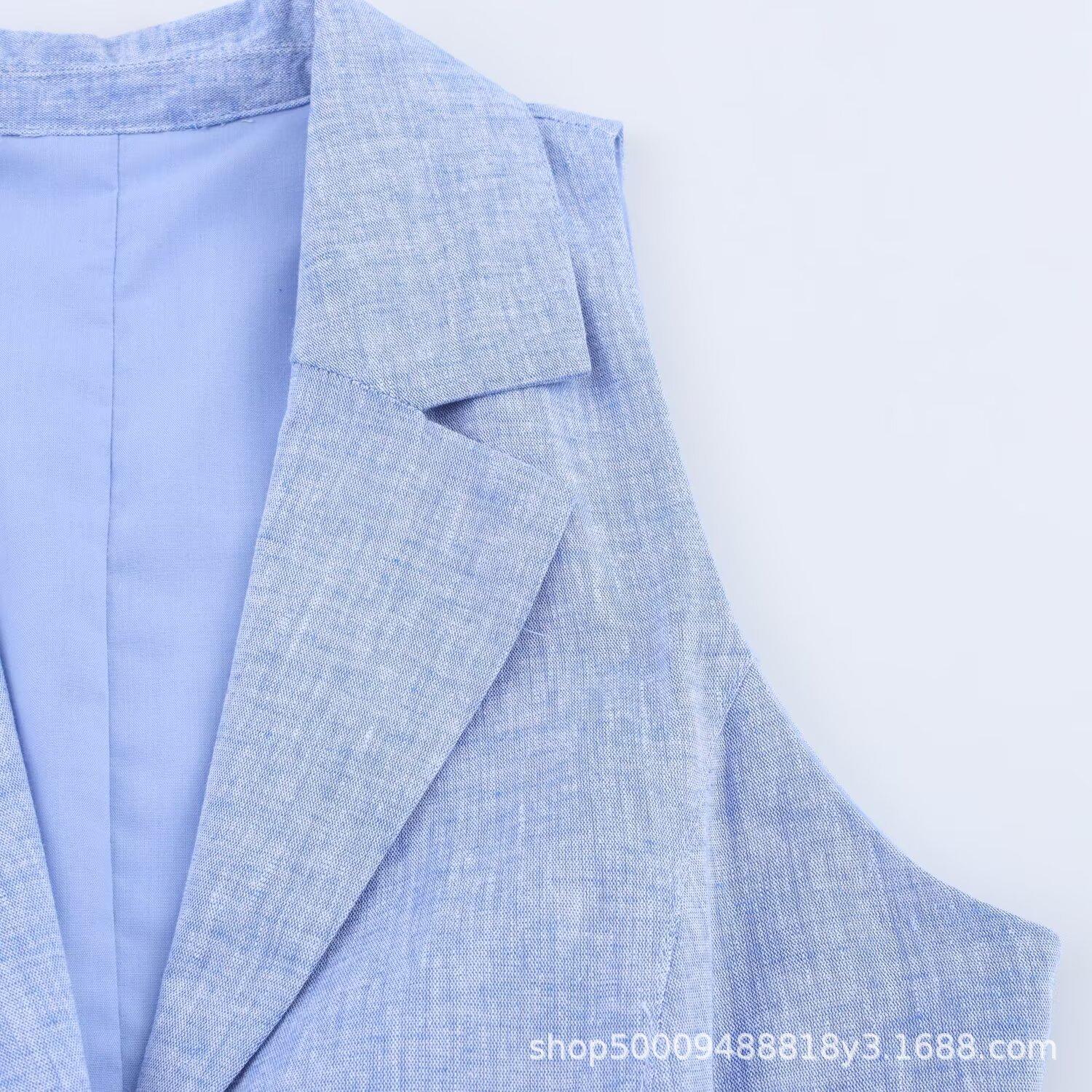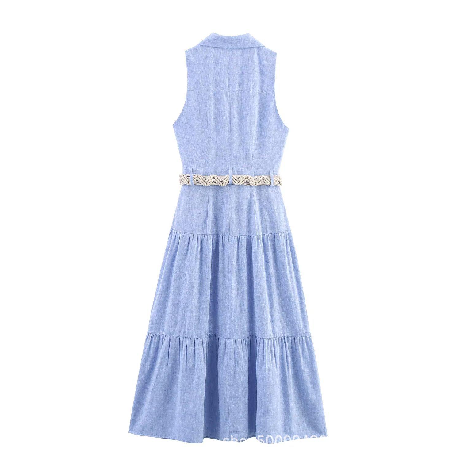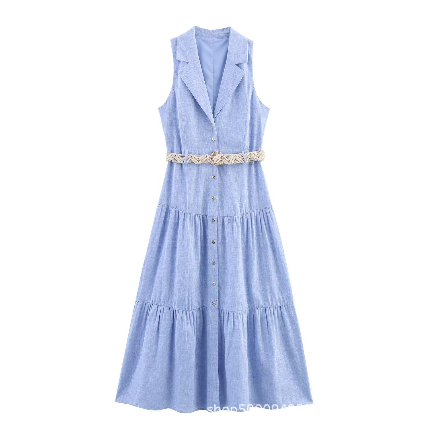 Comercio Exterior Verano para Mujer Nuevo Estilo Europeo y Americano Solapa con Cinturón Mezcla de Lino Vestido Midi 8372110