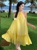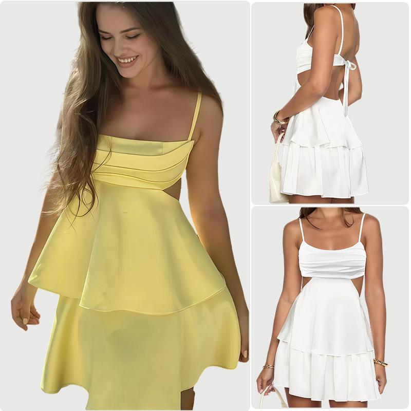 Vestido Sexy Europeo y Americano de Amazon con Espalda Descubierta y Tirantes Espagueti que Revela la Cintura 2025 Nuevo Moda Seda de Leche Falda Corta Escotada