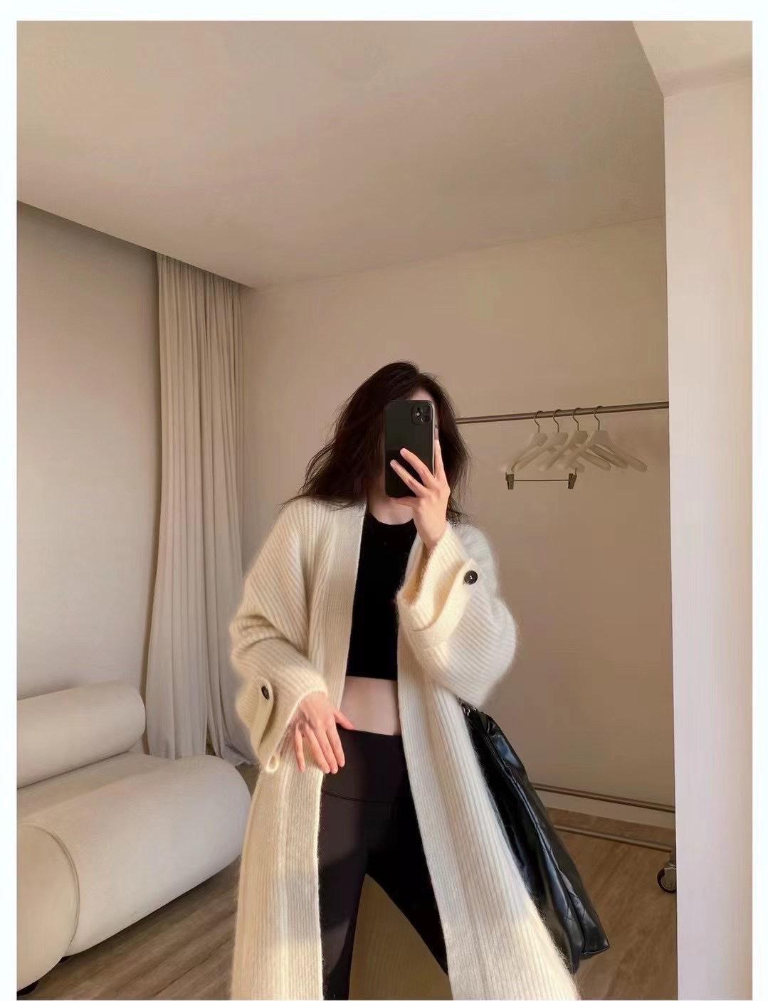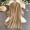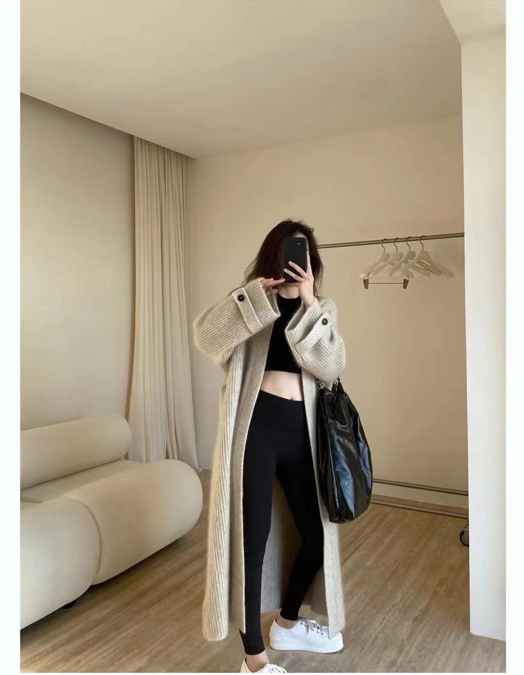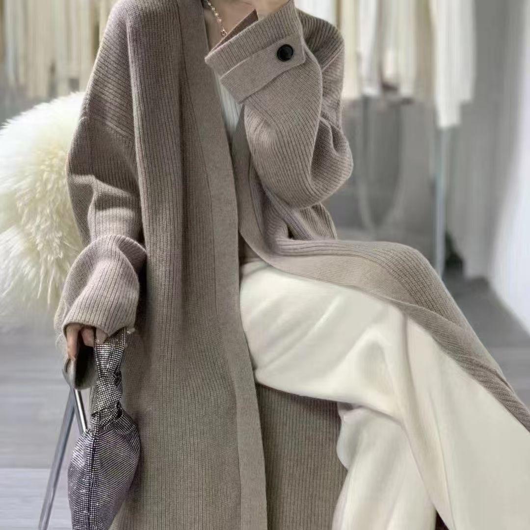 Cárdigan largo hasta la rodilla de moda con temperamento transfronterizo de comercio exterior para mujer, otoño invierno, estilo coreano, holgado, estilo perezoso, abrigo de punto
