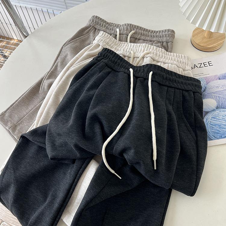 Pantalones de Abuelita Casuales Rectos Suaves Cerosos para Mujer Otoño Nuevo Cintura Alta Elastoelásticos Cordón Ajustable Holgados Adelgazantes Combinan con Todo Pantalones de Sudor
